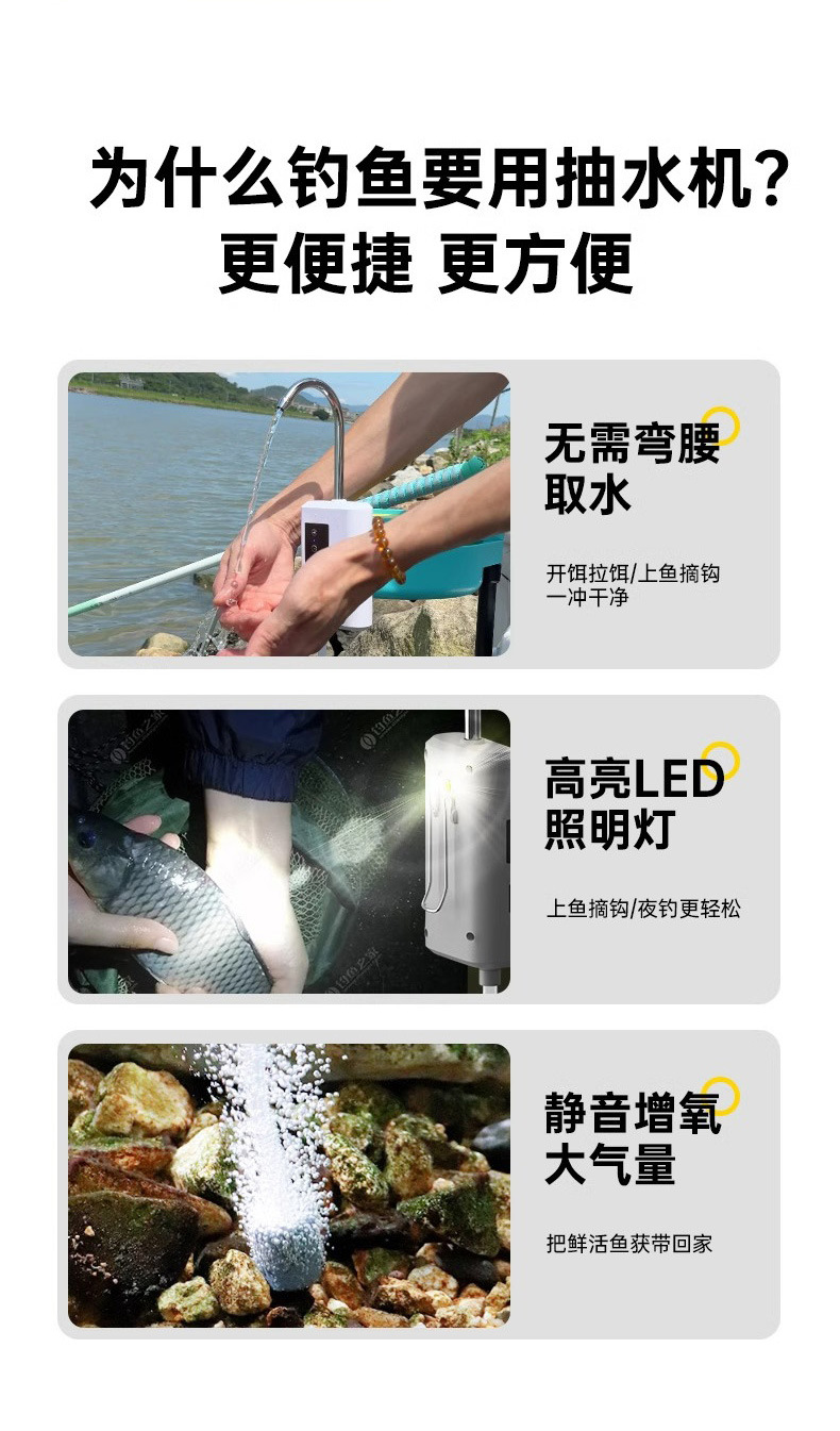 Hengku 지능형 유도 낚시 워터 디스펜서 산소 펌프 핸드 워시 펌프 완전 방수 낚시 전기 펌핑 야외 낚시스토어 가기
