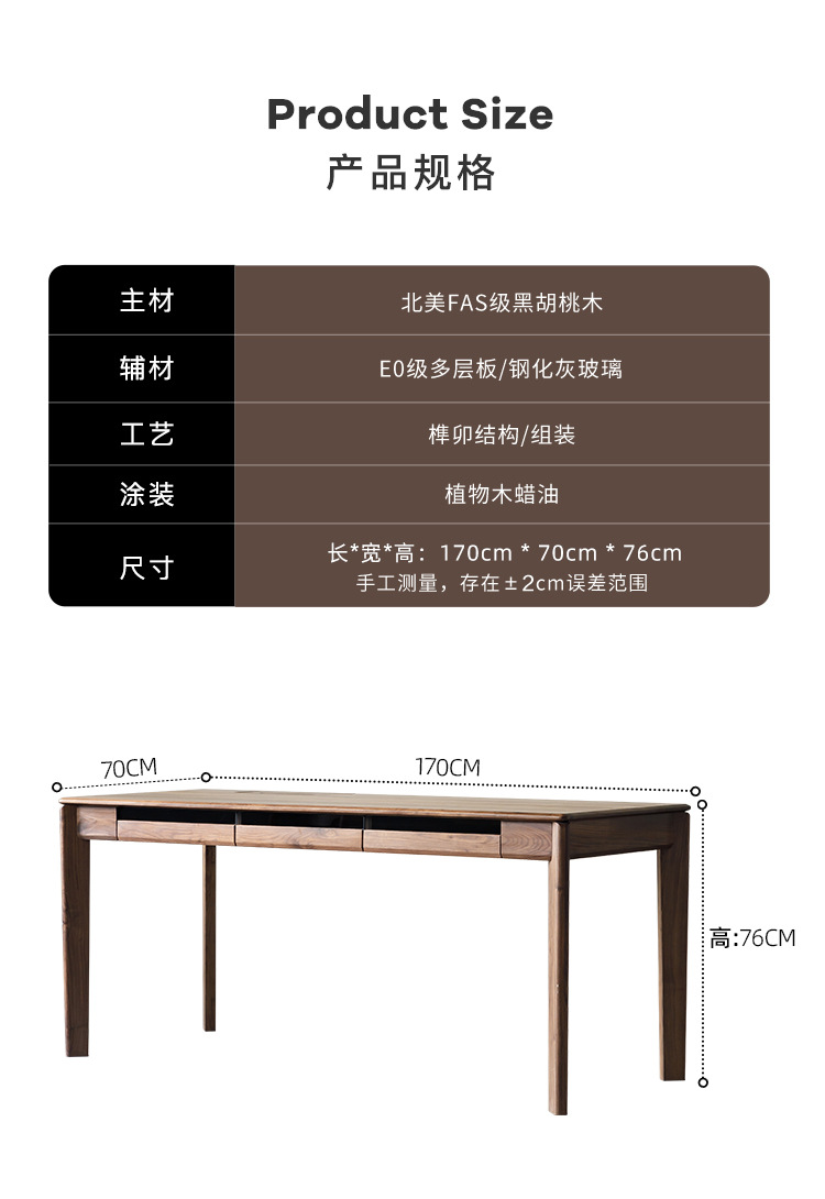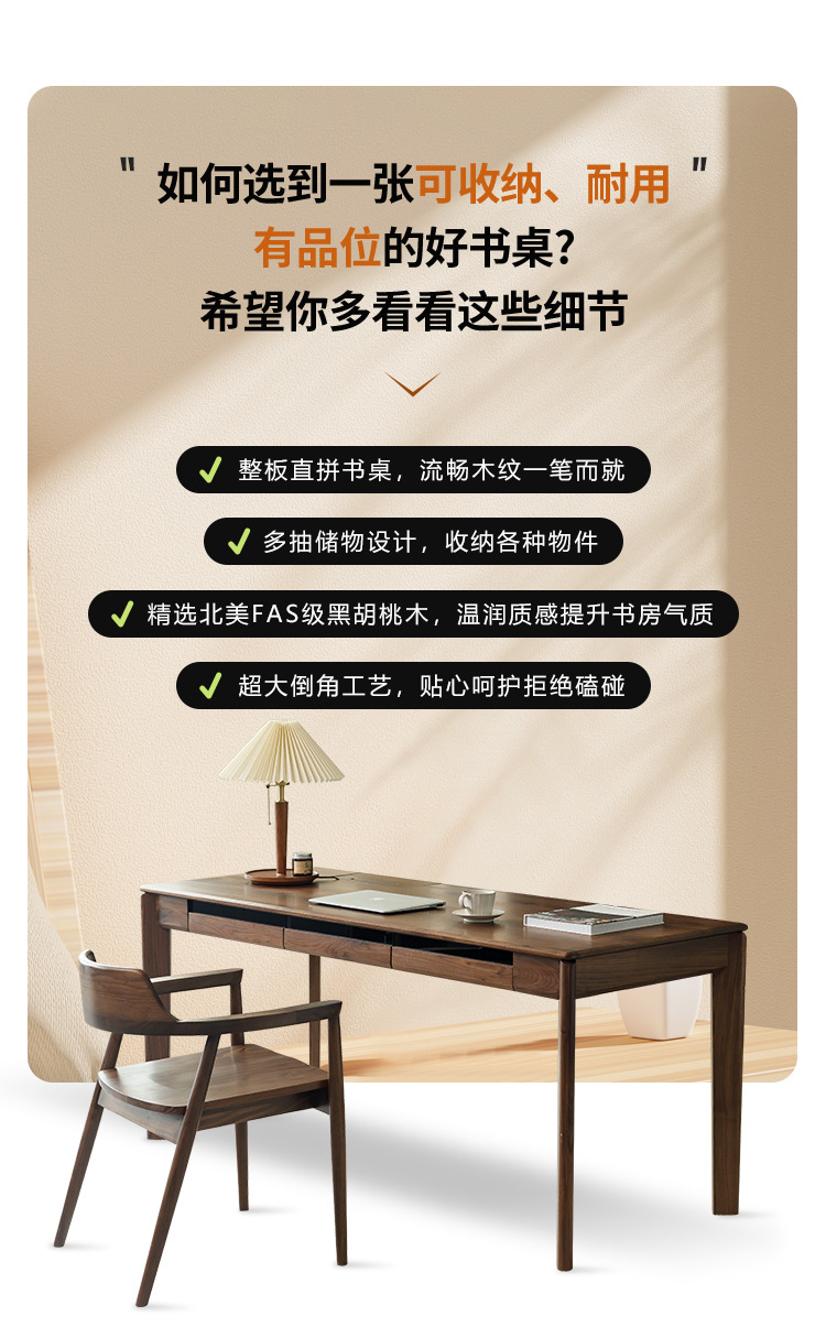 북미산 흑호두나무 서재 컴퓨터 책상 일본식 책상 북유럽 모던 심플 원목 사무용 원목 책상