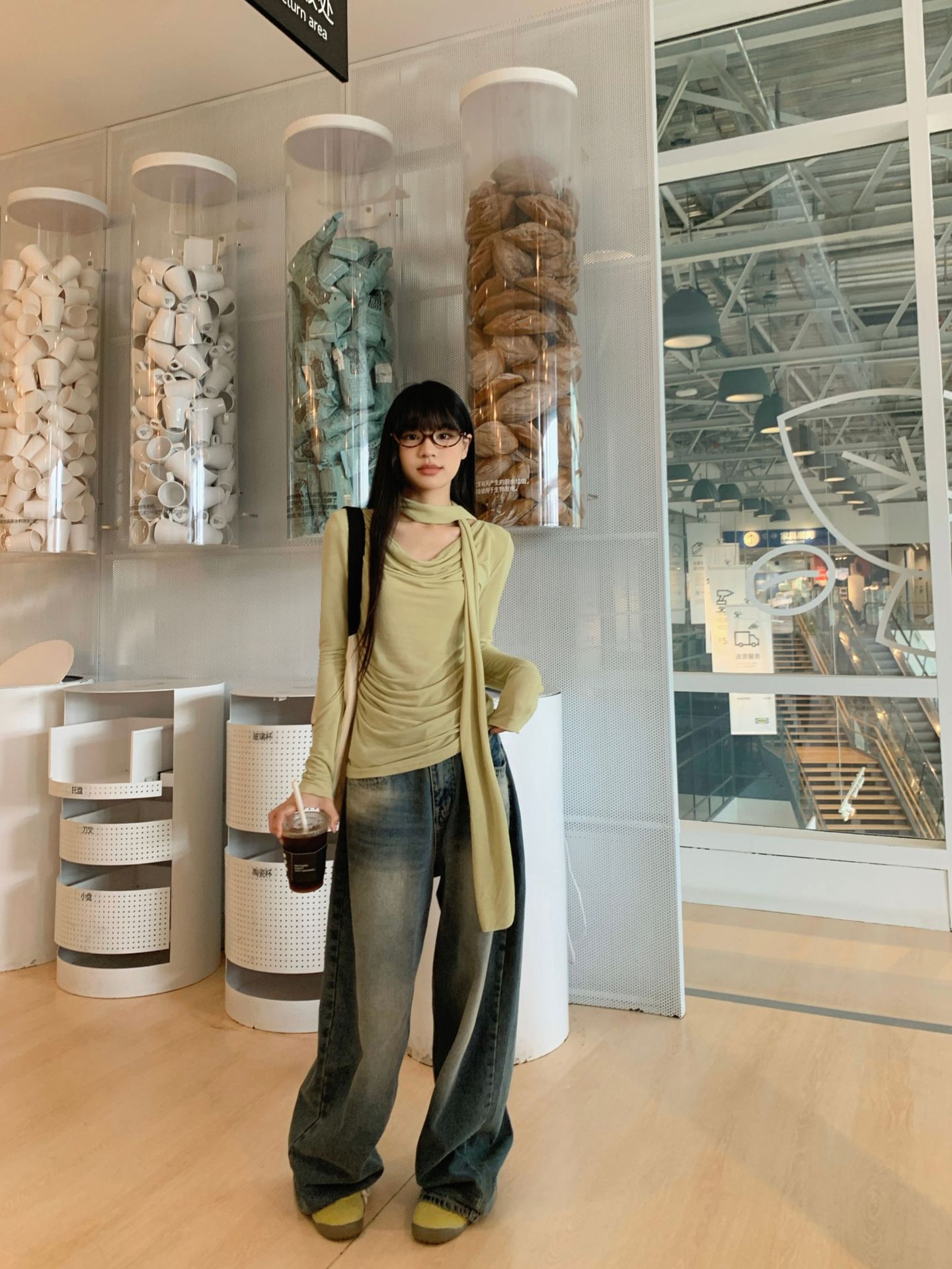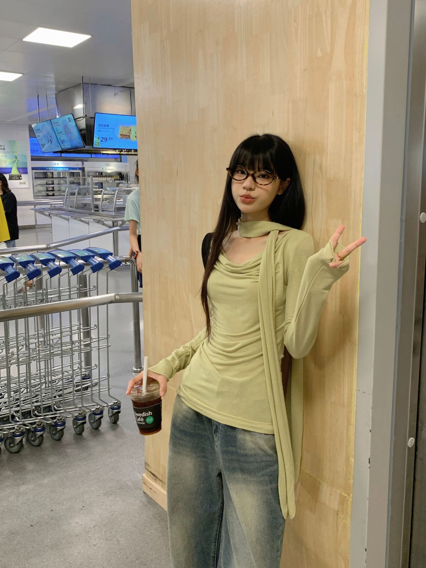 스파이스 걸스 맛 칼라 긴팔 얇은 티셔츠 여성의 초가을 새로운 슬림핏 슬리밍 기본베이스 독특한 탑스토어 가기