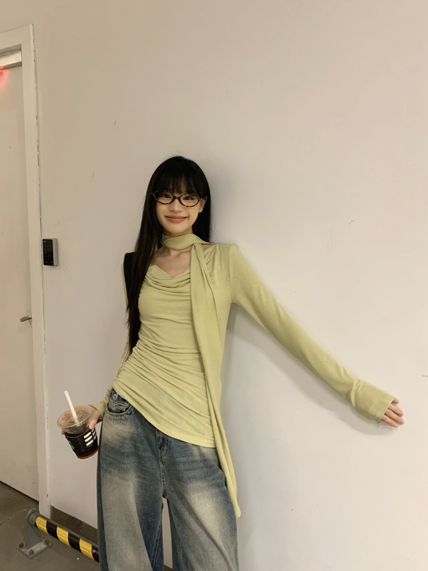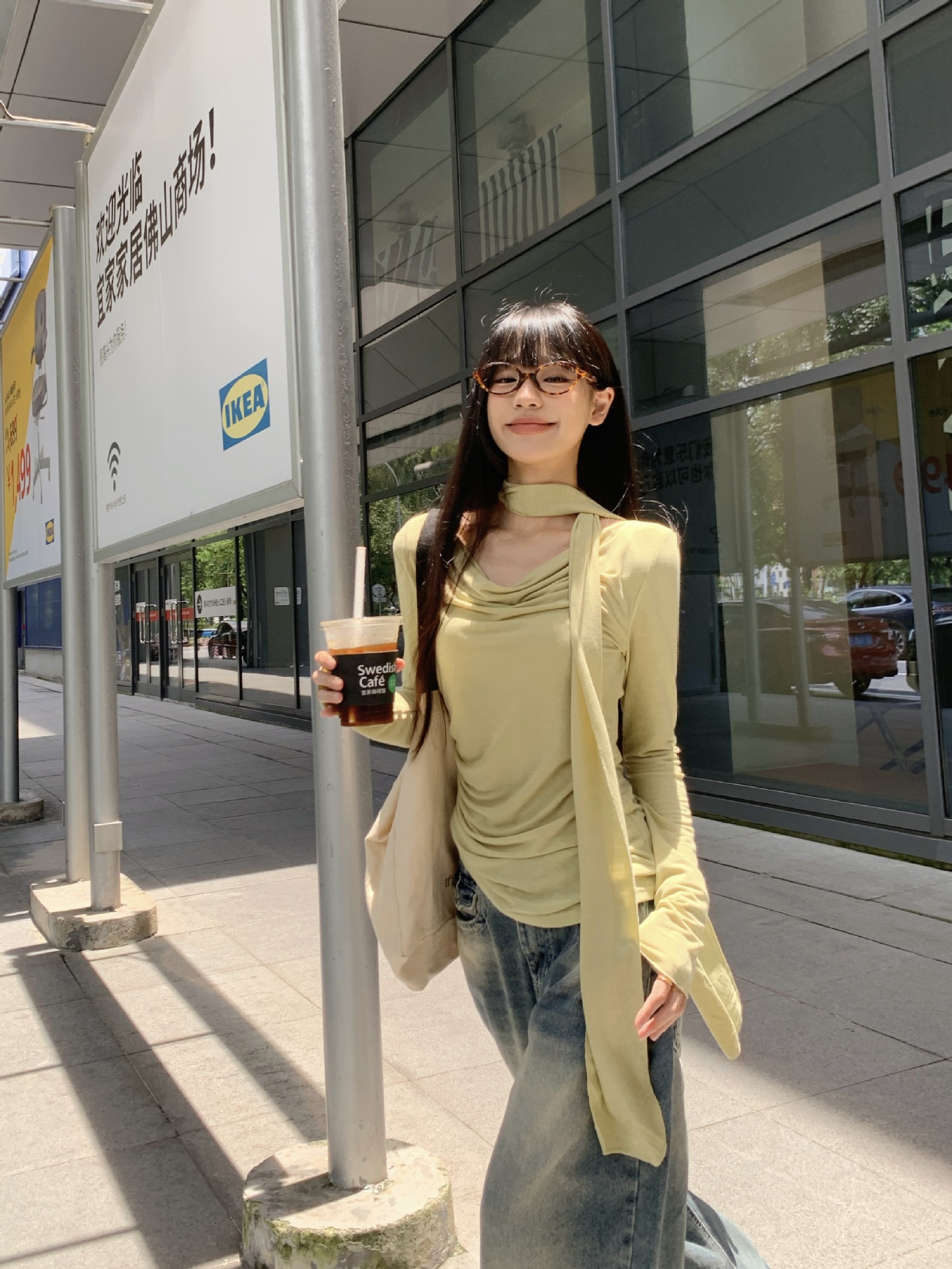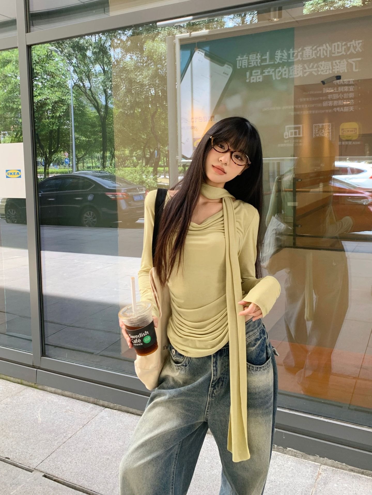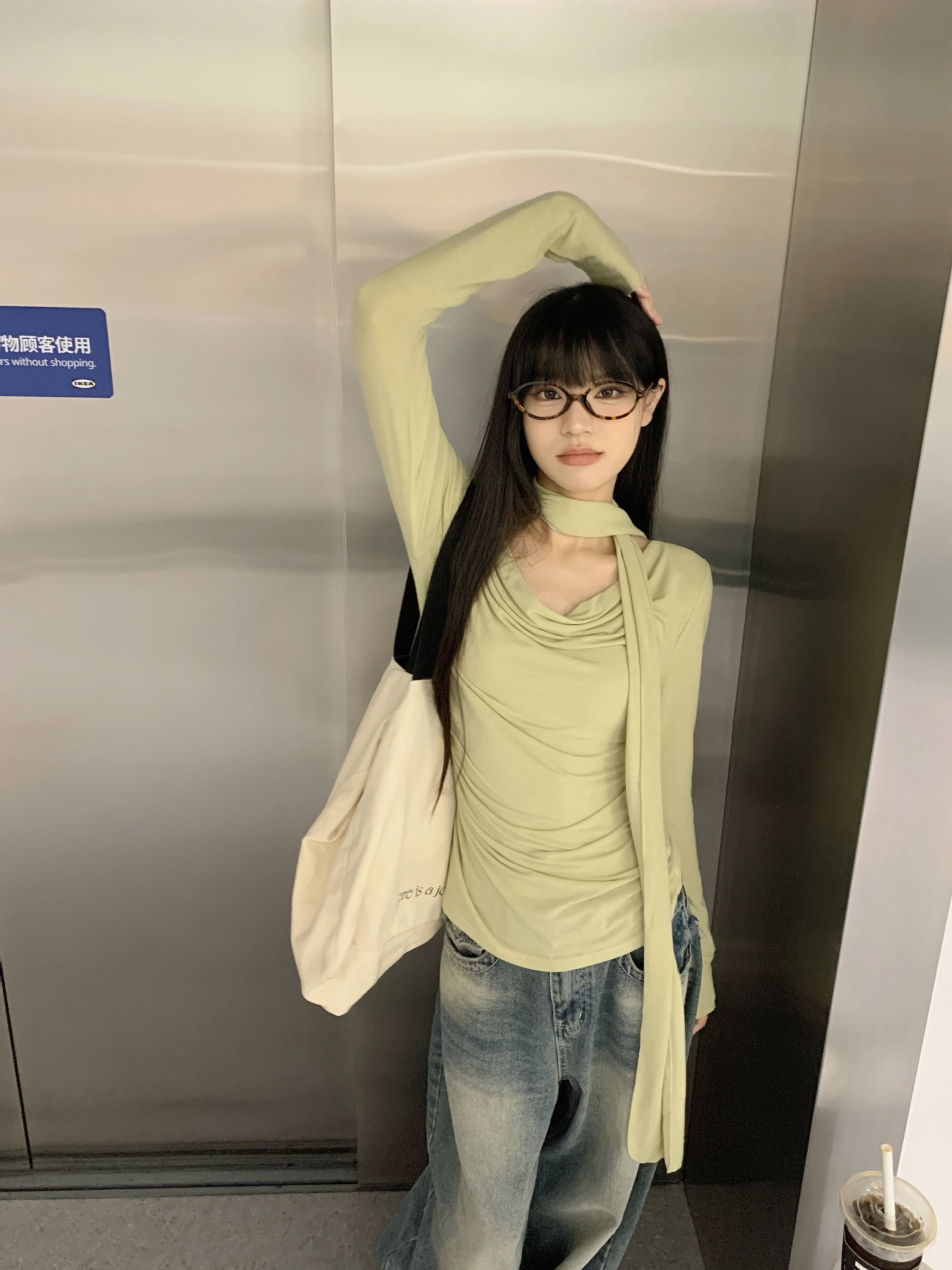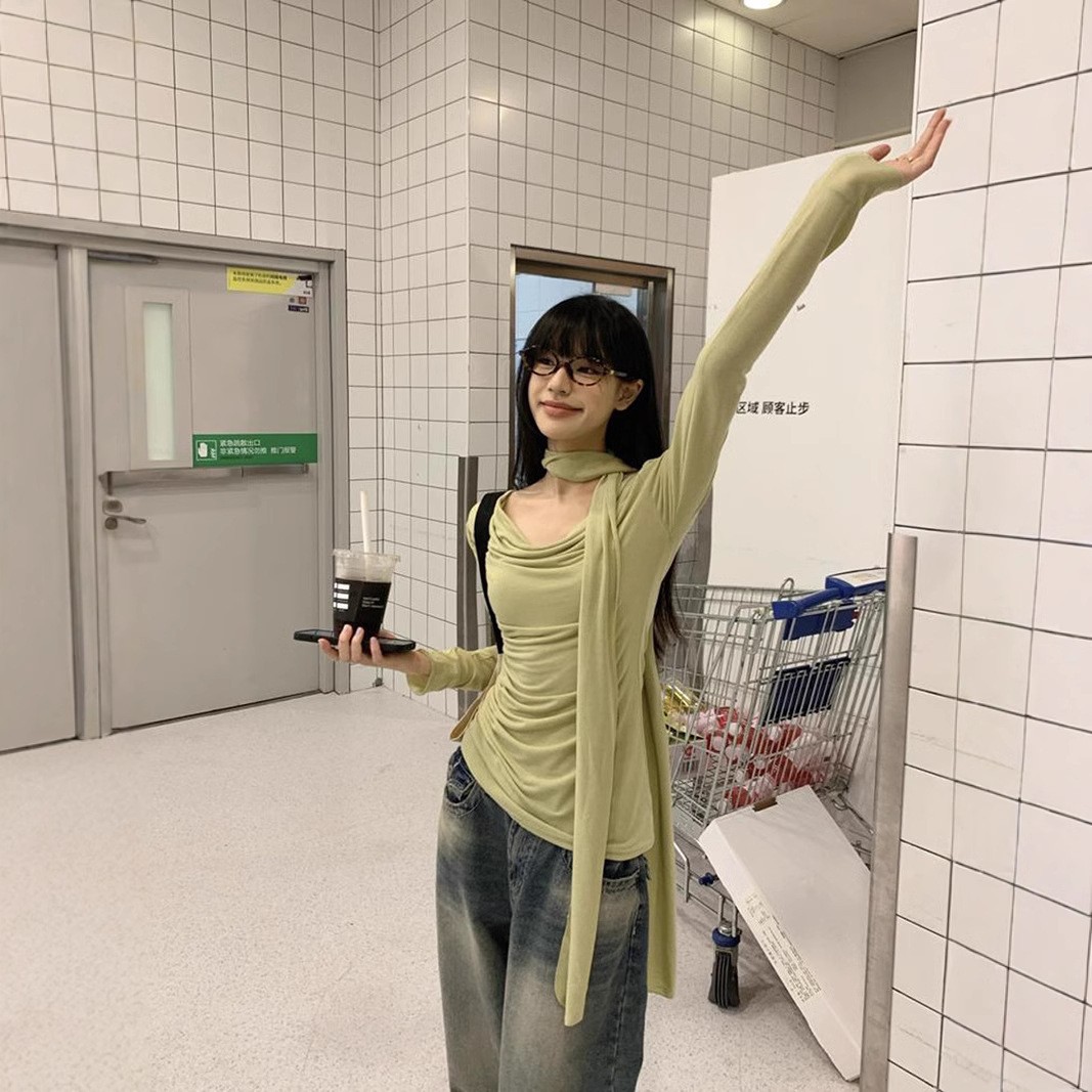 스파이스 걸스 맛 칼라 긴팔 얇은 티셔츠 여성의 초가을 새로운 슬림핏 슬리밍 기본베이스 독특한 탑