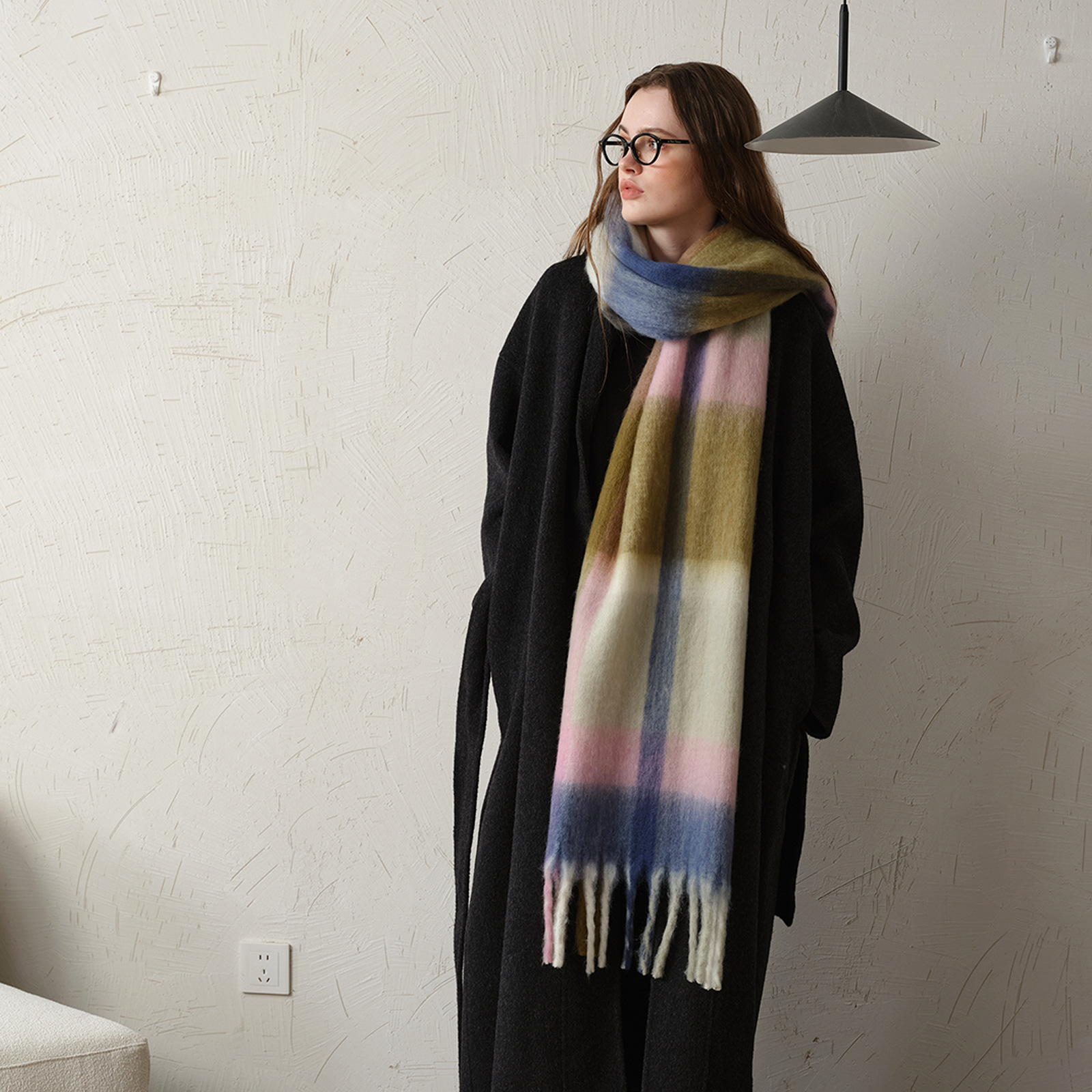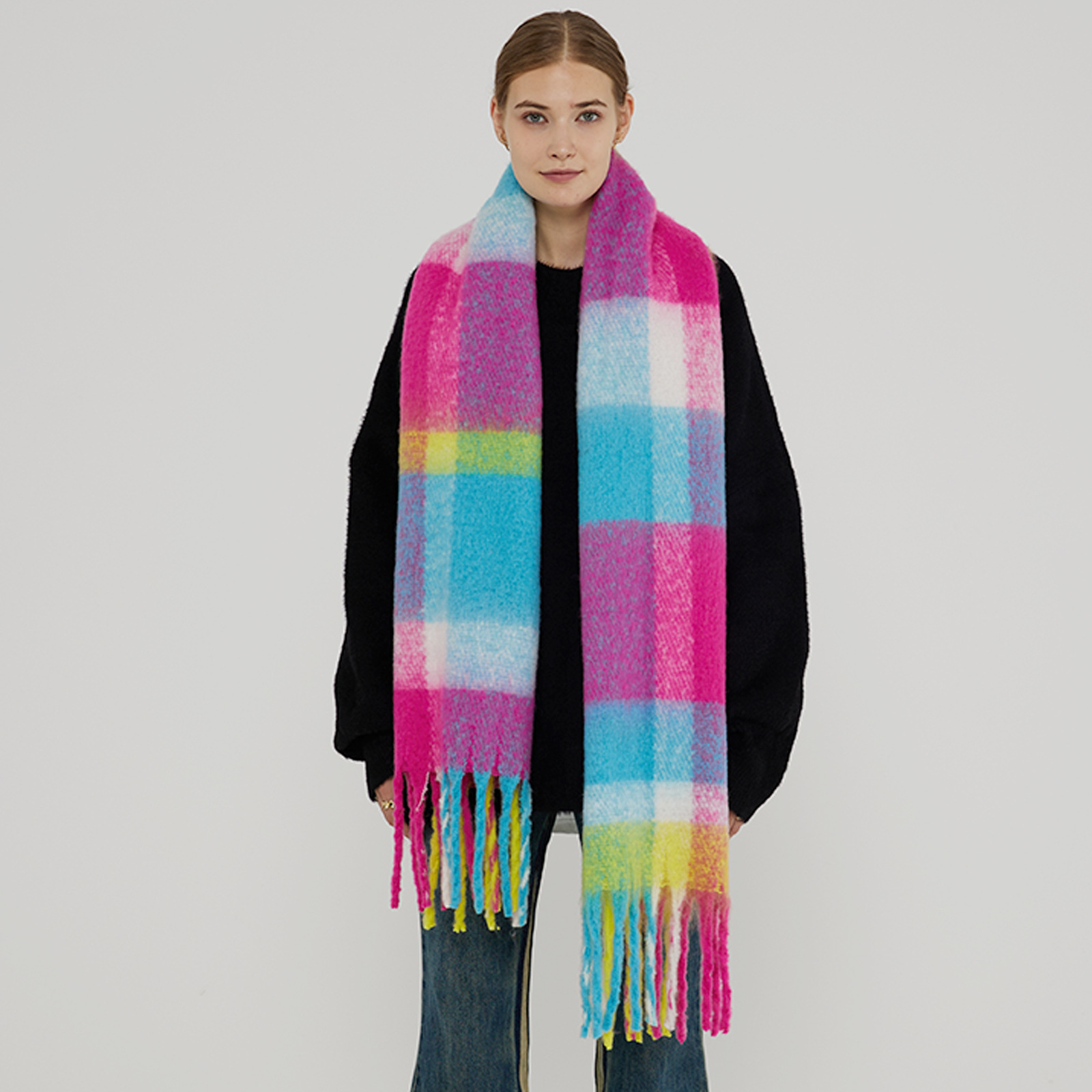 제조업체 대외 무역 국경 간 스팟 두꺼운 따뜻한 멀티 컬러 격자 무늬 스카프 숄 두꺼운 술 스카프 여성 가을, 겨울