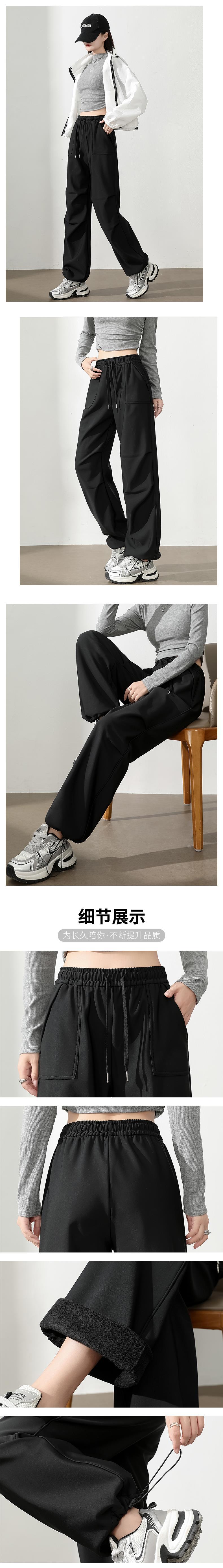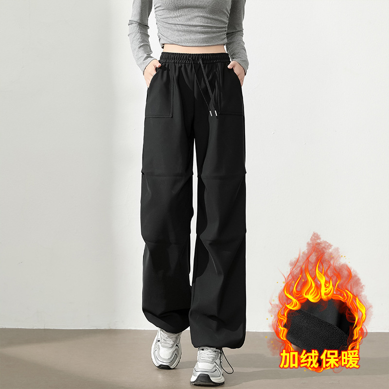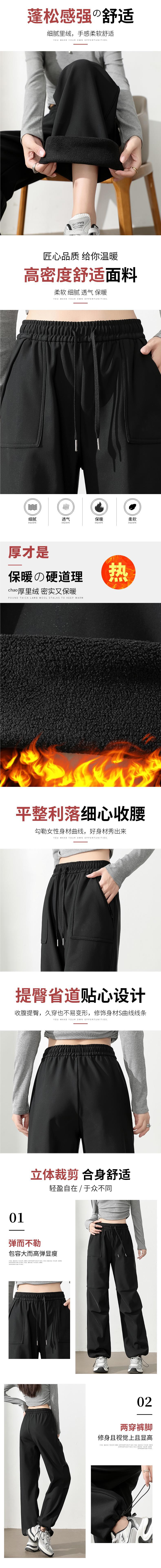 맞춤형 로고 트렌디 브랜드 여성용 재킷 바지, 캐주얼 바지, 벨벳 스포츠 바지, 가을 겨울 블랙 재고 있음