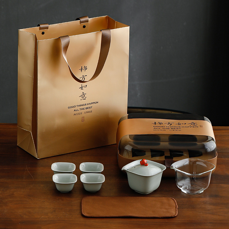 Shifang Ruyi 새로운 중국 스타일의 고급 쿵푸 차 세트 세트 차 선물 선물 상자 기업 로고