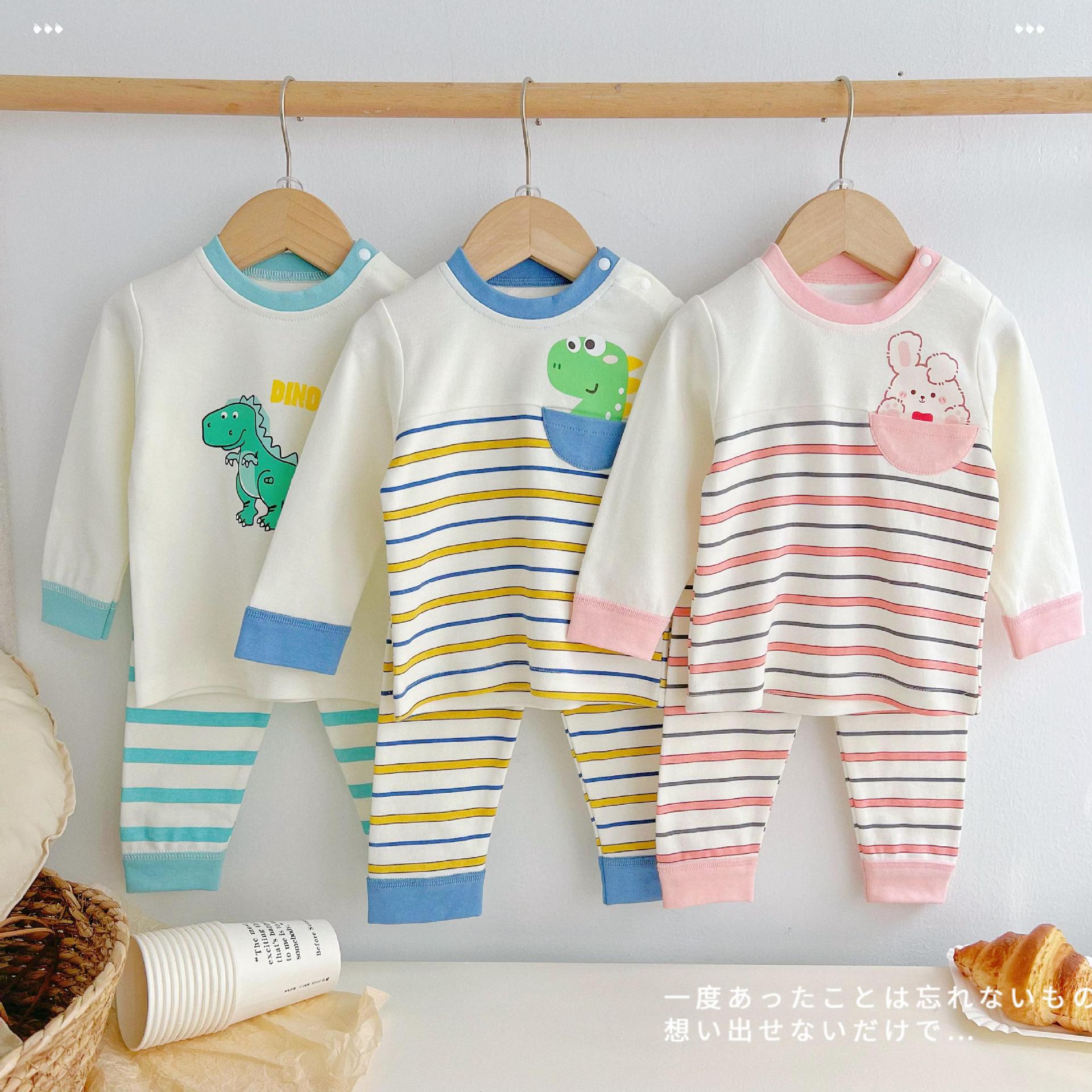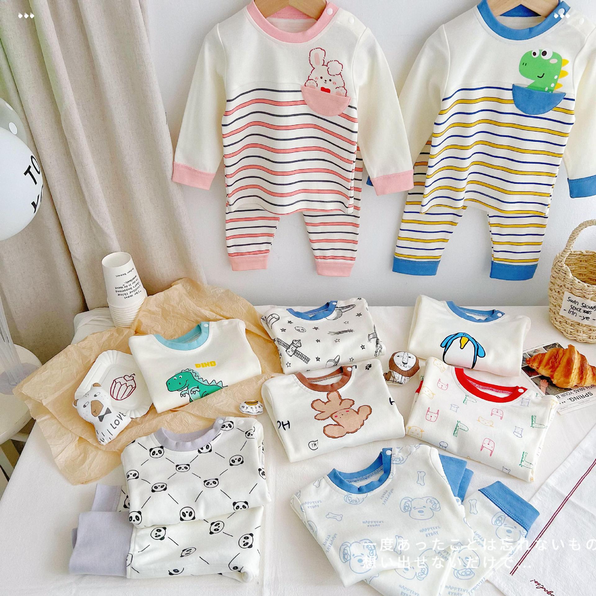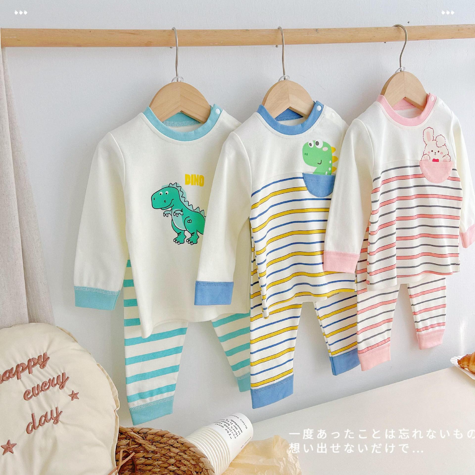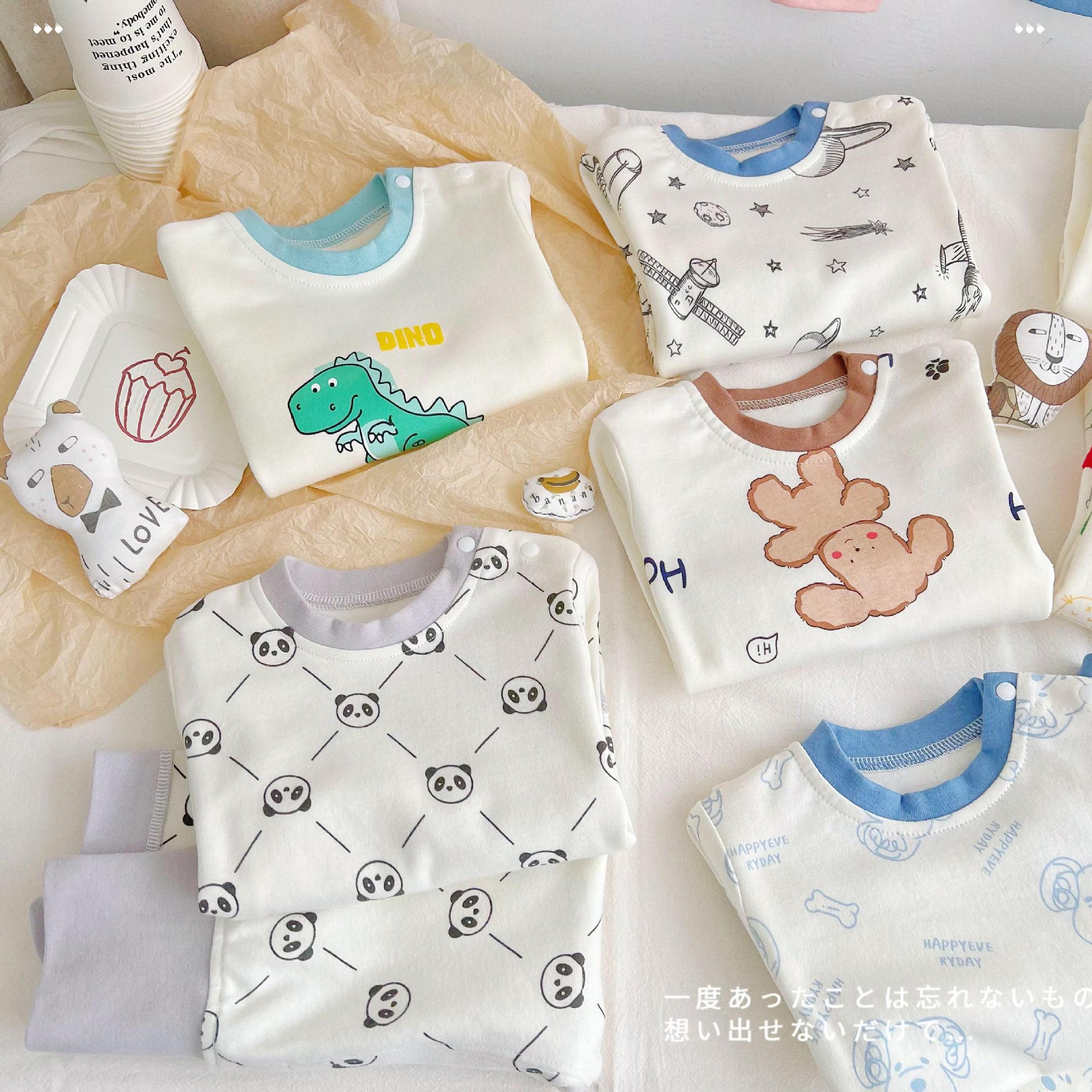 어린이 높은 허리 세트 아기의 가을 옷과 바지 소년 소녀 면화 속옷 아기의 배꼽 보호 봄과 가을 따뜻한 잠옷스토어 가기