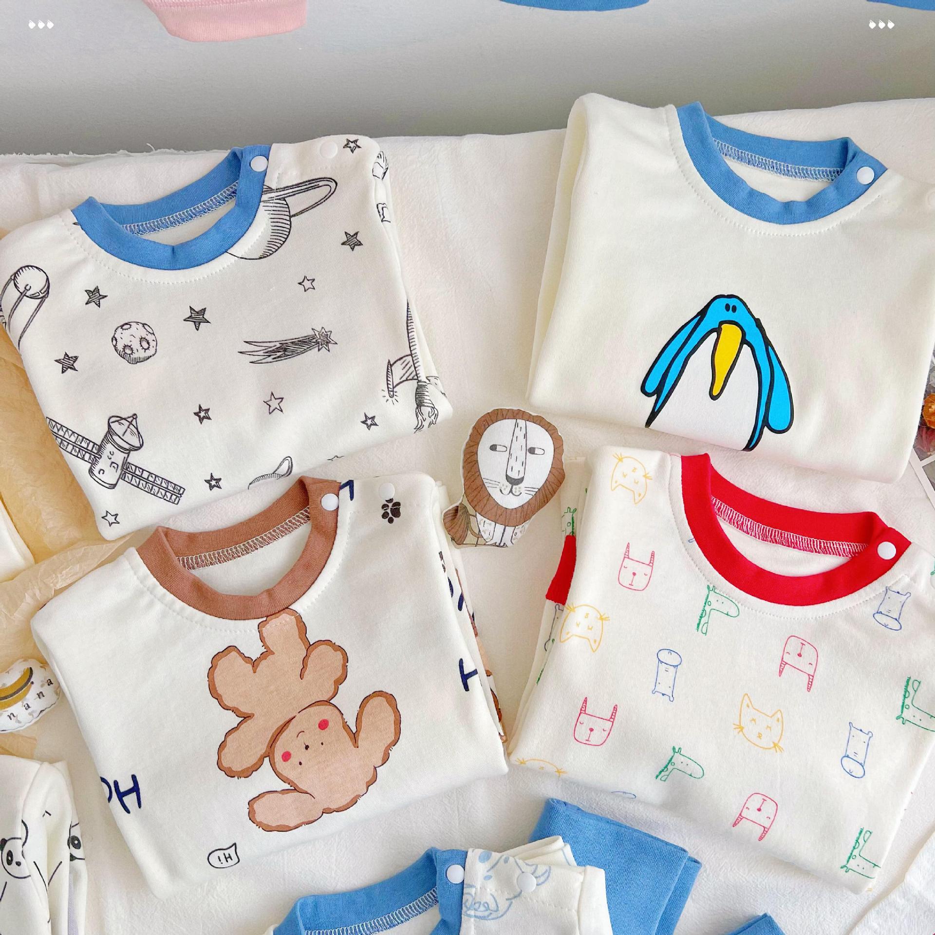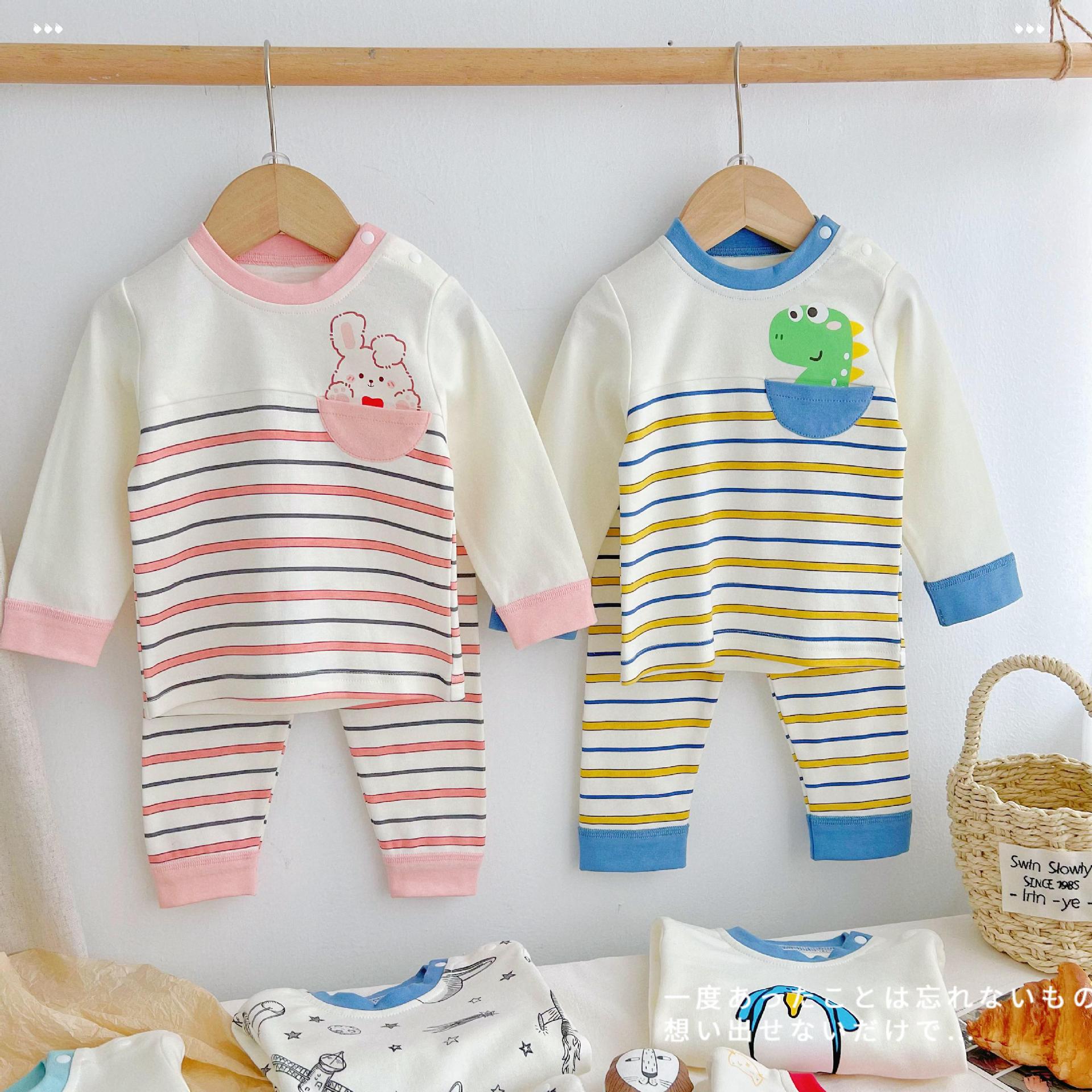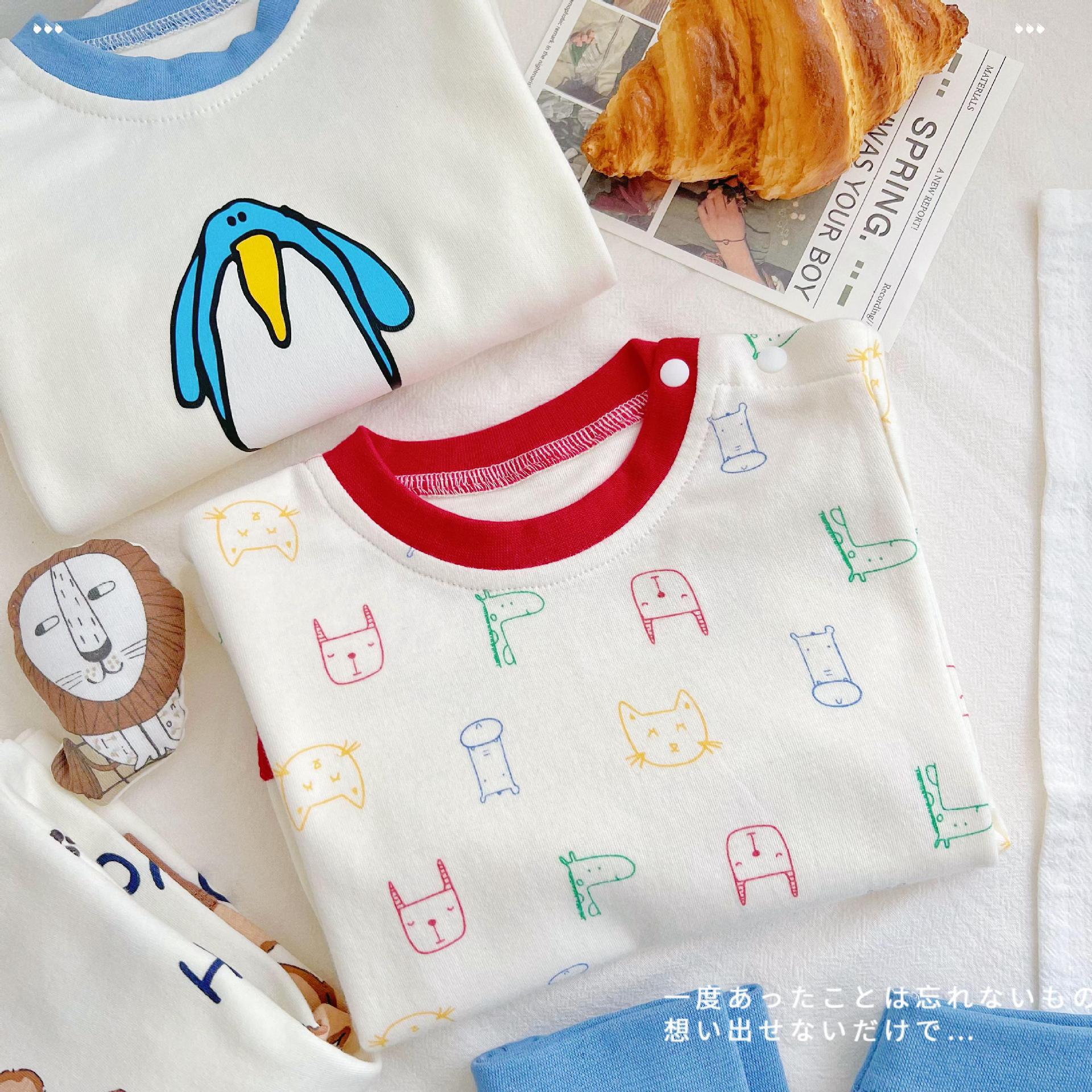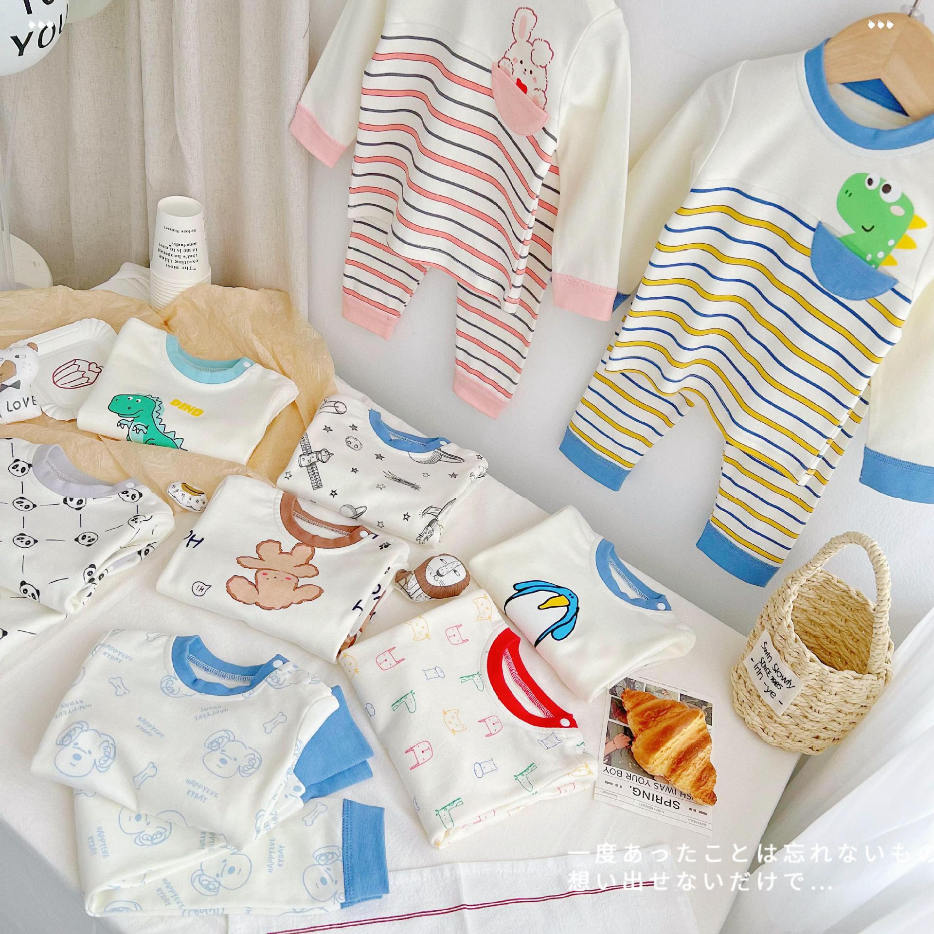 어린이 높은 허리 세트 아기의 가을 옷과 바지 소년 소녀 면화 속옷 아기의 배꼽 보호 봄과 가을 따뜻한 잠옷스토어 가기
