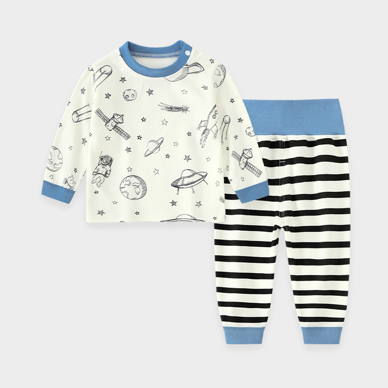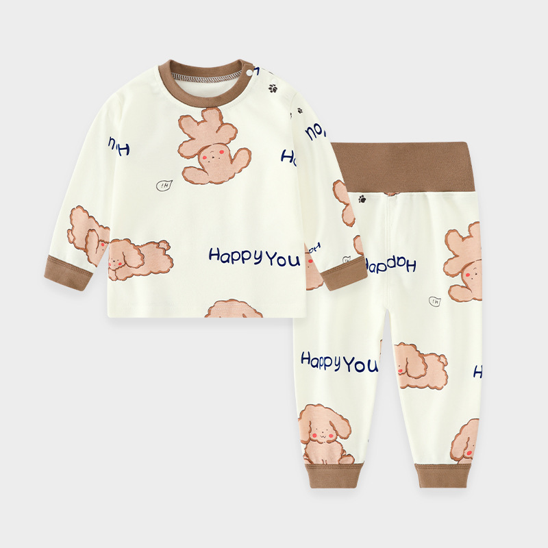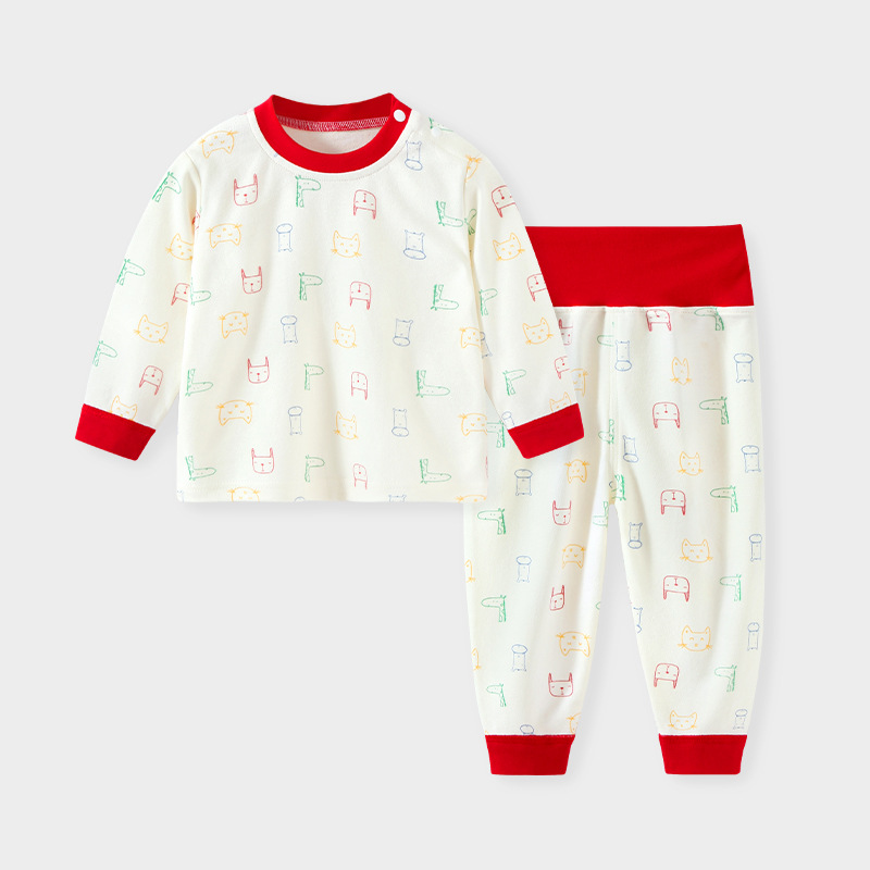 어린이 높은 허리 세트 아기의 가을 옷과 바지 소년 소녀 면화 속옷 아기의 배꼽 보호 봄과 가을 따뜻한 잠옷
