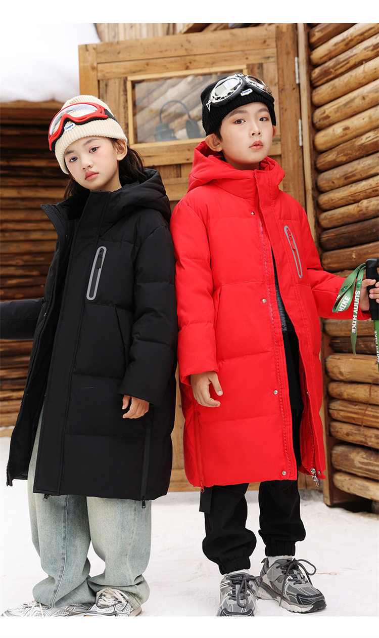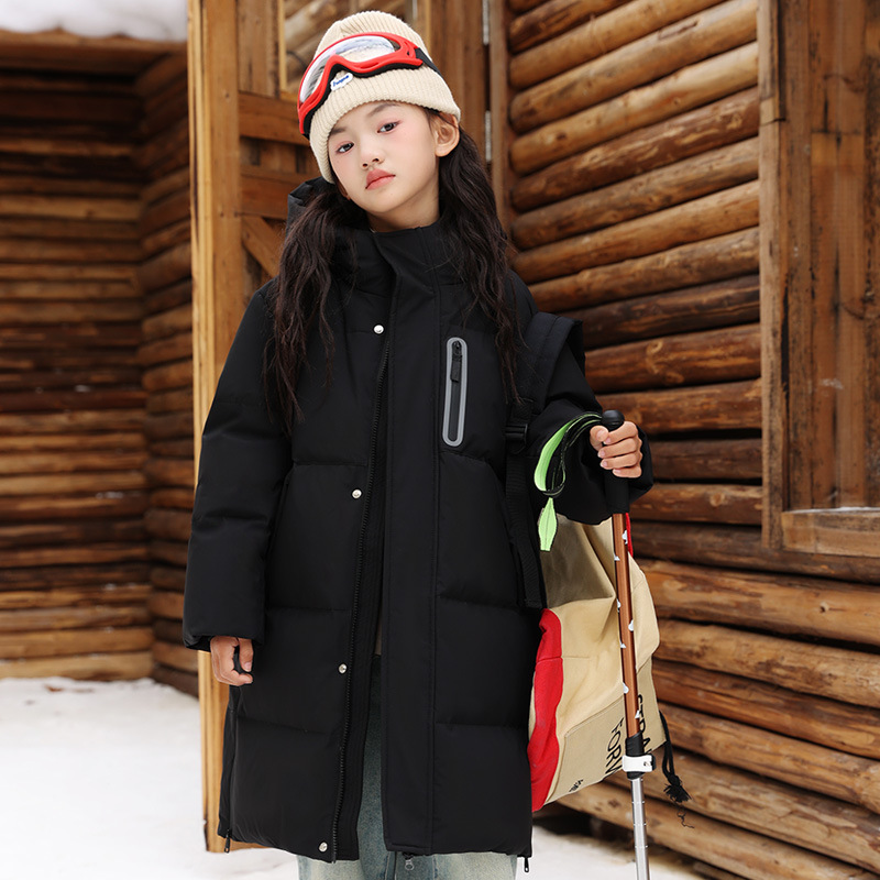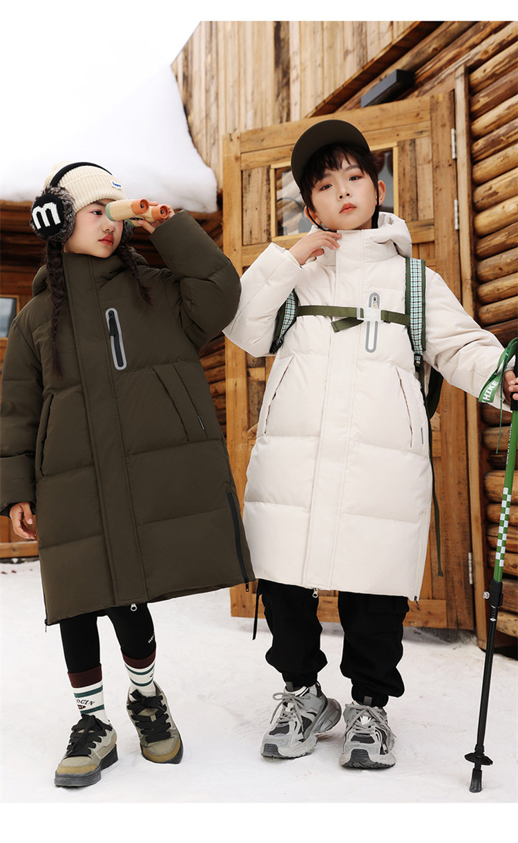어린이 다운 재킷 새로운 중간 길이 웨스턴 스타일 2024 소년 소녀 중 큰 어린이 겨울 두꺼운 화이트 덕 다운 재킷