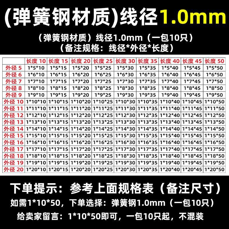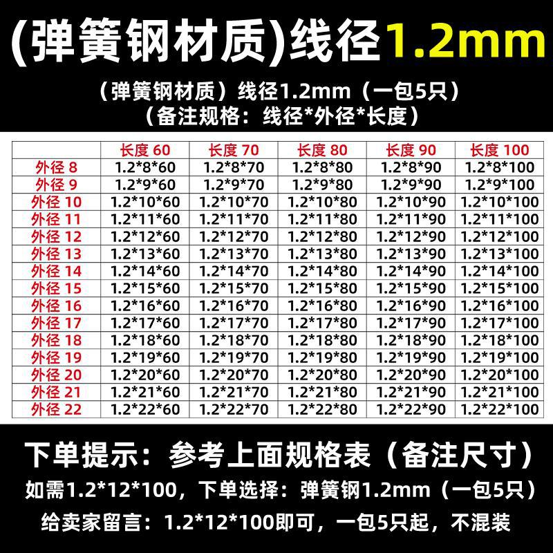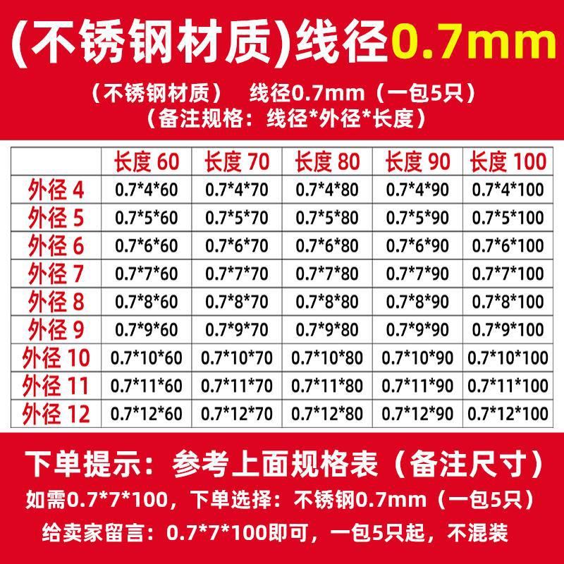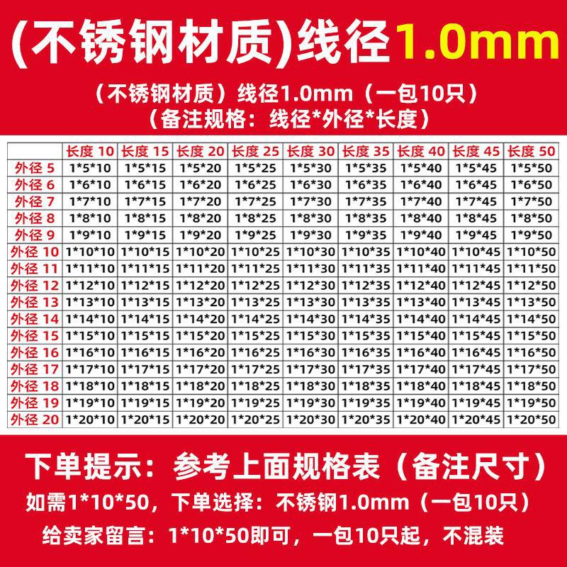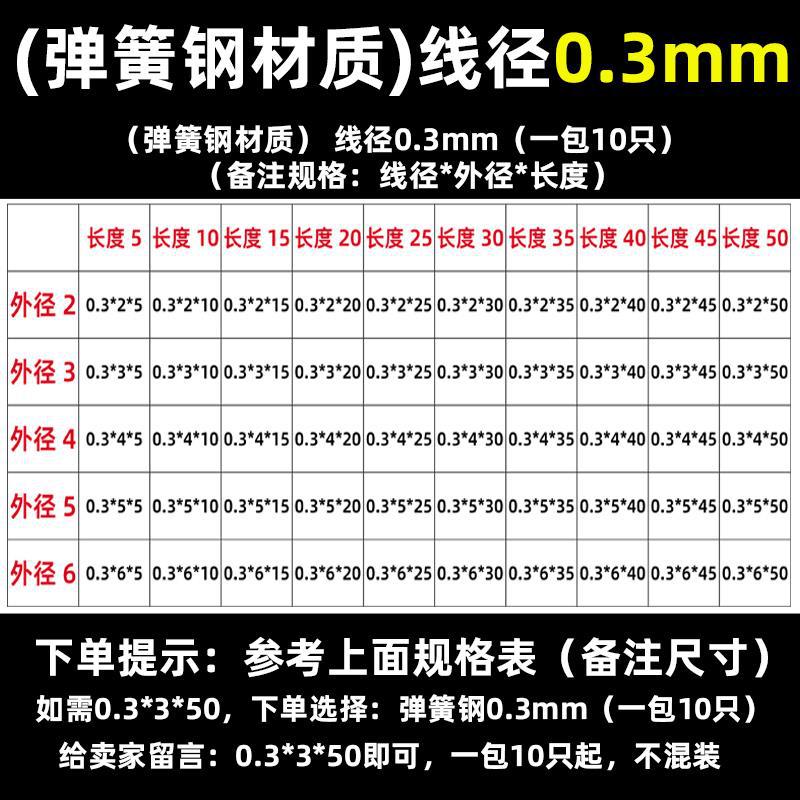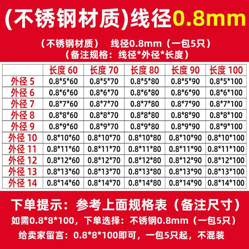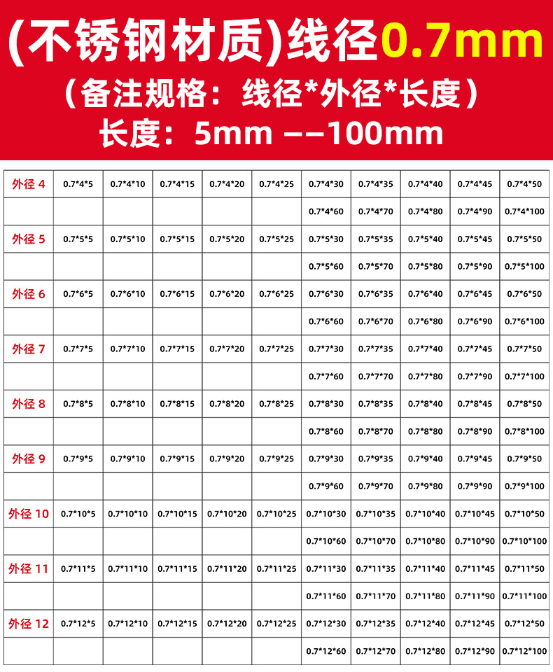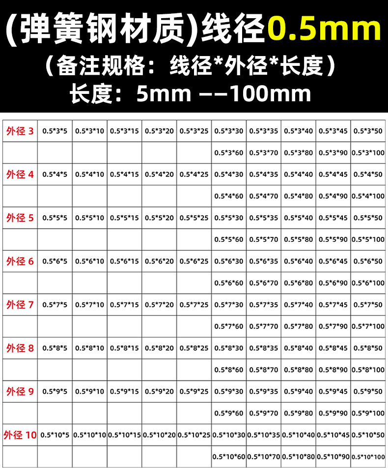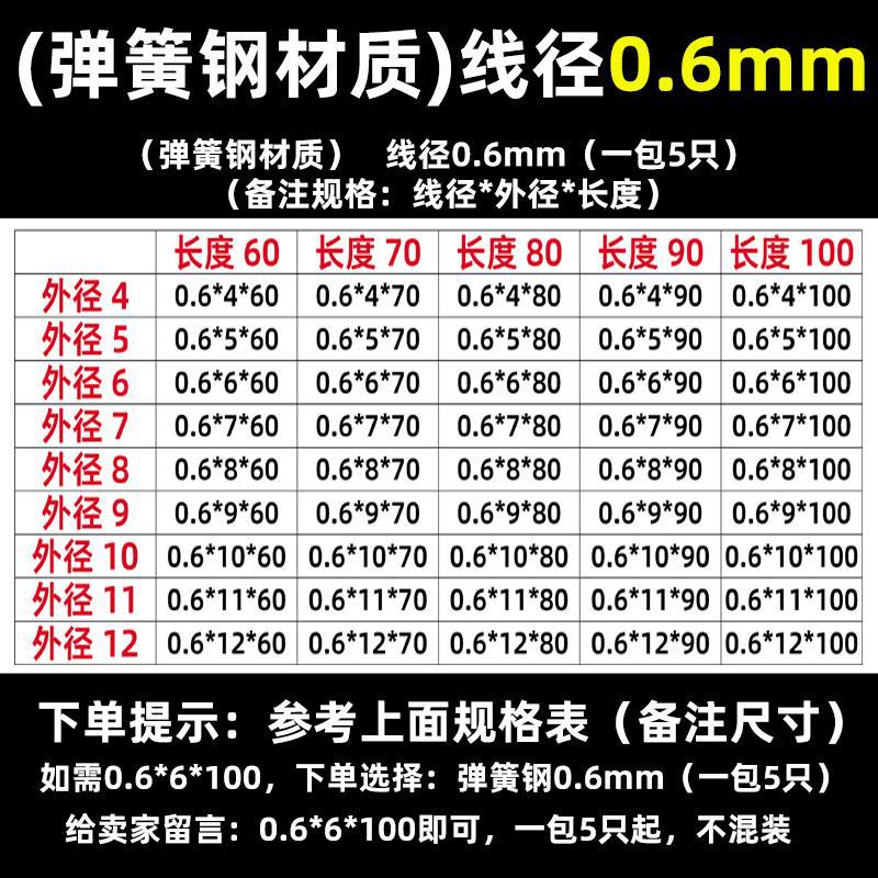 • 치수는 와이어 직경 * 외경 * 길이(밀리미터 단위)입니다.