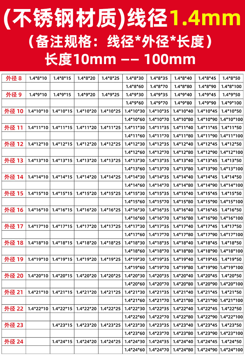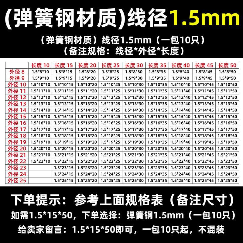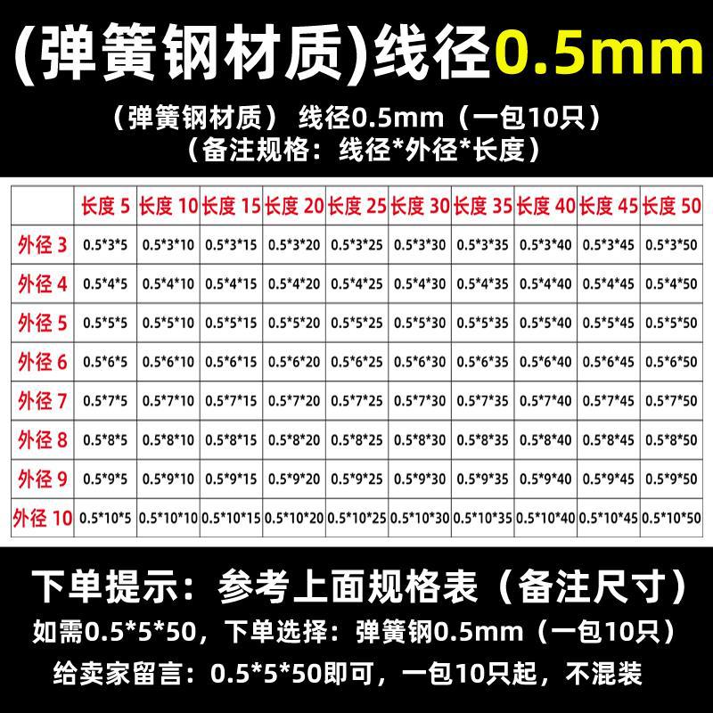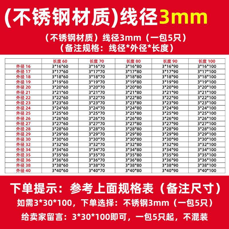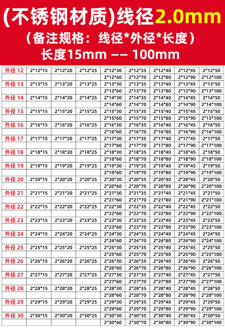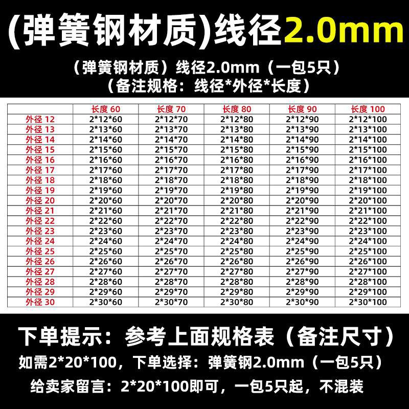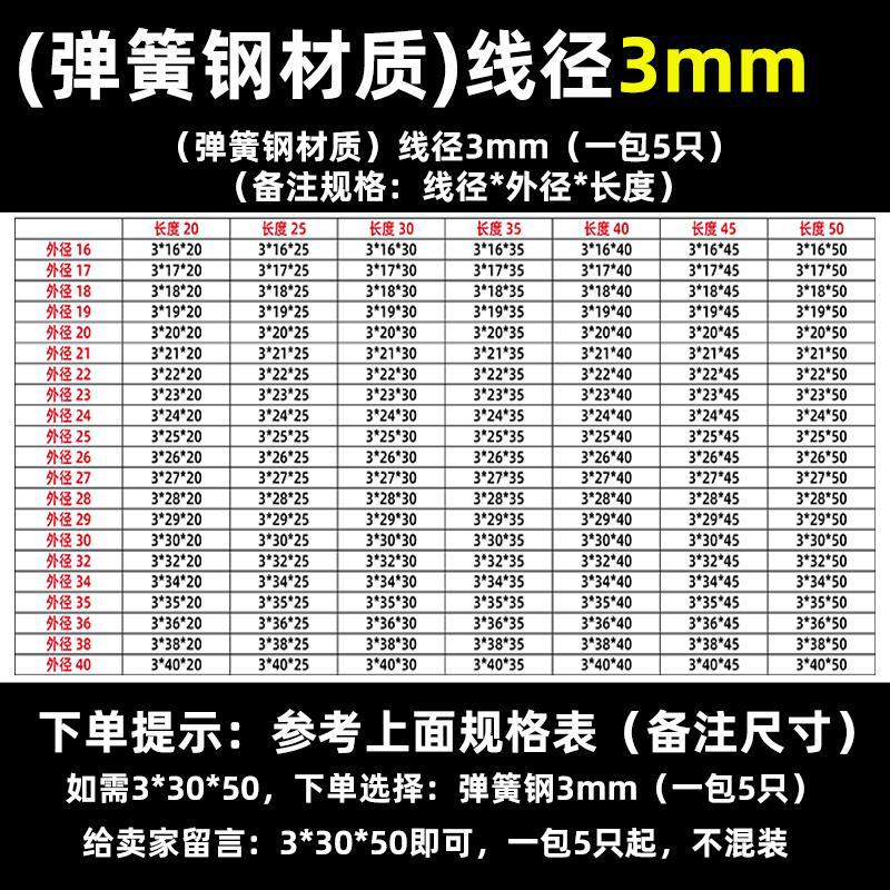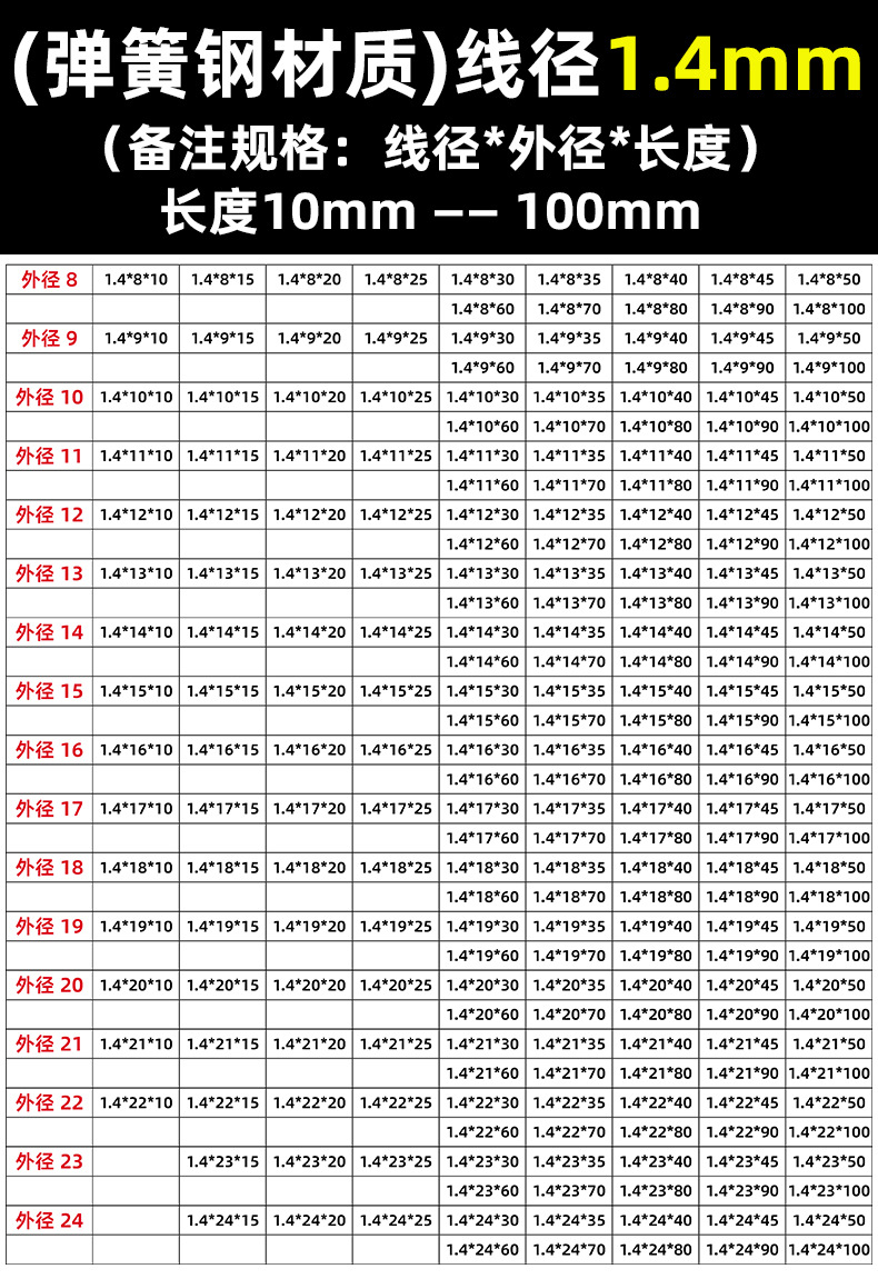 • 치수는 와이어 직경 * 외경 * 길이(밀리미터 단위)입니다.