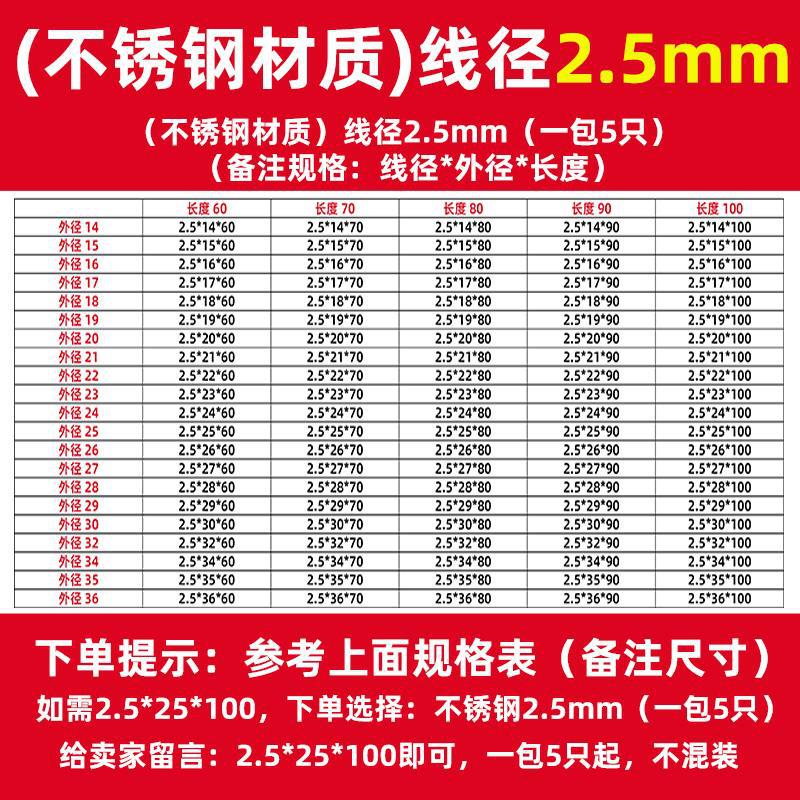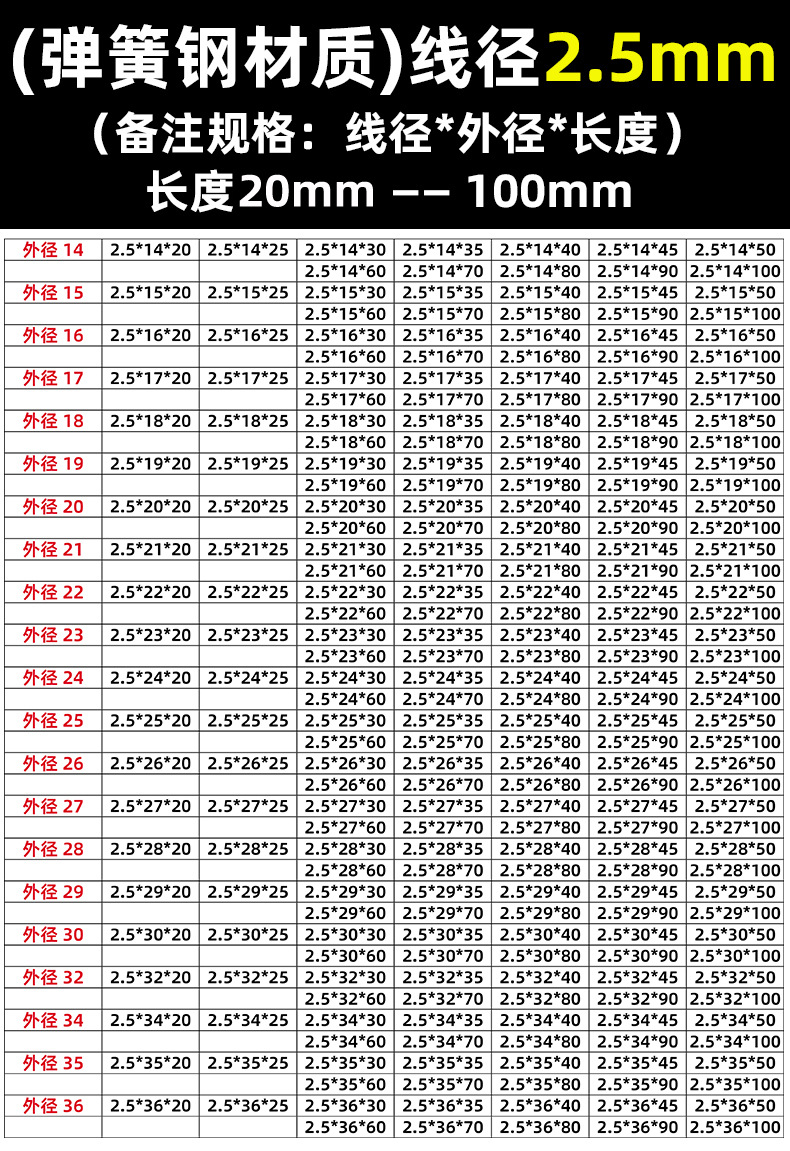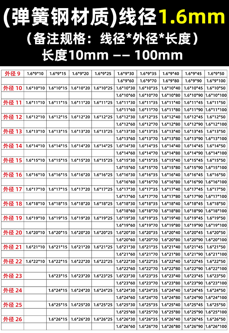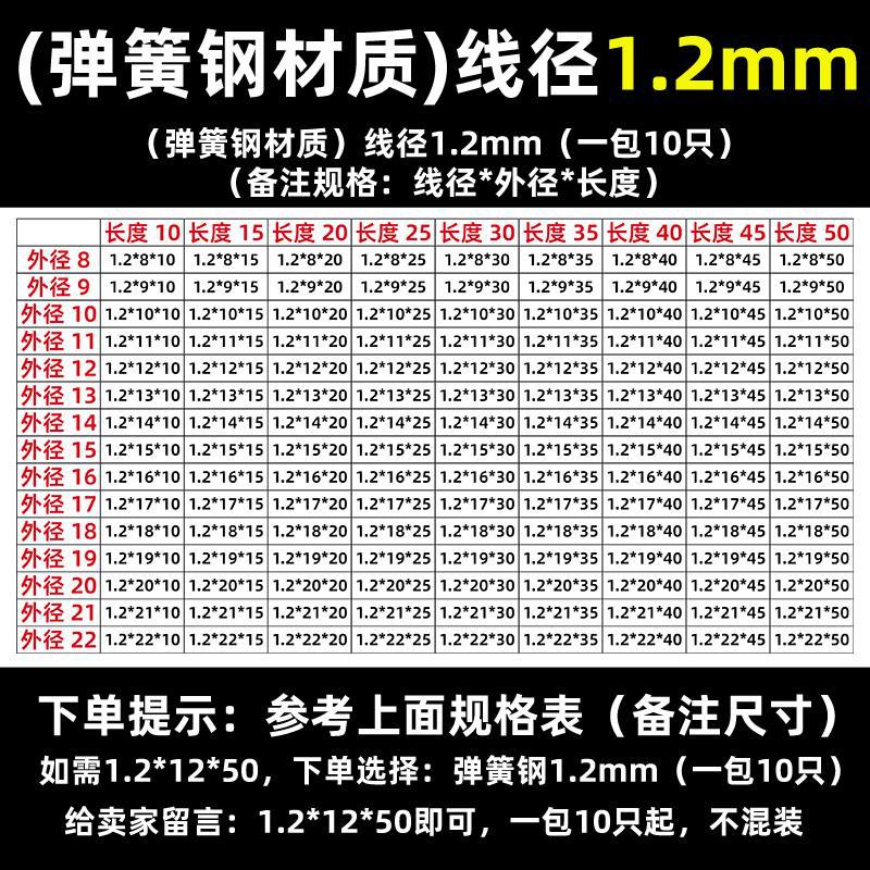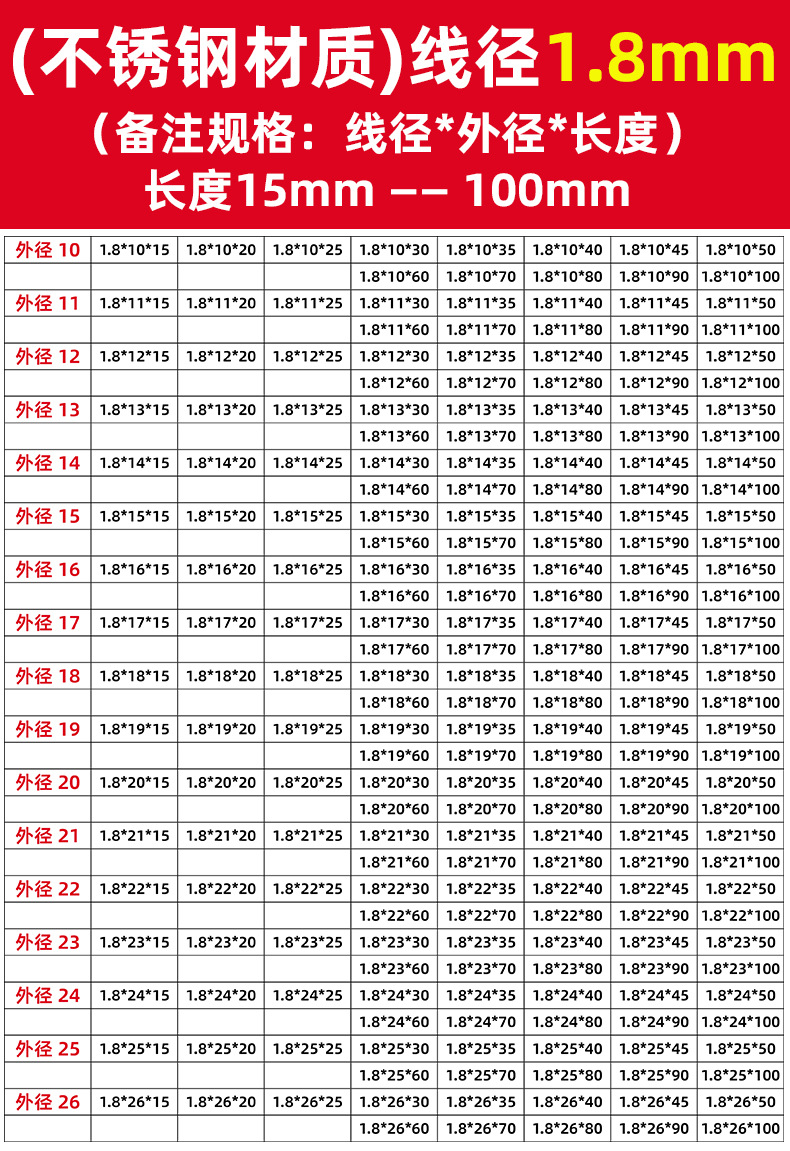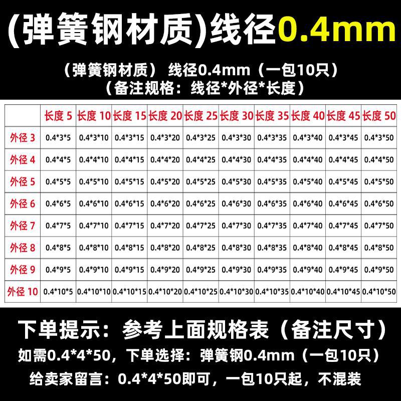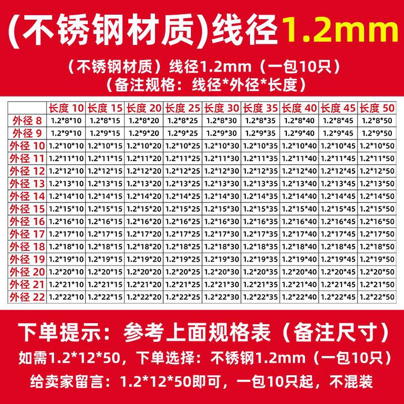 • 치수는 와이어 직경 * 외경 * 길이(밀리미터 단위)입니다.