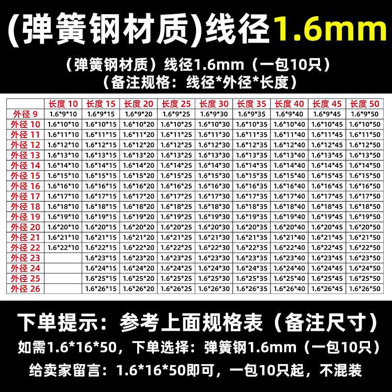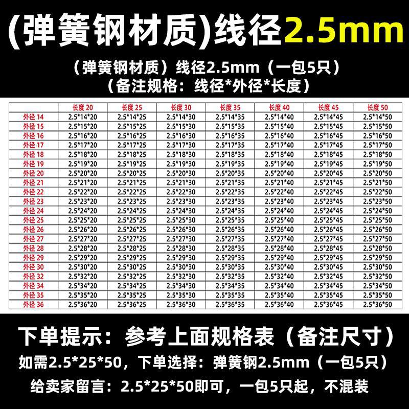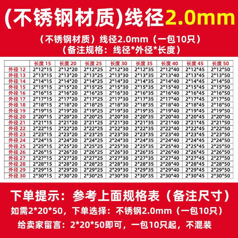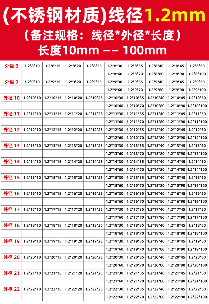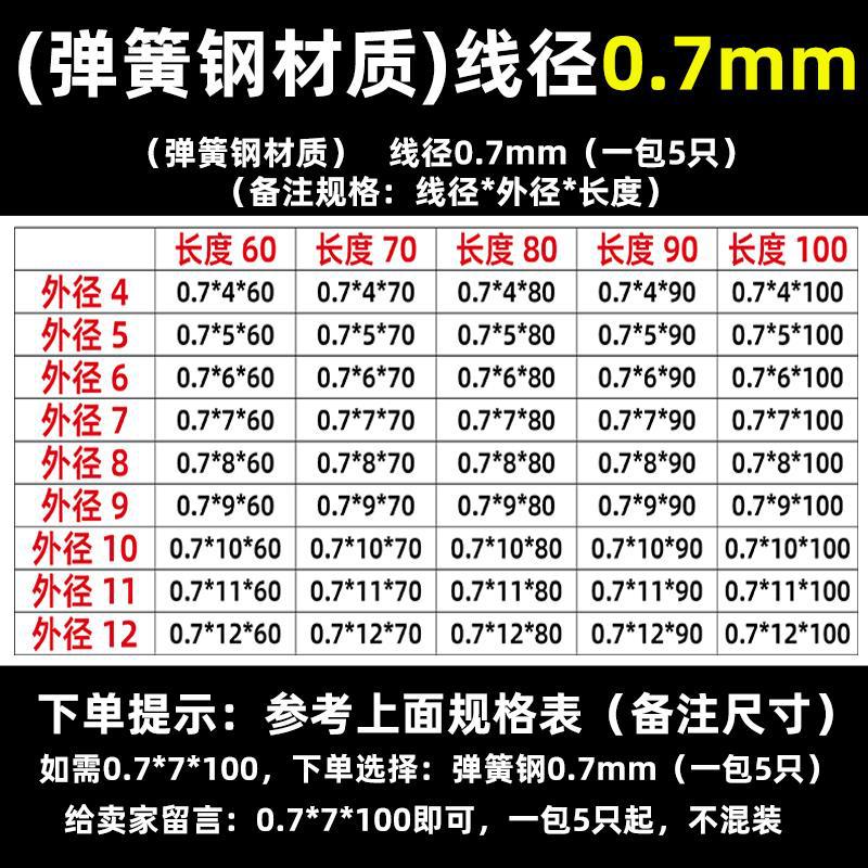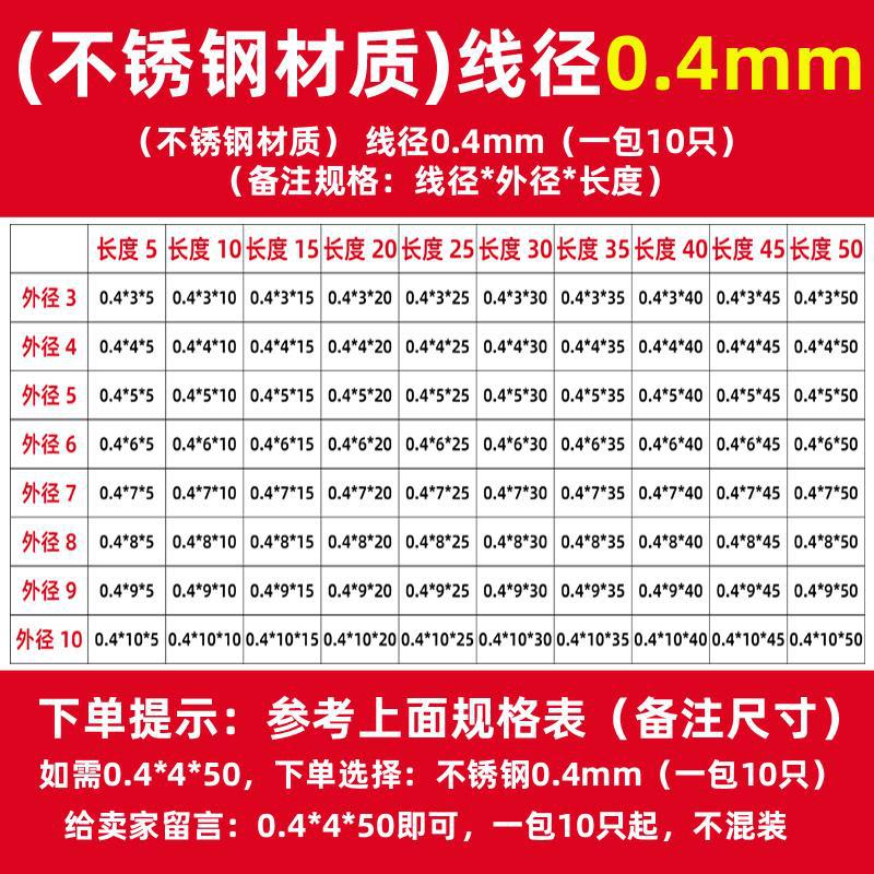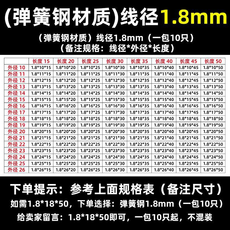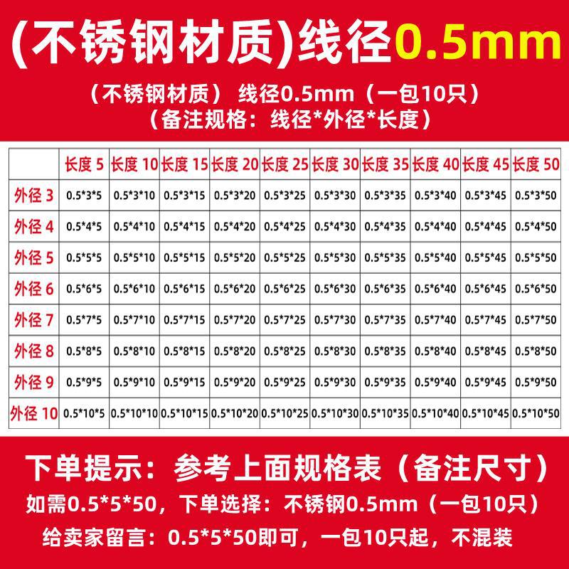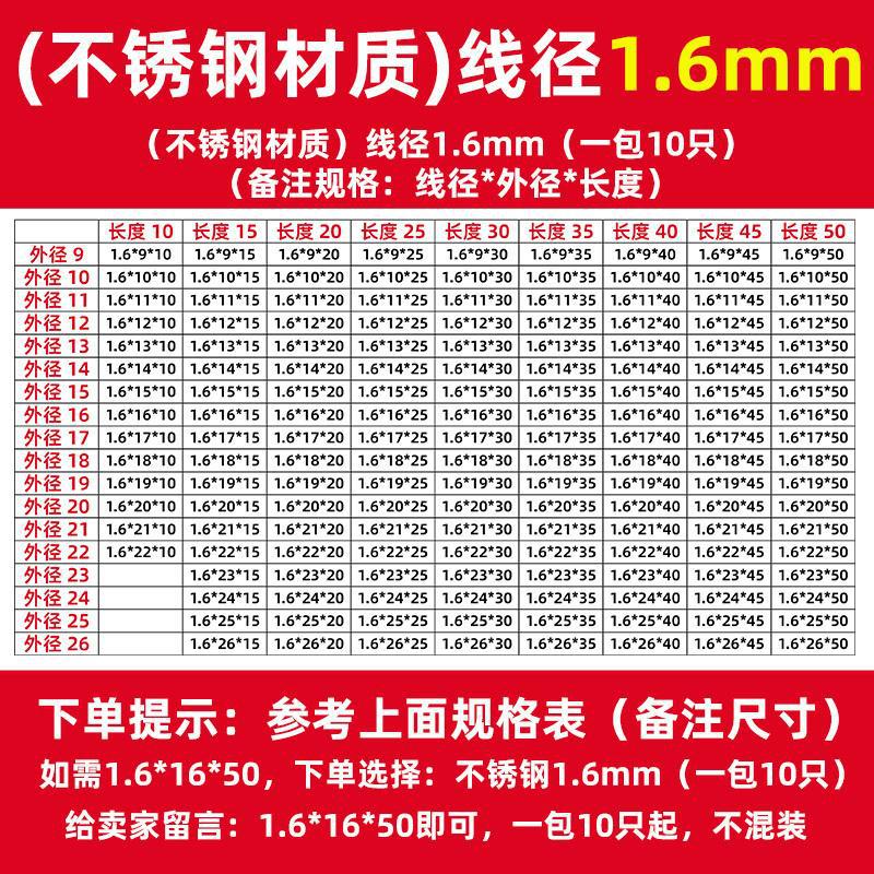• 치수는 와이어 직경 * 외경 * 길이(밀리미터 단위)입니다.