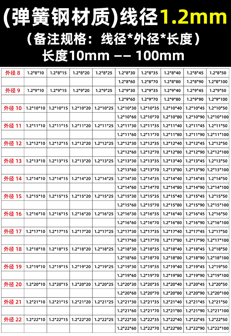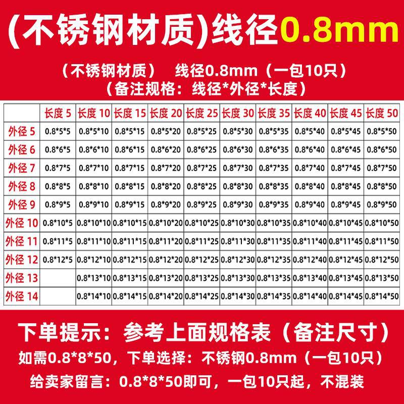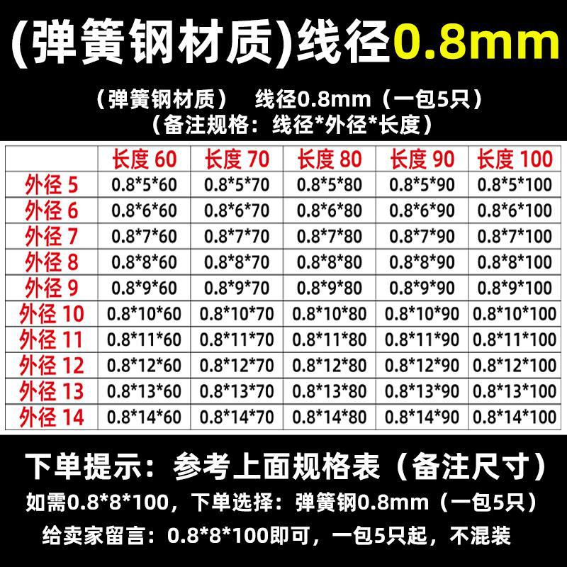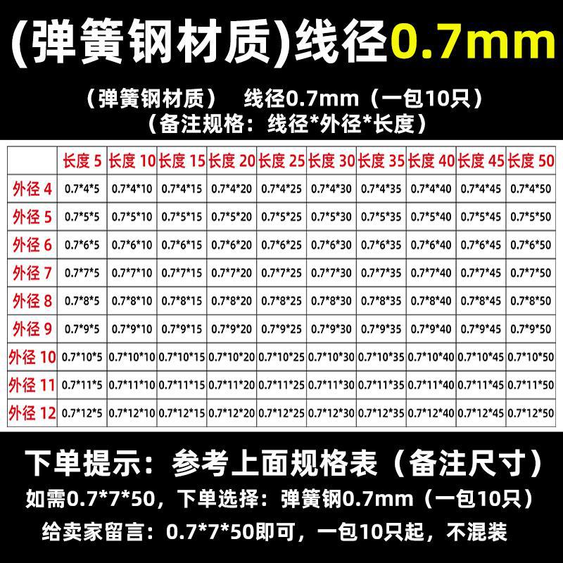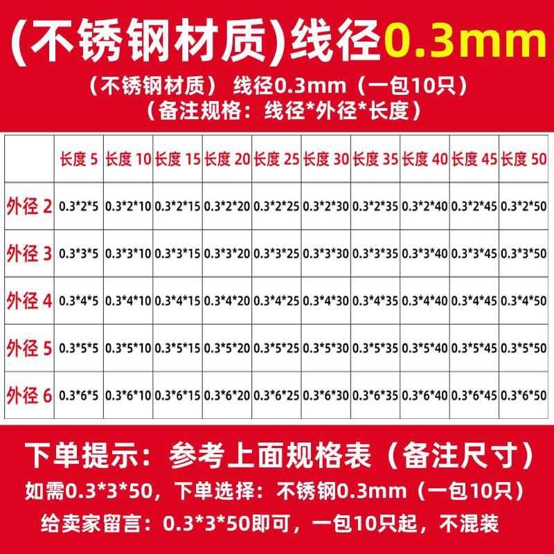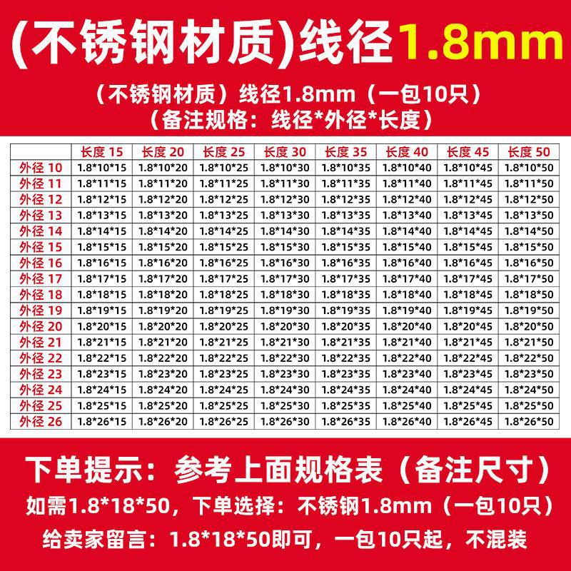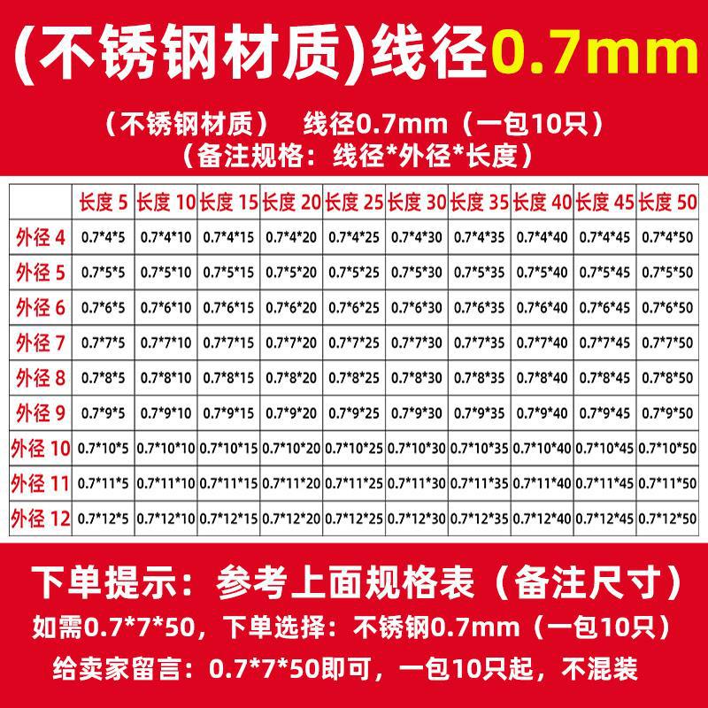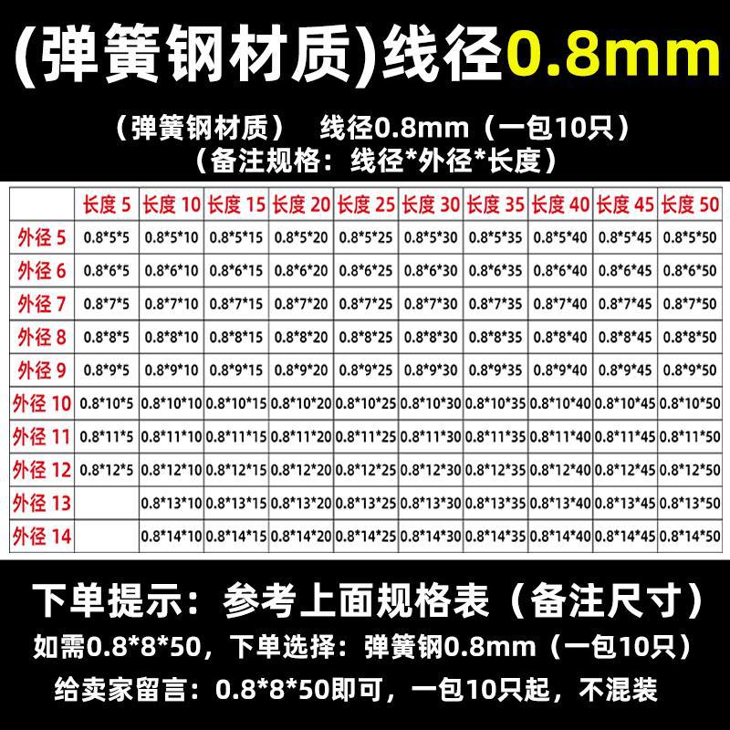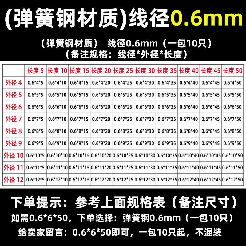 • 치수는 와이어 직경 * 외경 * 길이(밀리미터 단위)입니다.
