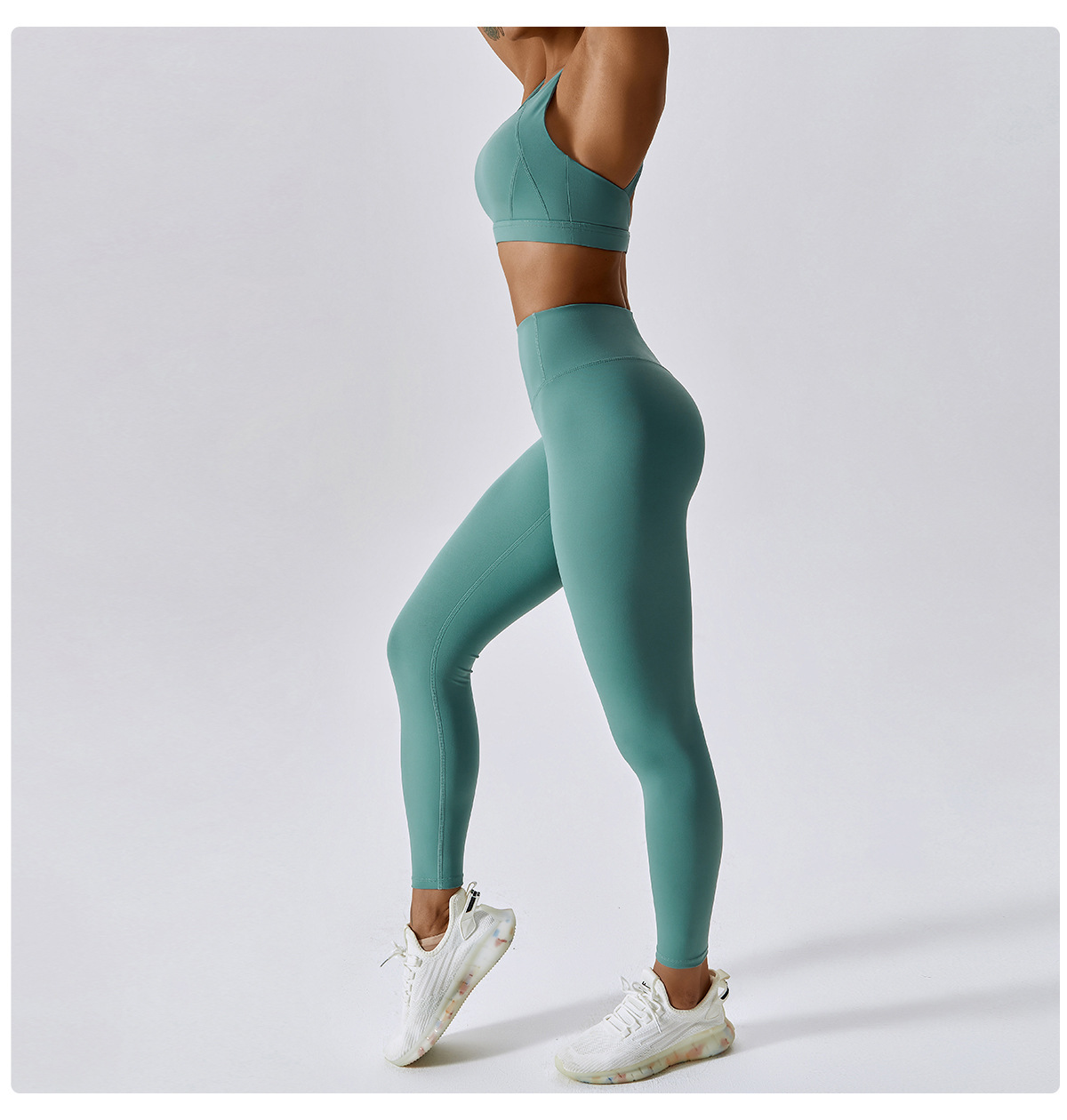 여성 전문 체육관 훈련 아침 달리기 스포츠 피트니스 의류 8047을 위한 여름 누드 느낌의 속건성 요가복 세트