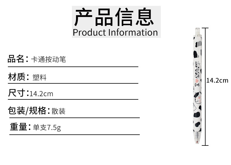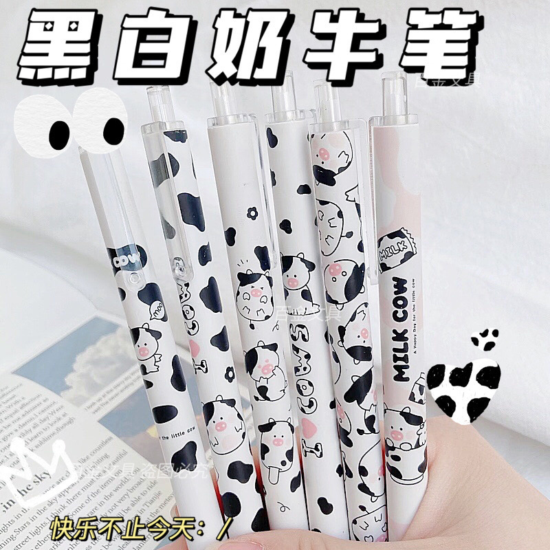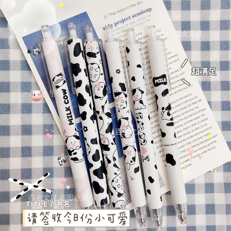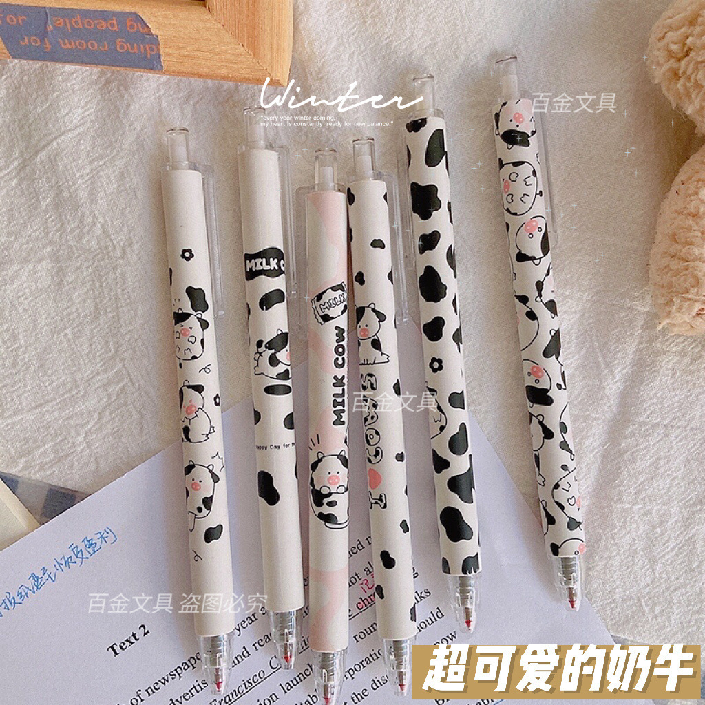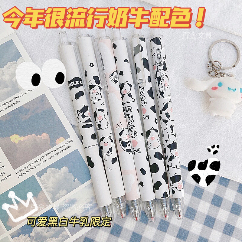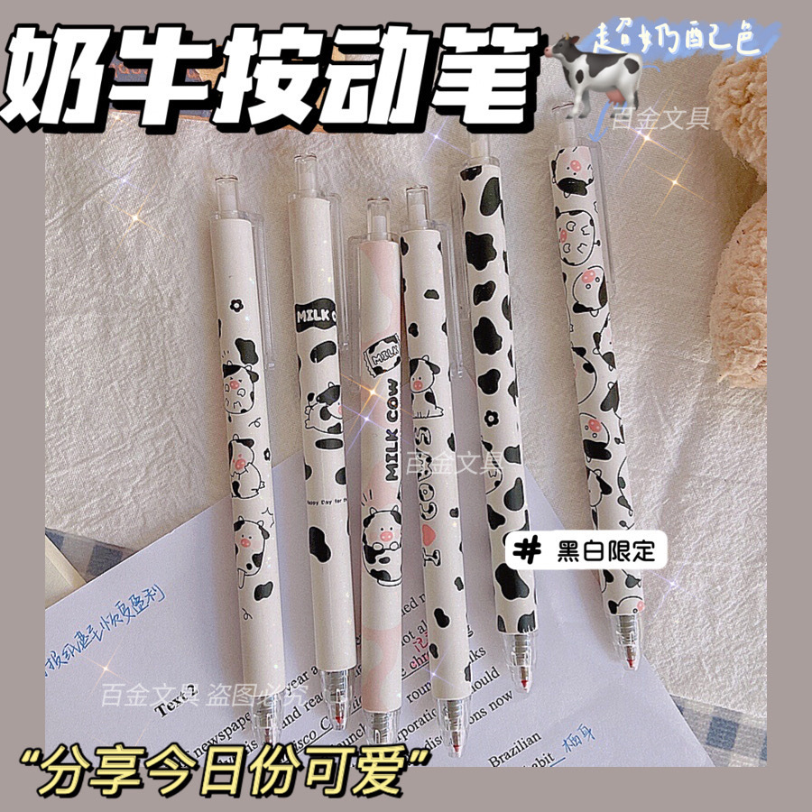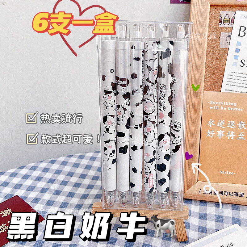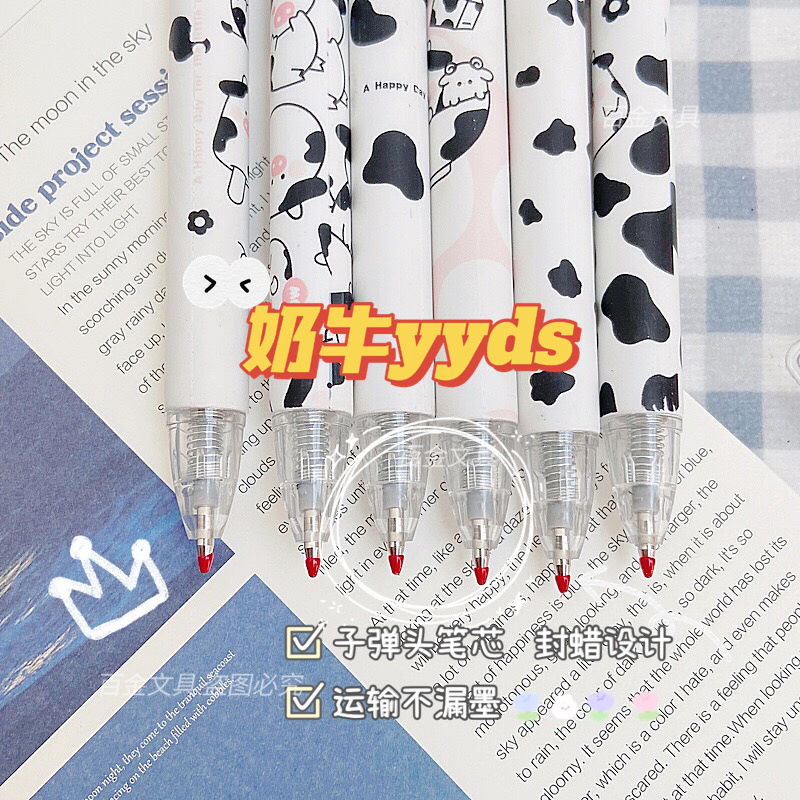 젤 펜 고색 가치 암소 귀여운 소녀 심장 프레스 펜 학생 0.5mm 블랙 젤 펜