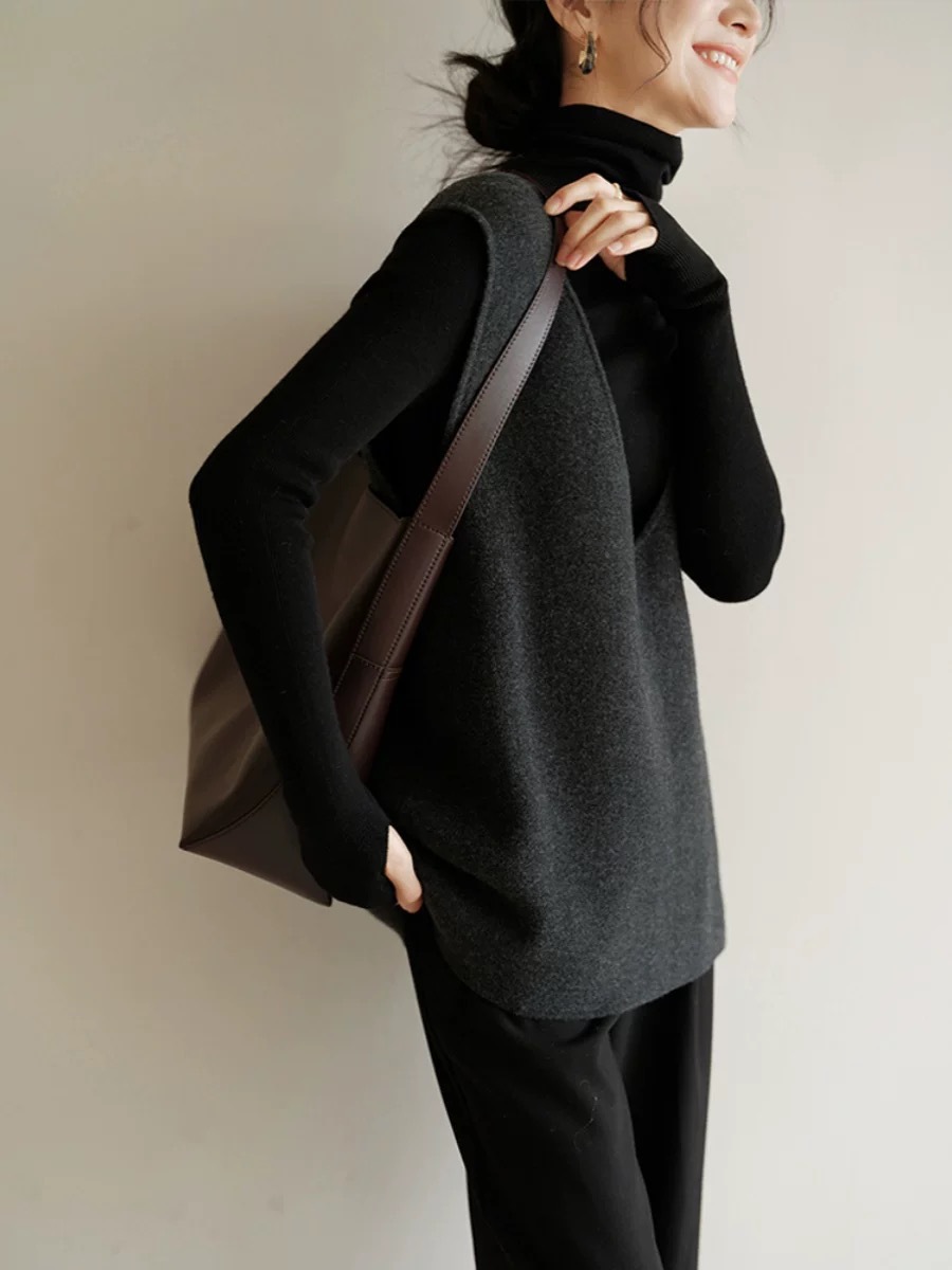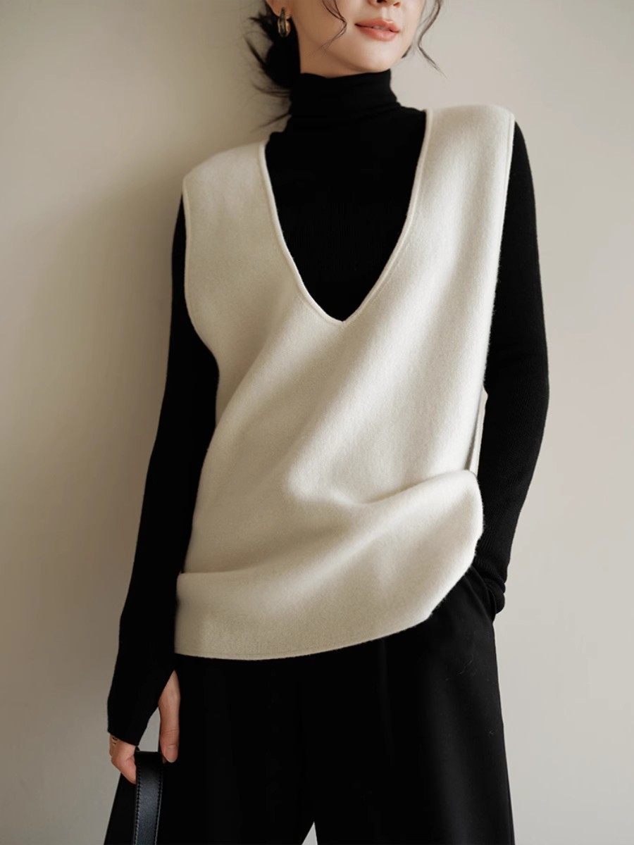 올 매치 간단한 하이 레벨 이완 슬리밍 니트 조끼