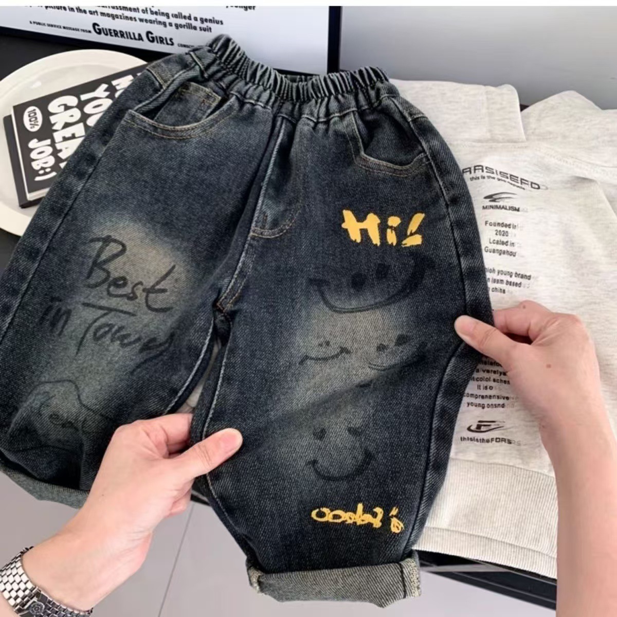 어린이 봄과 가을 청바지 새로운 세련된 유행 어린이 캐주얼 패션 그라디언트 데님 트렌디 한 올 매치 바지스토어 가기