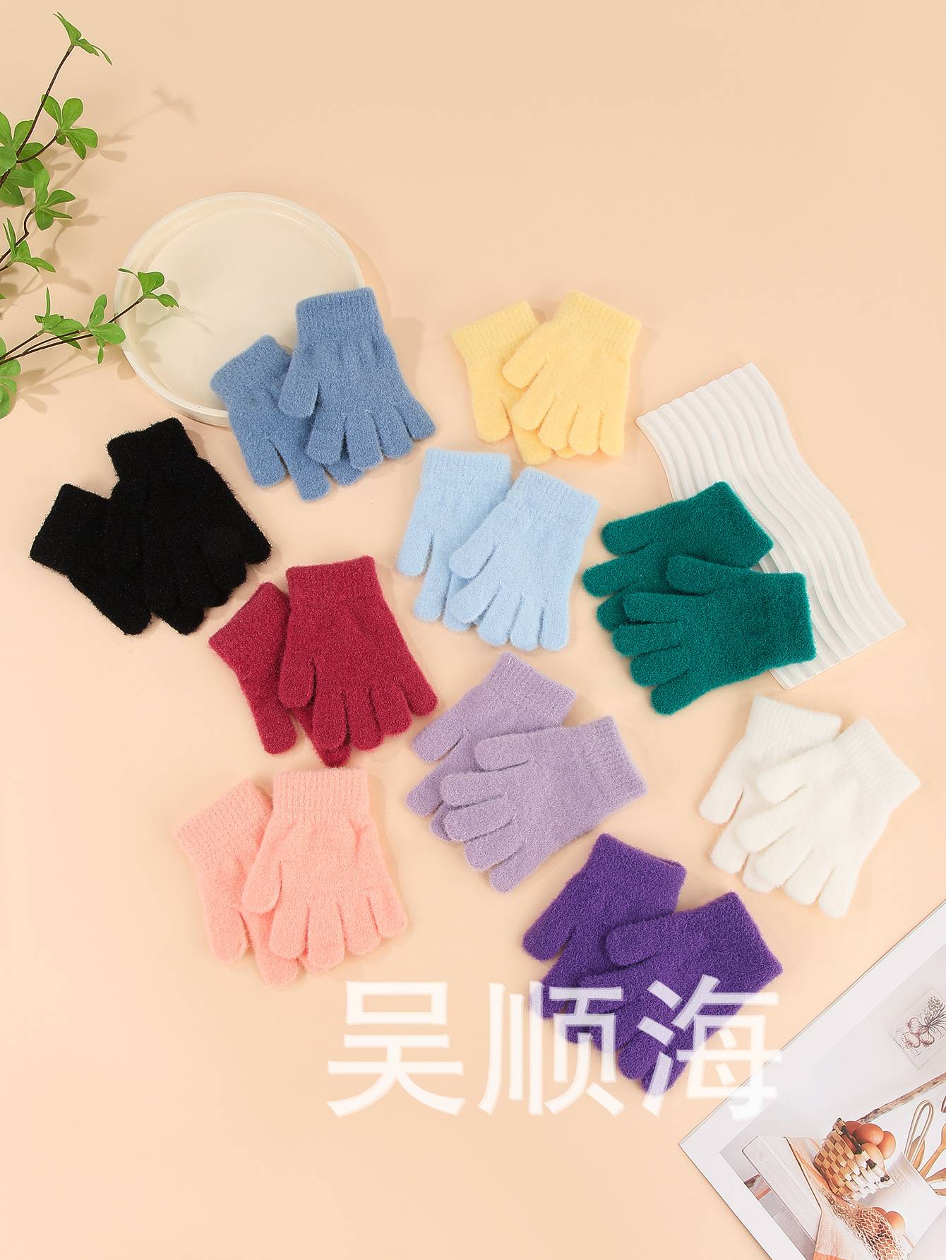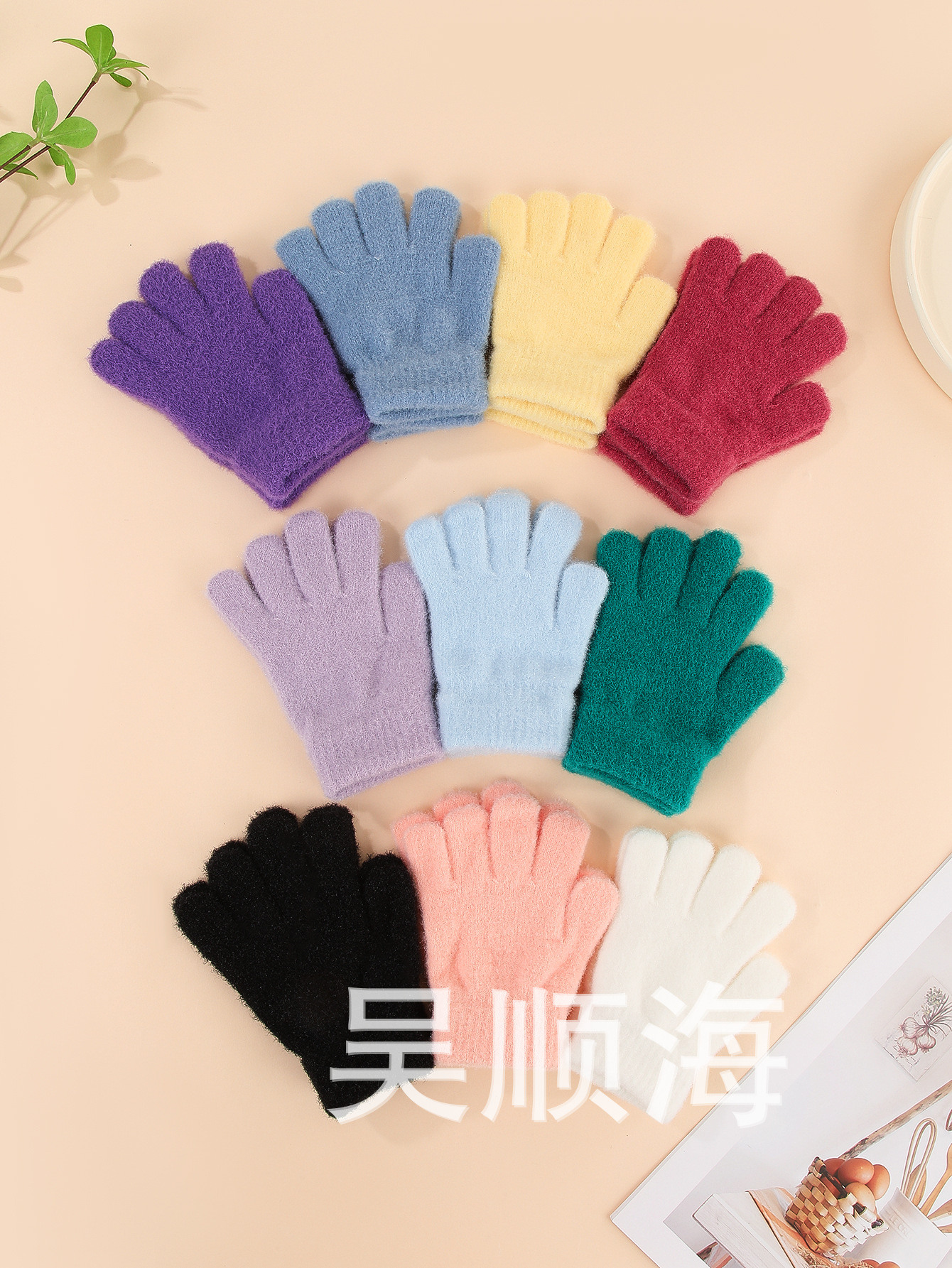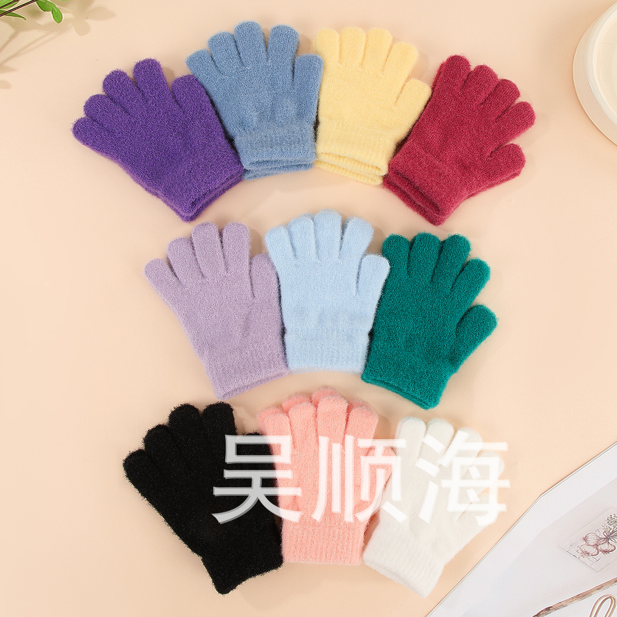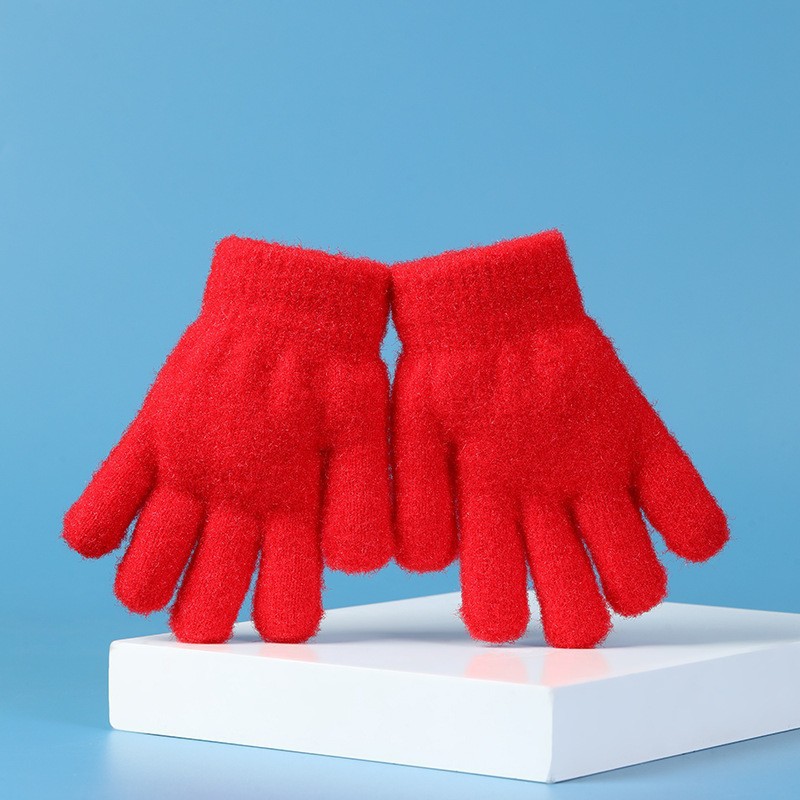 가을과 겨울 어린이 단색 크리스탈 장갑 기모 따뜻한 소년과 소녀 장갑 산호 양털 니트 장갑 도매스토어 가기
