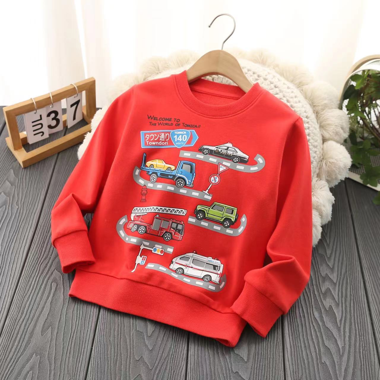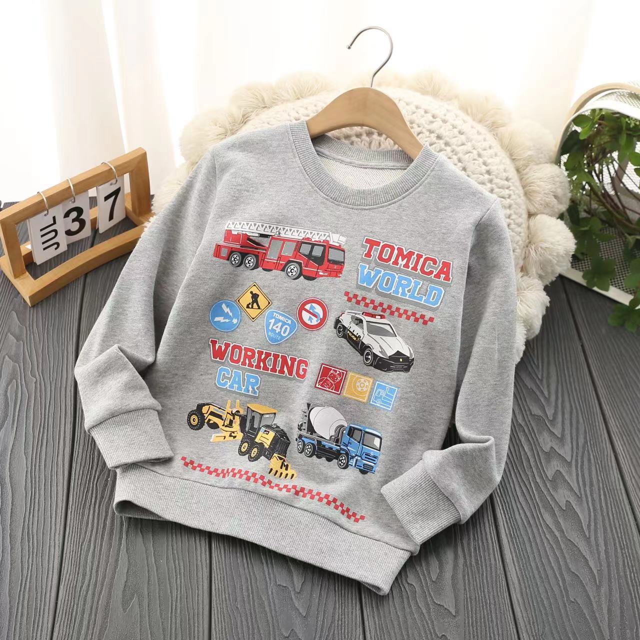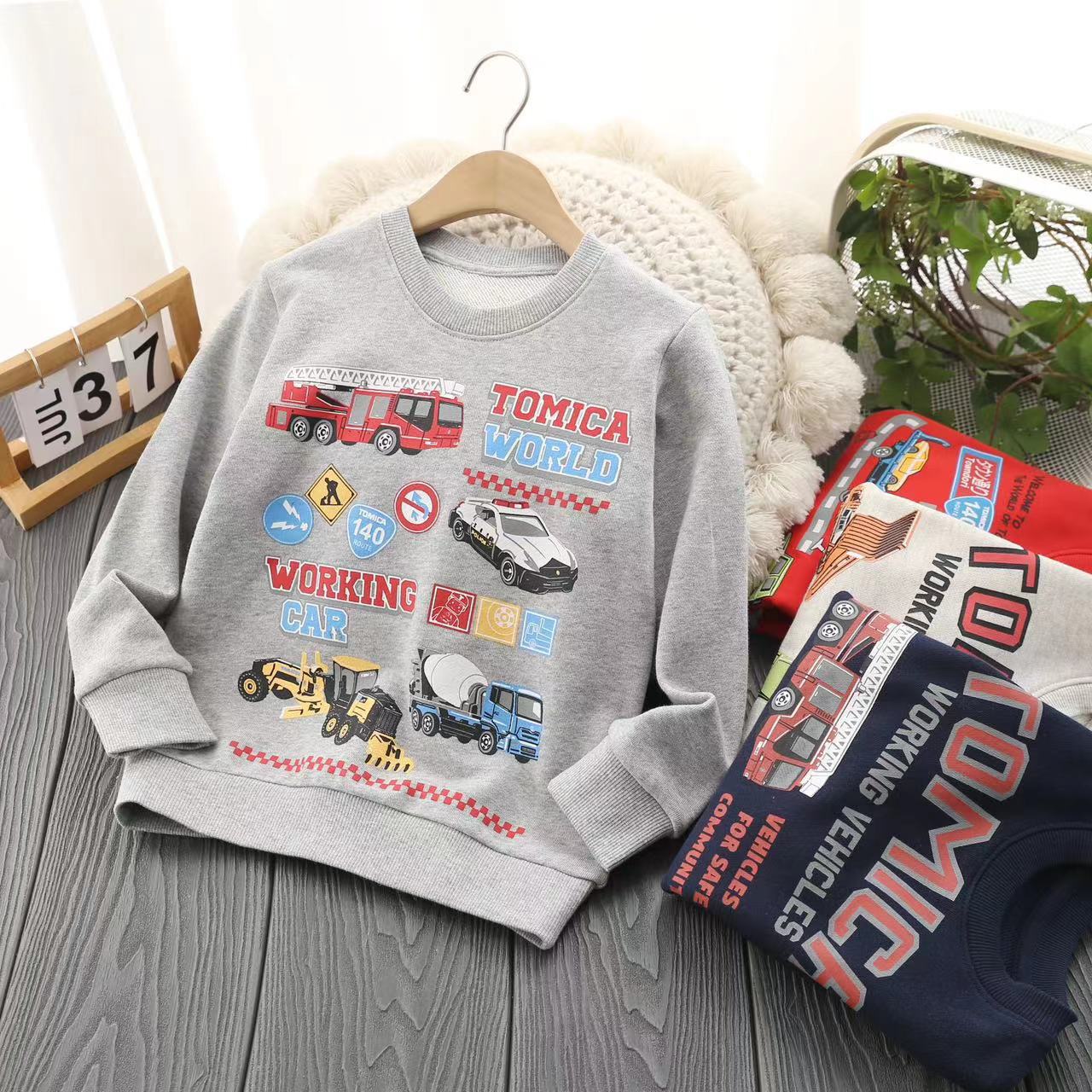 수출용 일본 소년 순면 테리 만화 자동차 긴팔 라운드 넥 가을 겨울 스타일 남아용 캐주얼 따뜻한 스웨트 셔츠스토어 가기