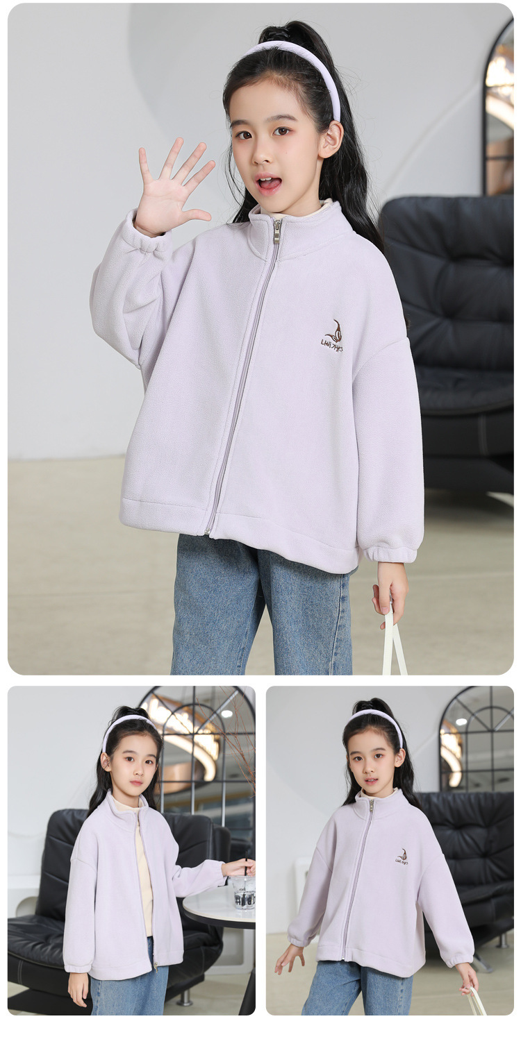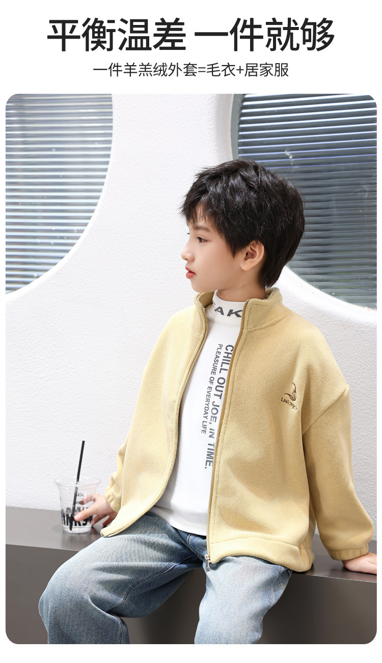 2024 년 이른 봄 소년 기모 두꺼운 올리 벨벳 어린이 양털 조커 칼라 재킷 부드러운 찹쌀한 방한 따뜻한스토어 가기