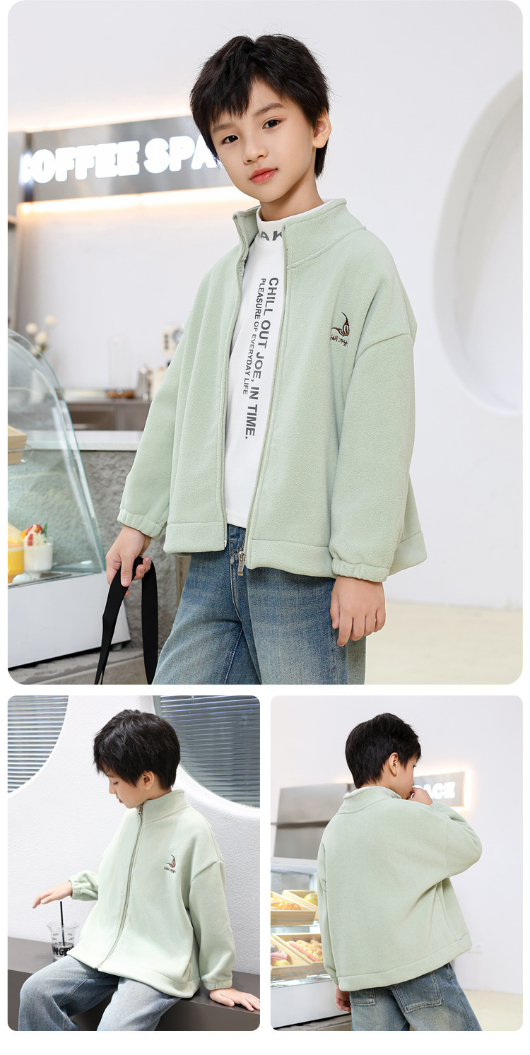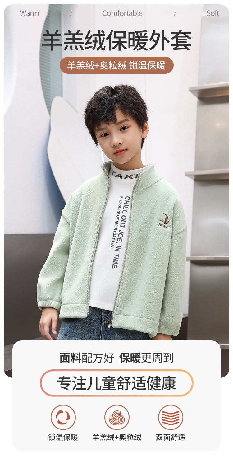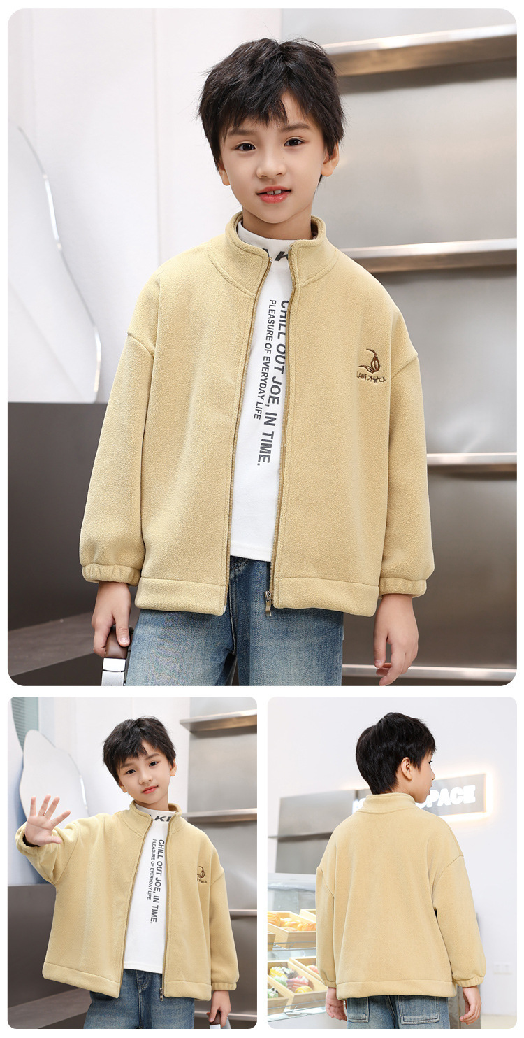 2024 년 이른 봄 소년 기모 두꺼운 올리 벨벳 어린이 양털 조커 칼라 재킷 부드러운 찹쌀한 방한 따뜻한