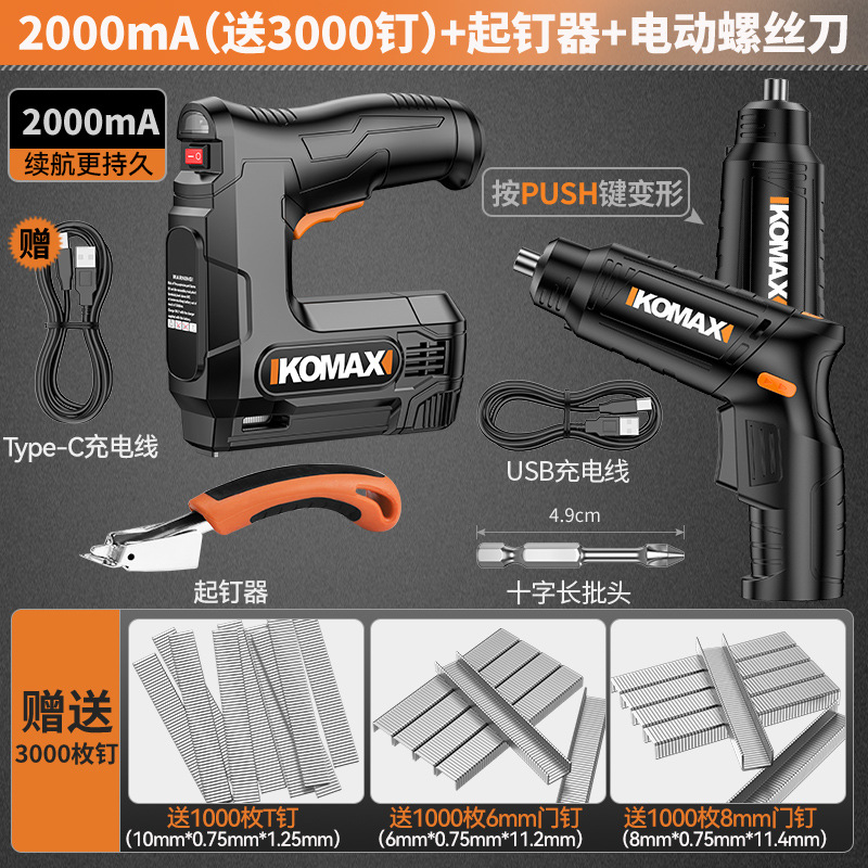 • 2000mA(못 3000개 포함) + 못 제거제 + 전동 드라이버