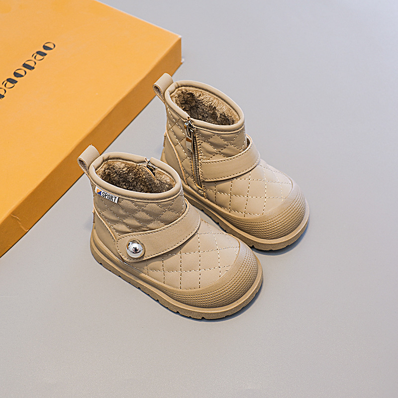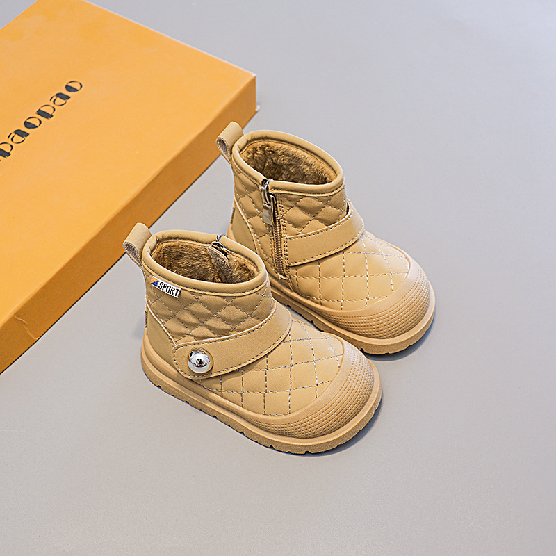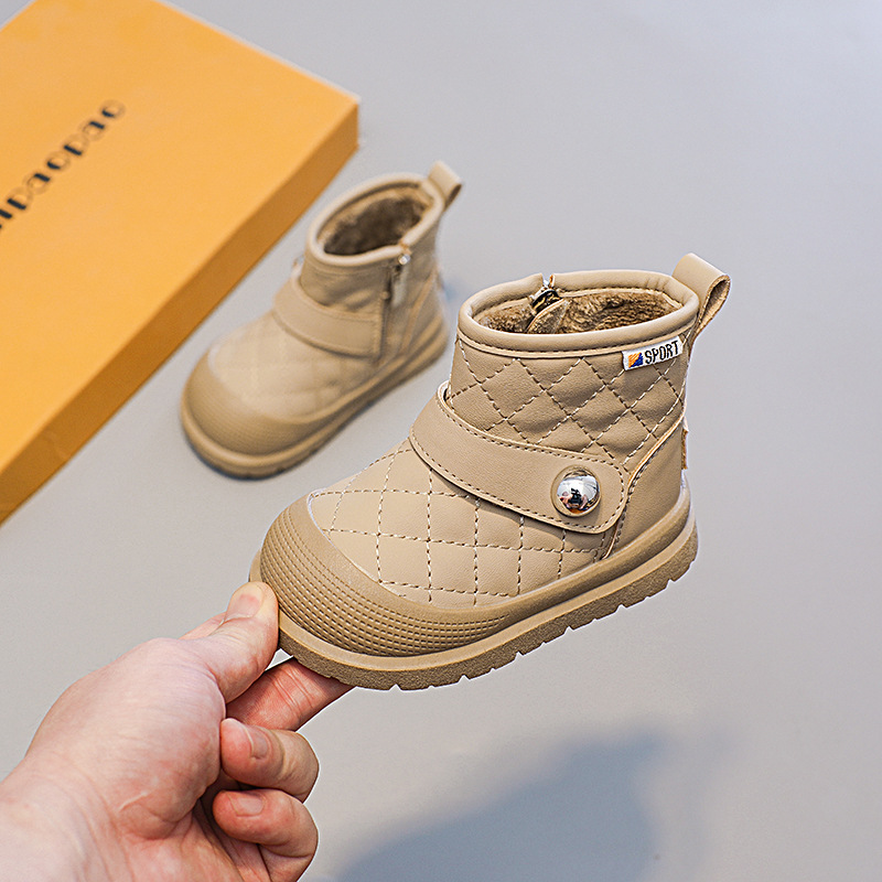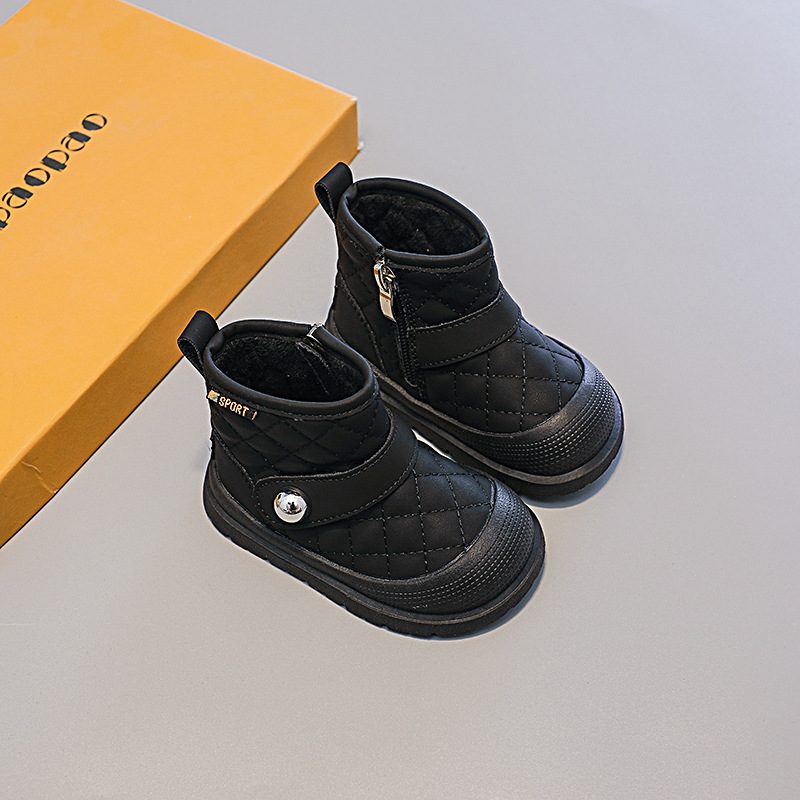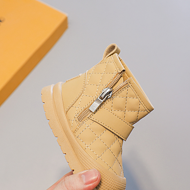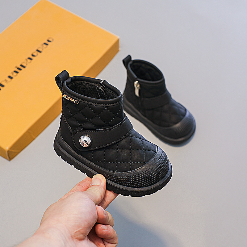 어린이 일본 시리즈 마름모꼴 발목 부츠 소녀 편안한 부드러운 밑바닥 킥 증명 코튼 슈즈 남성 기모 메탈 사이드 지퍼 마틴 부츠