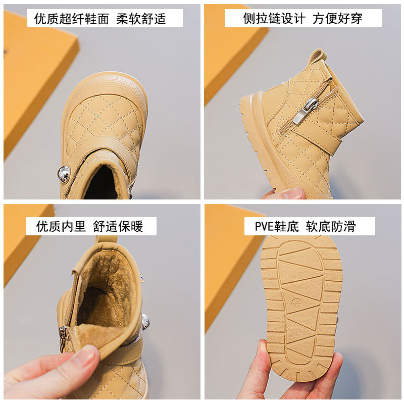 어린이 일본 시리즈 마름모꼴 발목 부츠 소녀 편안한 부드러운 밑바닥 킥 증명 코튼 슈즈 남성 기모 메탈 사이드 지퍼 마틴 부츠스토어 가기