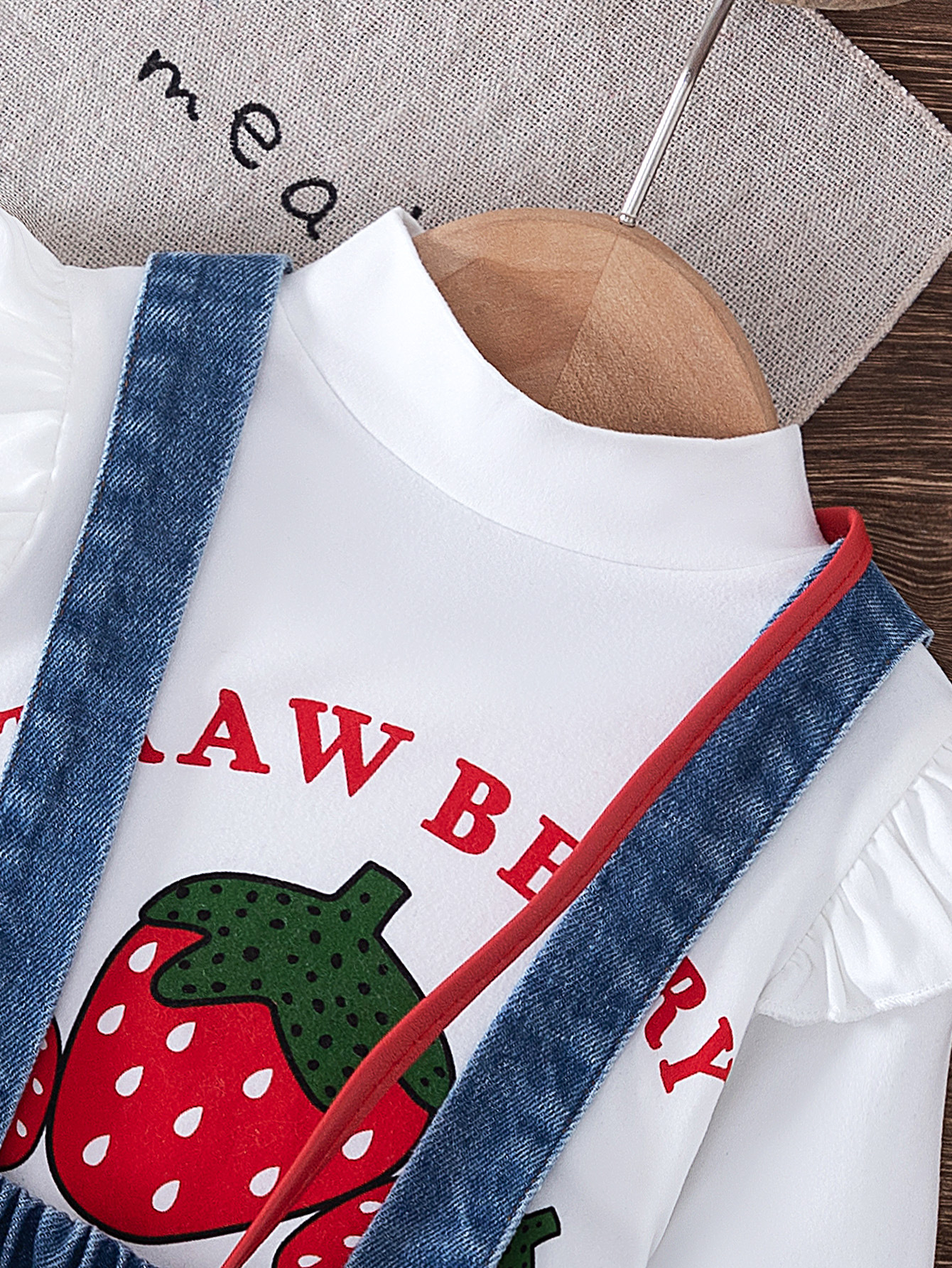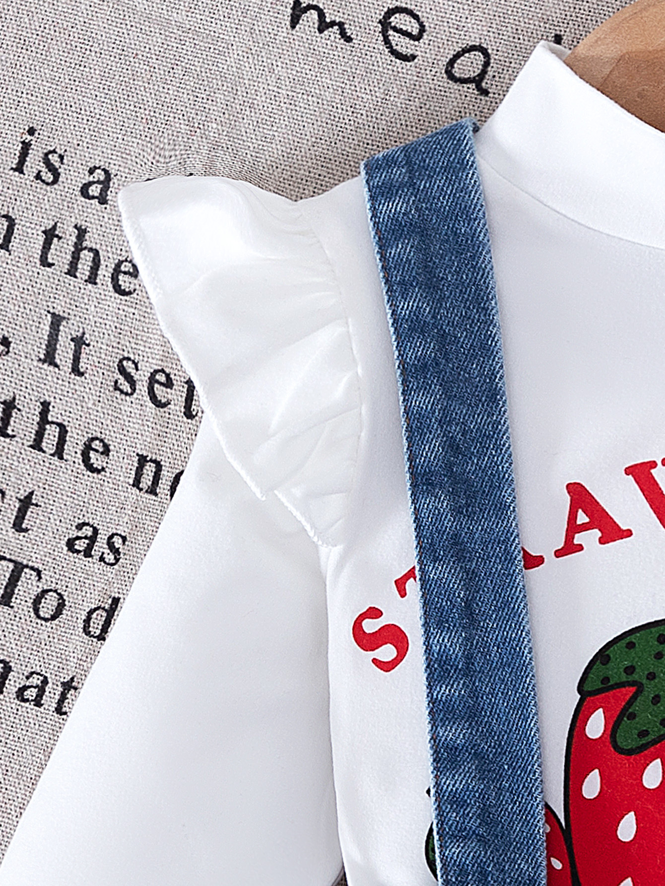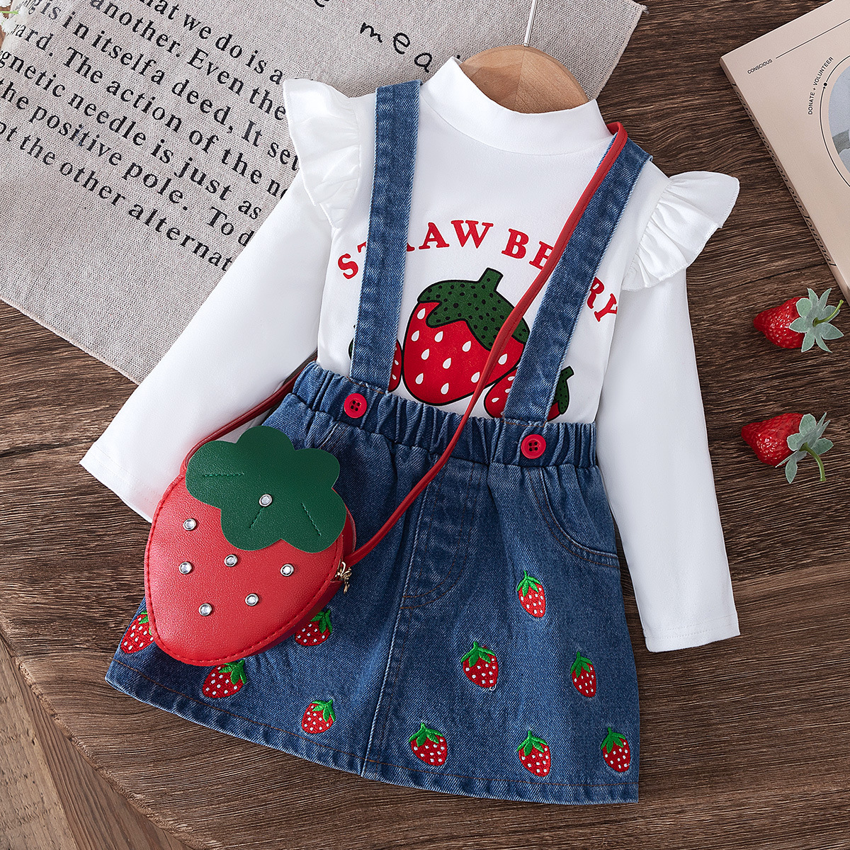 2024 새로운 가을 국경 아기 비행 슬리브 인쇄 탑 스트랩 자수 데님 스커트 가방 3 피스 세트스토어 가기