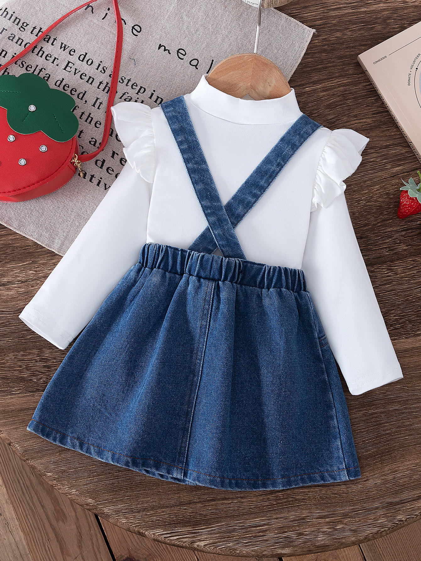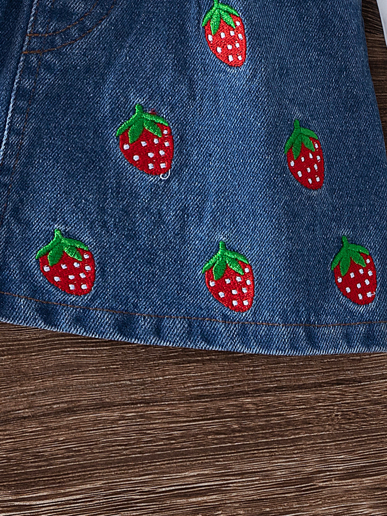 2024 새로운 가을 국경 아기 비행 슬리브 인쇄 탑 스트랩 자수 데님 스커트 가방 3 피스 세트