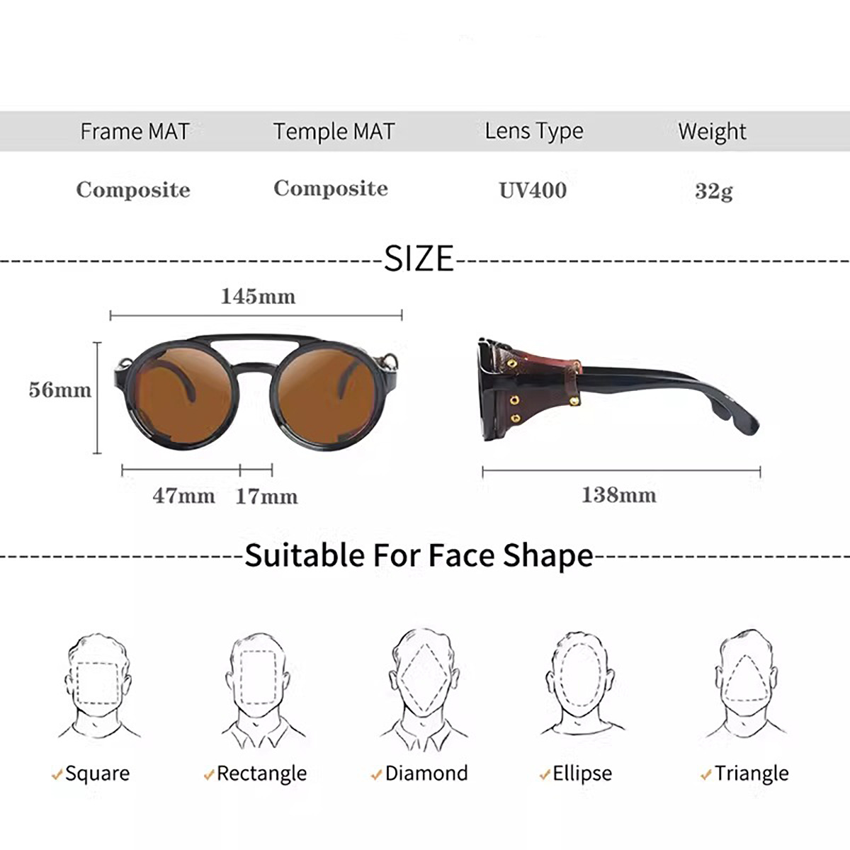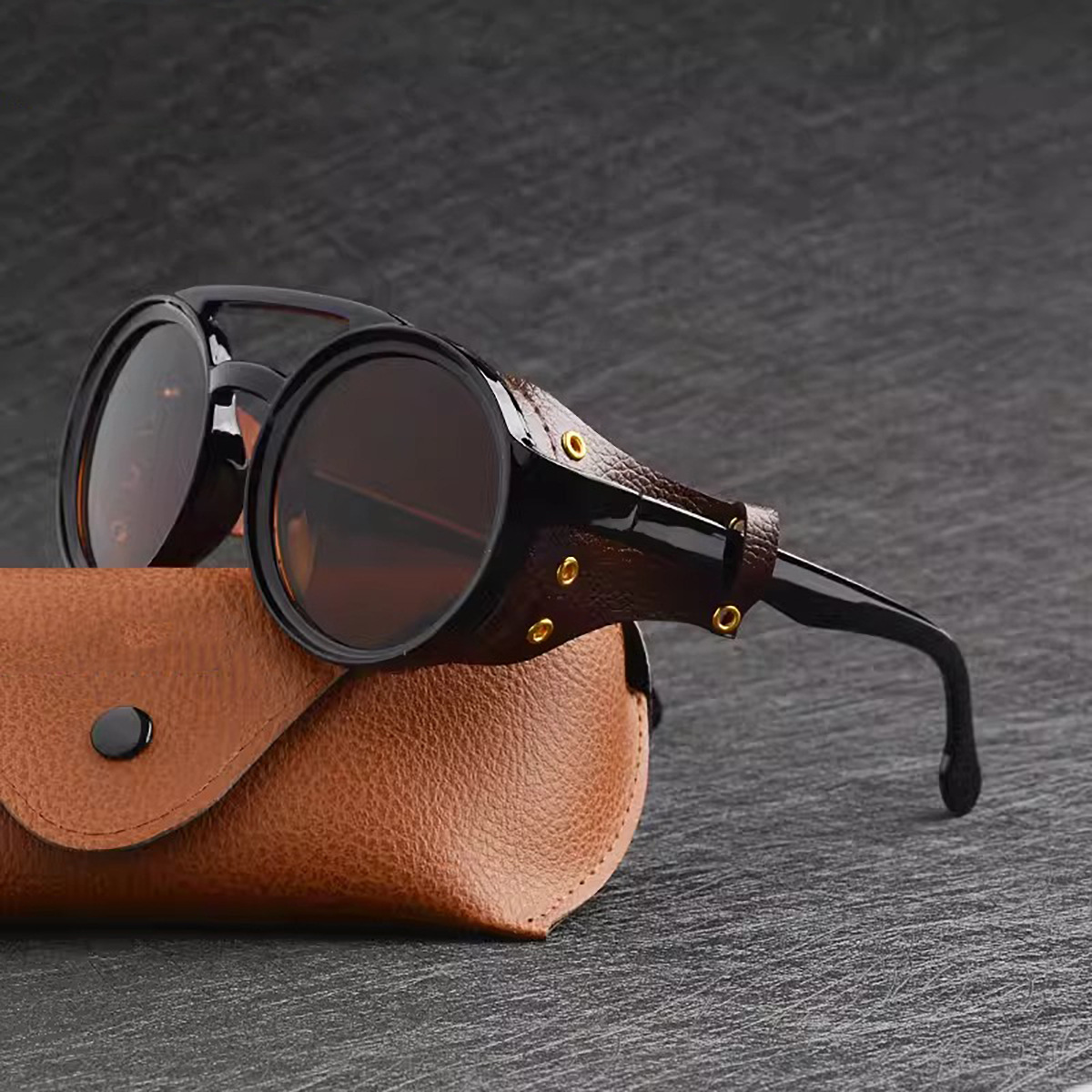 방풍 등산 스팀 펑크 스타일 라운드 레트로 선글라스 남성과 여성 자전거 타기 오토바이스토어 가기
