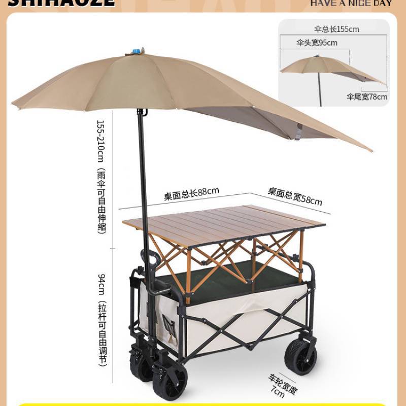 • 매점 및 홈 케어 시리즈 [슈퍼 탱크 휠 + 90 테이블 + 우산] 베이지 그린