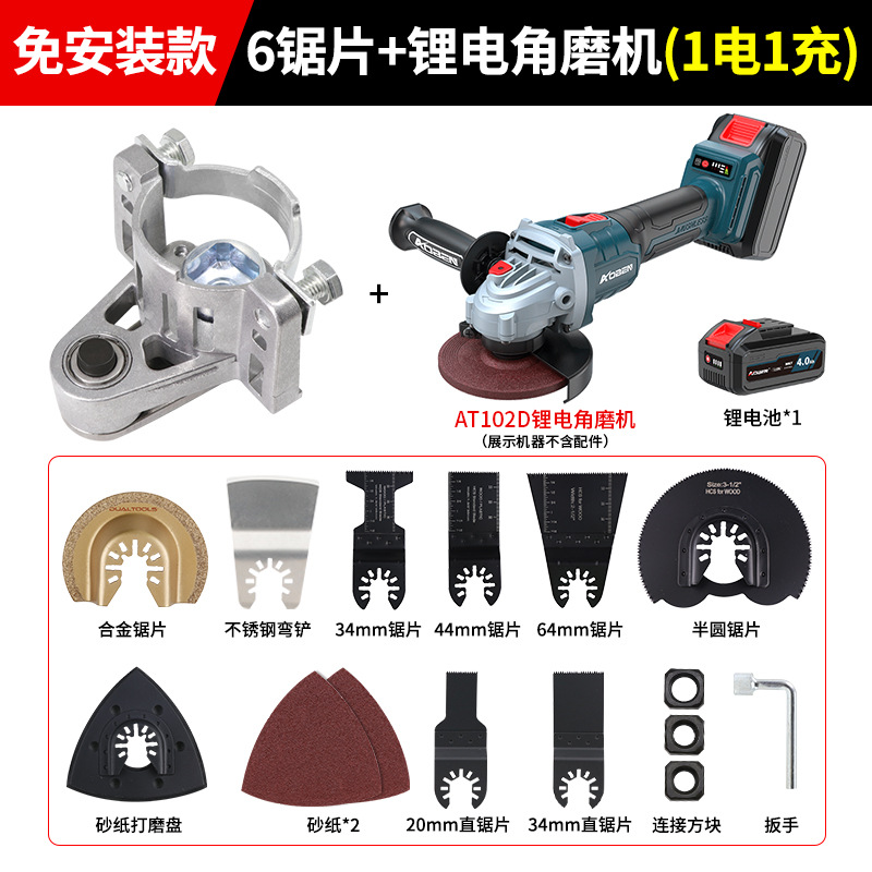 • ✅[설치 불필요 모델] + 톱날 8개 + 리튬 배터리 앵글 그라인더 AT102D(배터리 1개, 충전 1개)
