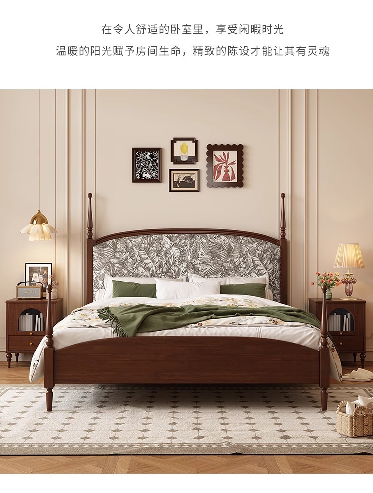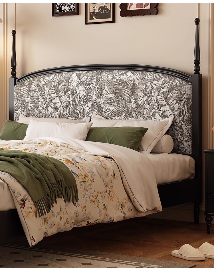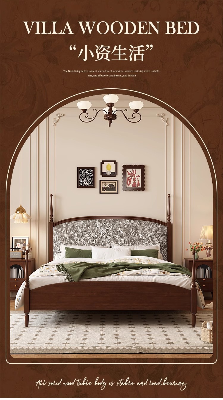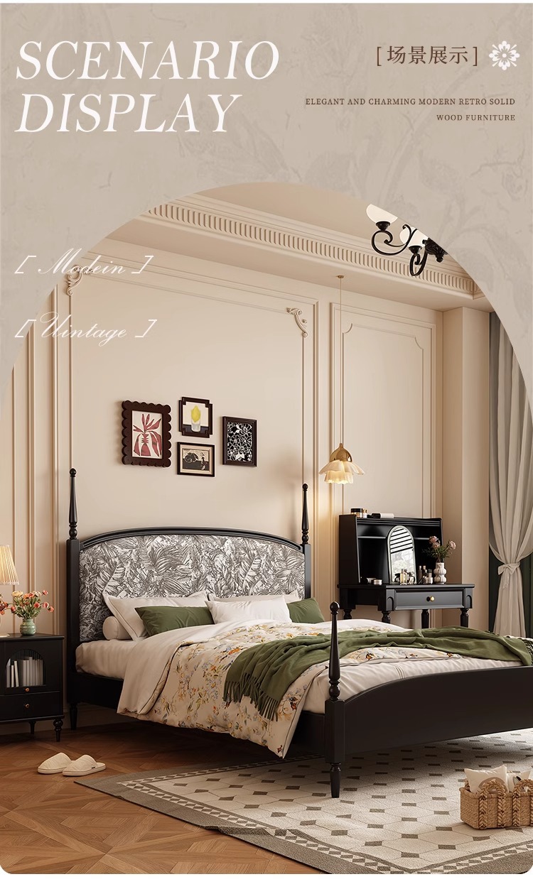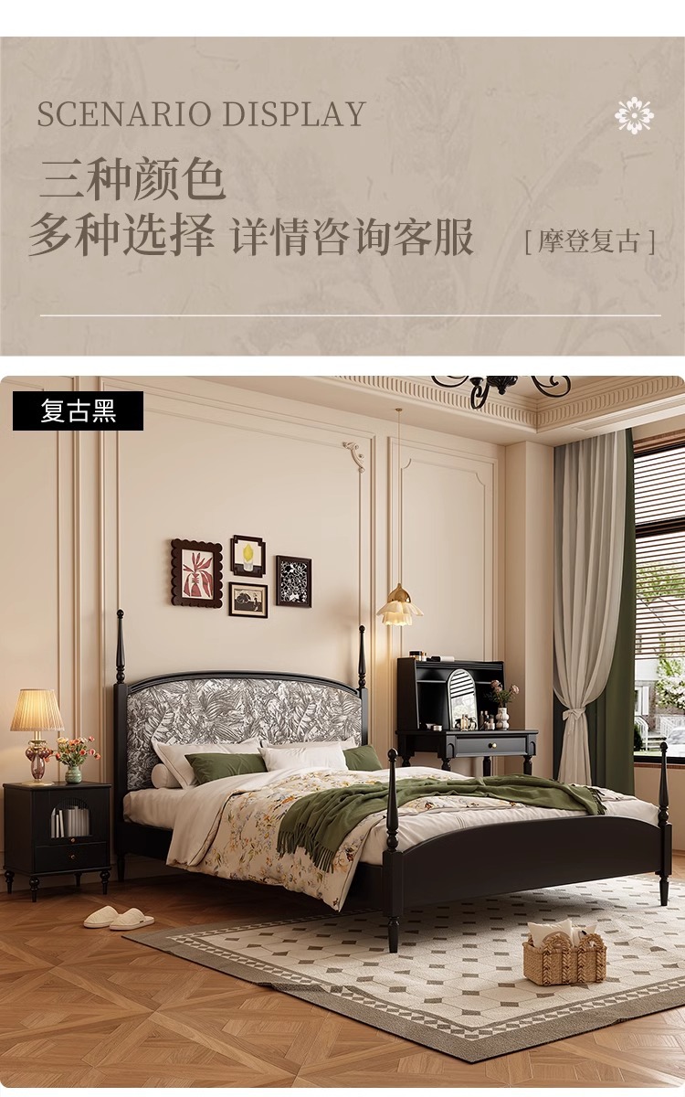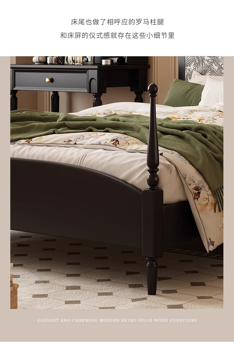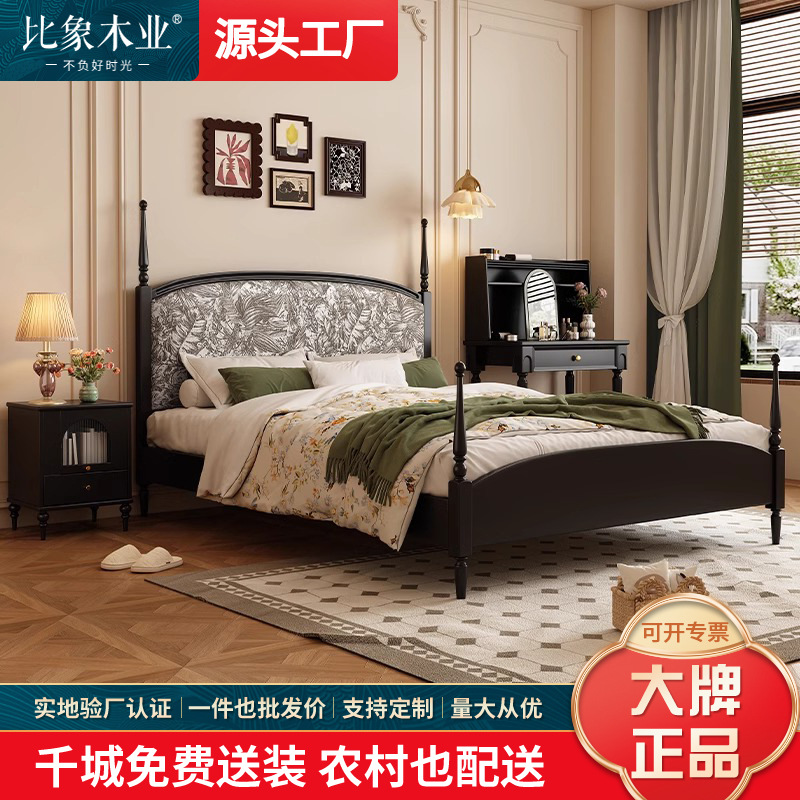 프랑스 복고풍 단단한 나무 침대 최소 1.8 m 미국 빛 고급 침대 골동품 마스터 침실 블랙 부드러운 침대 더블 침대스토어 가기