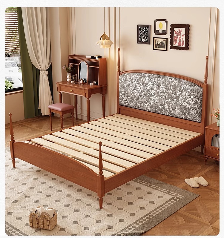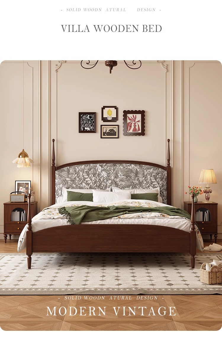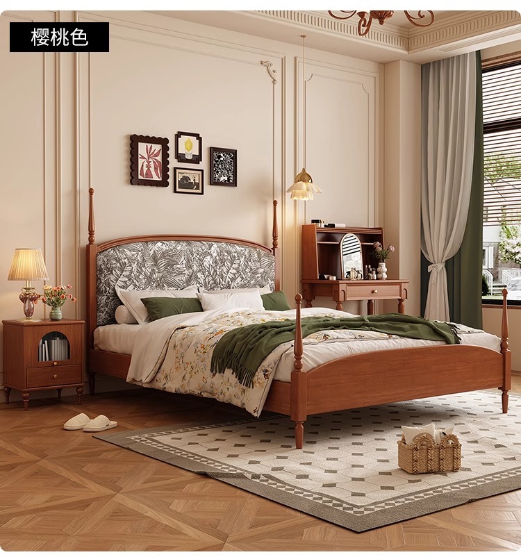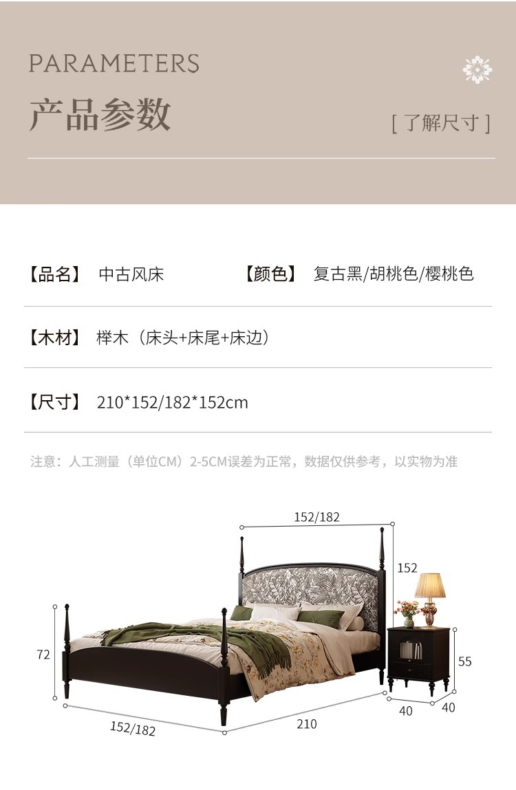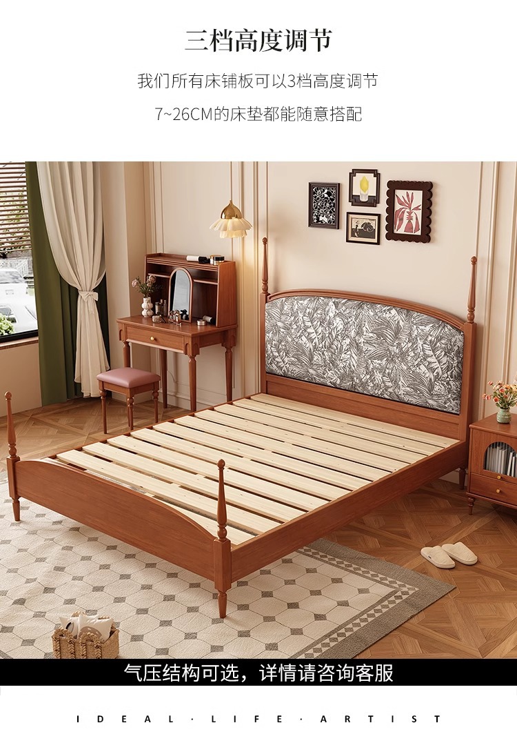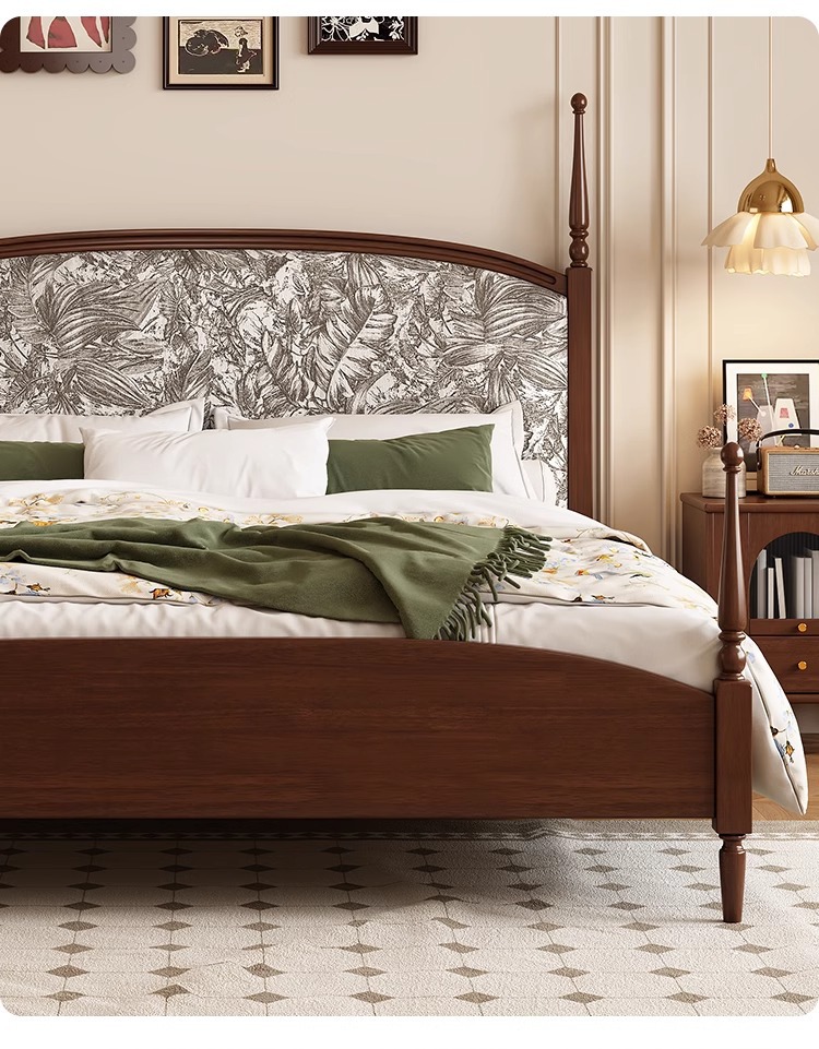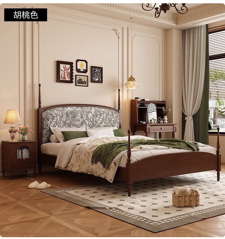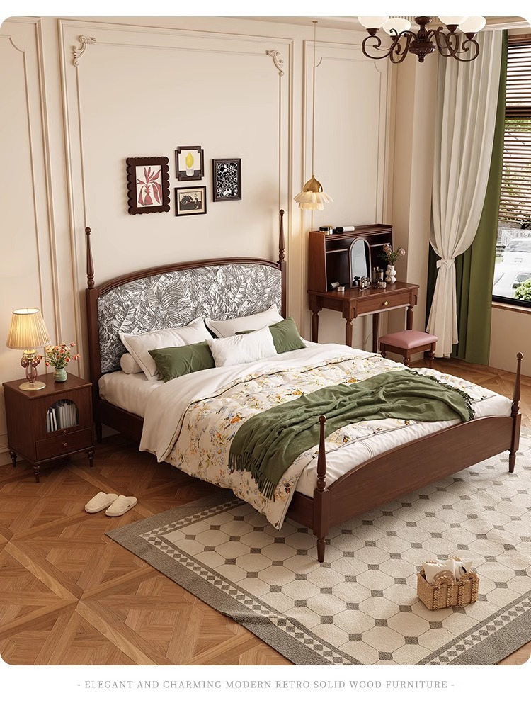 프랑스 복고풍 단단한 나무 침대 최소 1.8 m 미국 빛 고급 침대 골동품 마스터 침실 블랙 부드러운 침대 더블 침대스토어 가기
