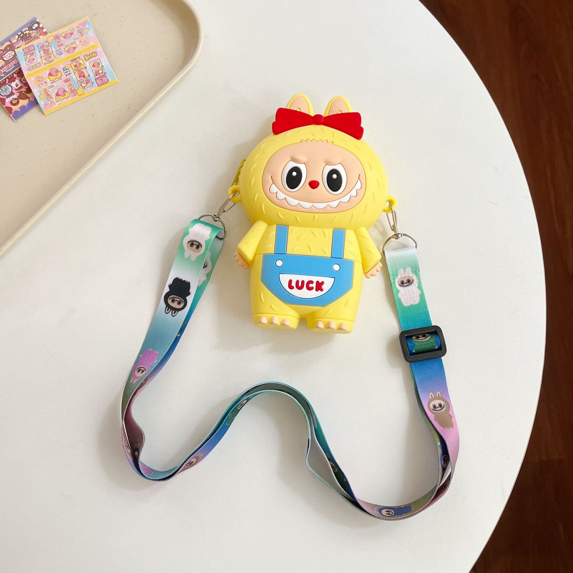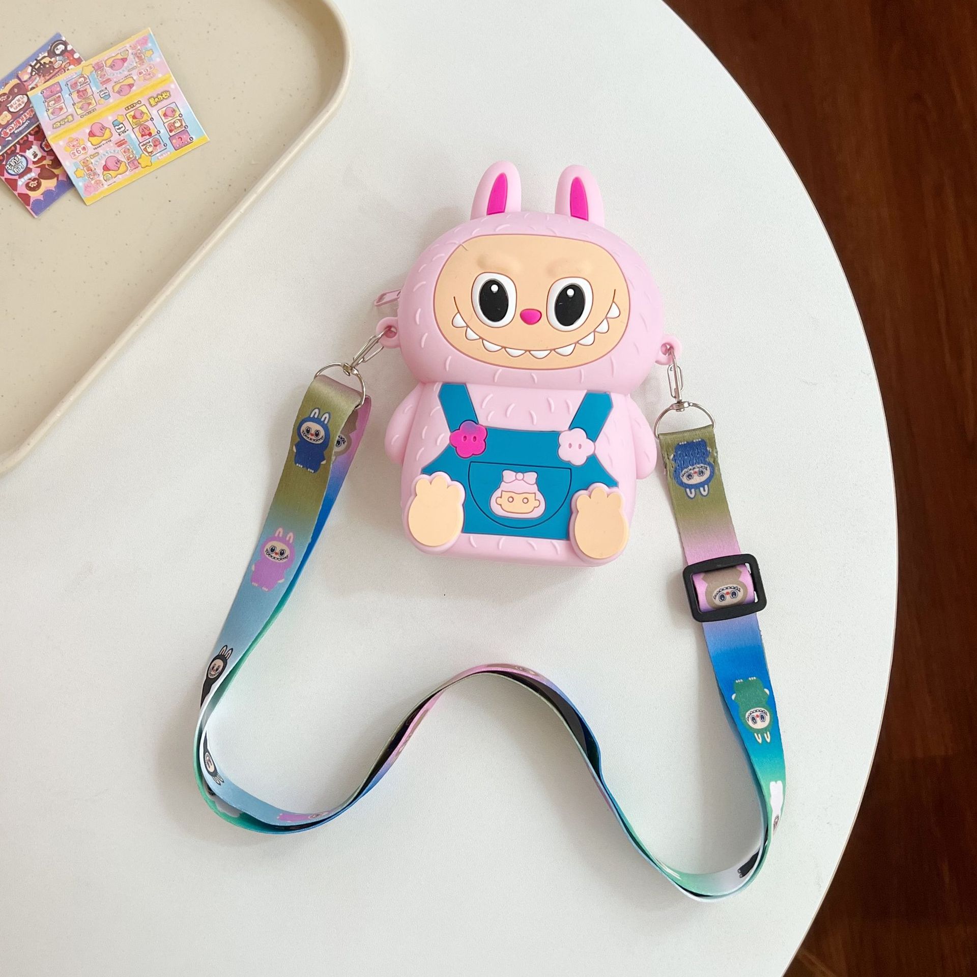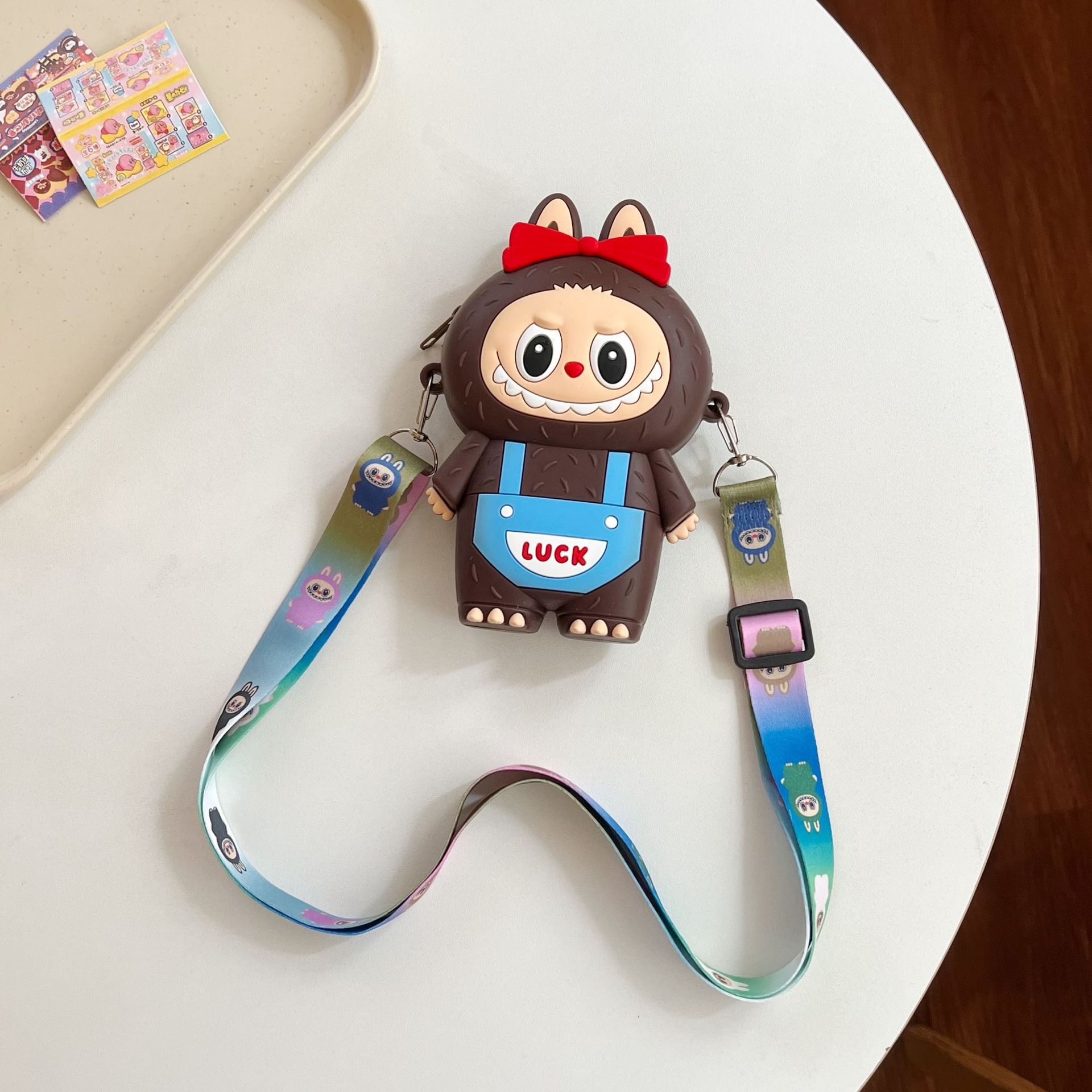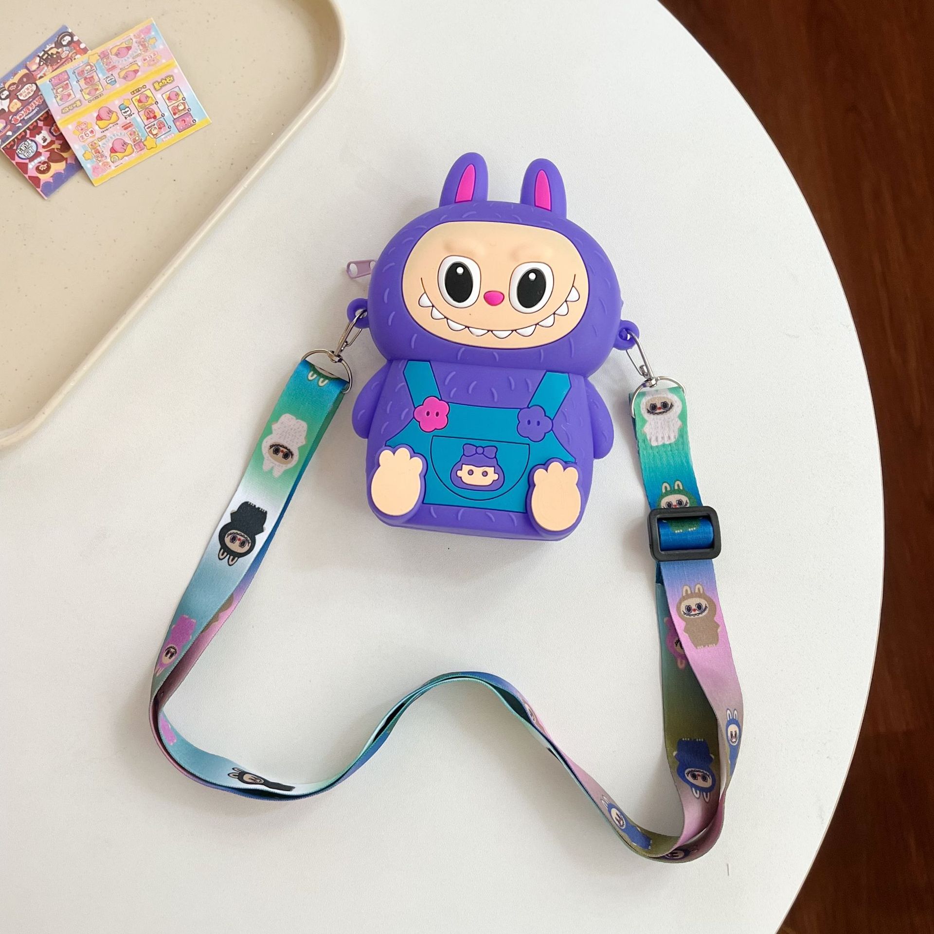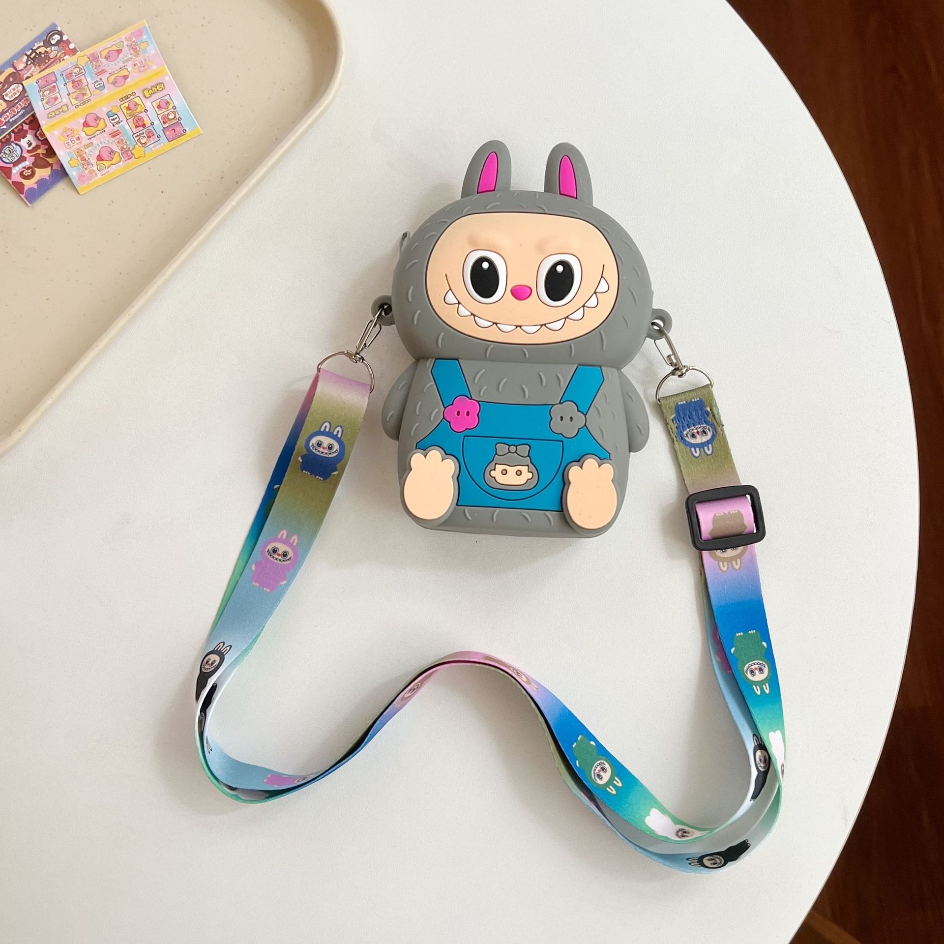 2025년 크로스보더 라부 어린이 동전 지갑 만화 카드 지갑 귀여운 실리콘 가방 다용도 여행 액세서리 크로스백 여성용스토어 가기