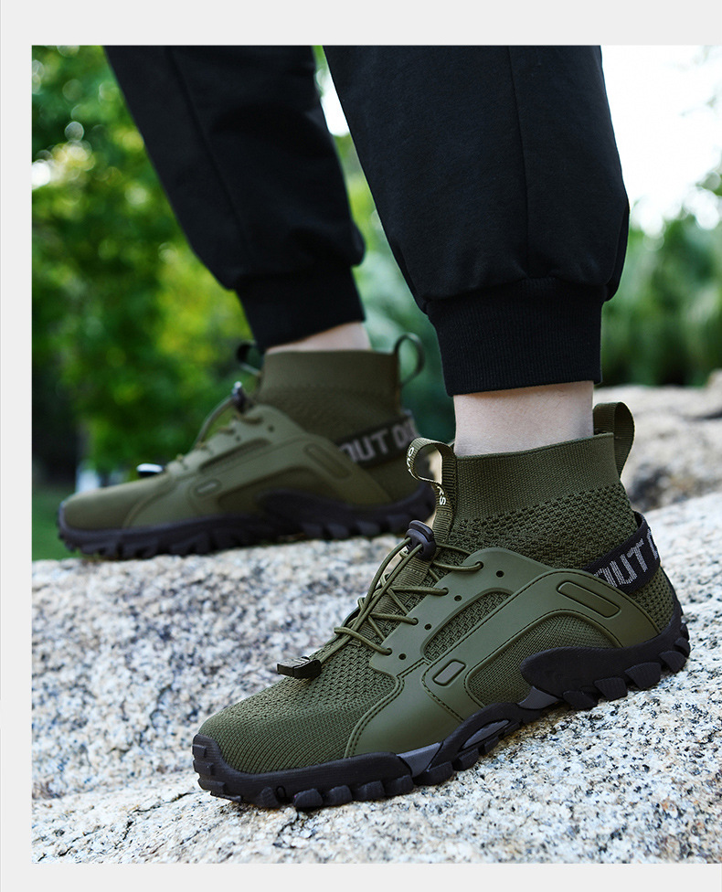 야외 플러스 사이즈 플라잉 직조 신발 하이킹 신발 남성 하이킹 걷기 신발 통기성 캠핑 마운틴 플랫폼 신발 낮은 미드 탑스토어 가기