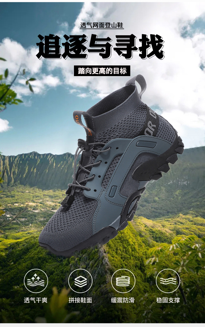 야외 플러스 사이즈 플라잉 직조 신발 하이킹 신발 남성 하이킹 걷기 신발 통기성 캠핑 마운틴 플랫폼 신발 낮은 미드 탑