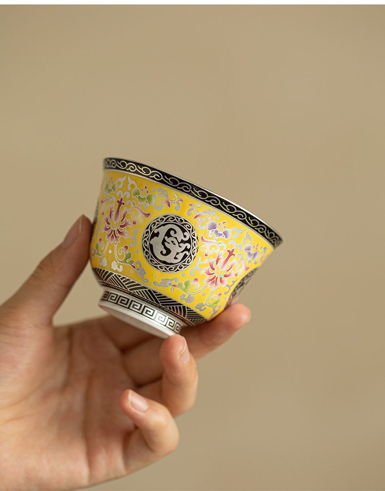 실버 도금 에나멜 티컵 세트 Wenchuang 마스터 컵 절묘한 차 시음 컵 홈 쿵푸 티 세트 동반 선물 상자스토어 가기