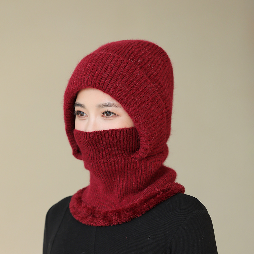 니트 모자 여성의 겨울 기모 두꺼운 감기 방지 모자 스카프 마스크 원피스 따뜻한 모자 야외 승마 모자