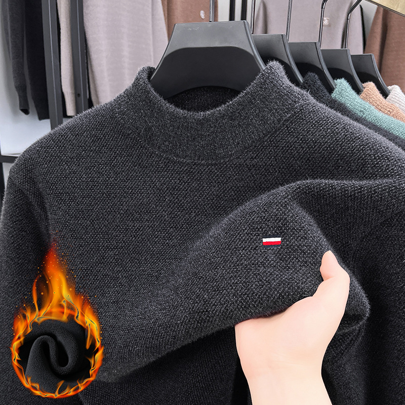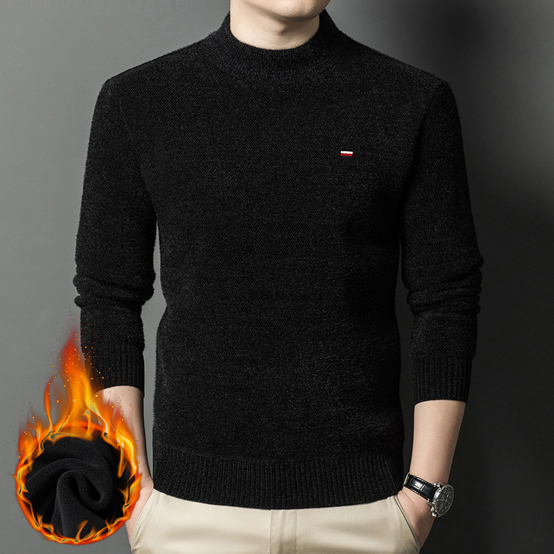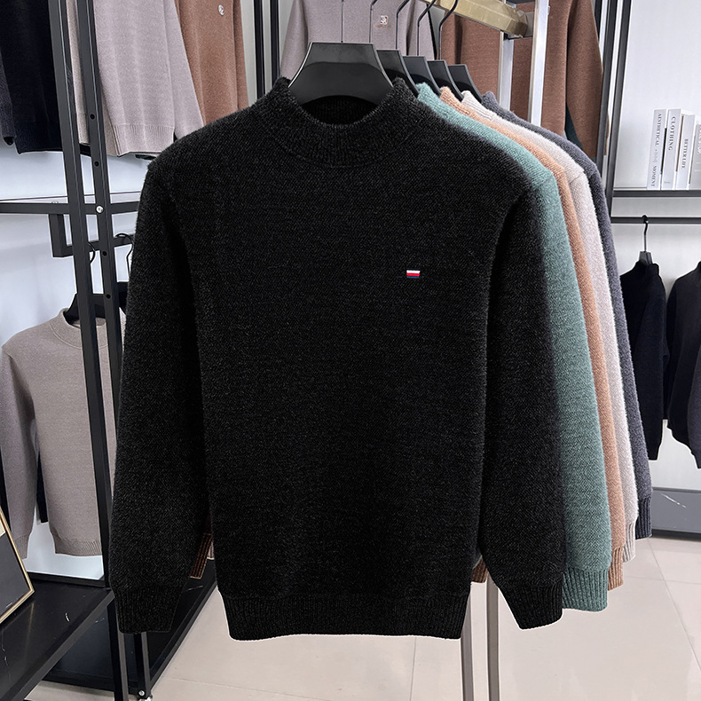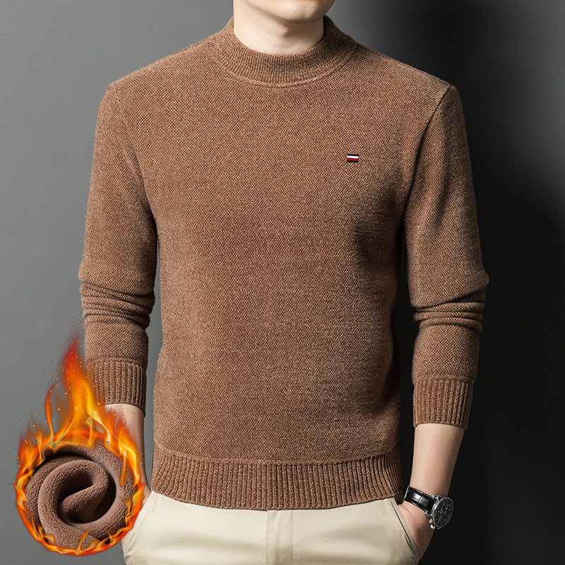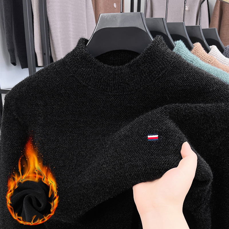 (원피스 벨벳) 하프 터틀넥 스웨터 남자 두꺼운 기모 따뜻한 톱 체닐 스웨터 풀오버베이스 셔츠 트렌디