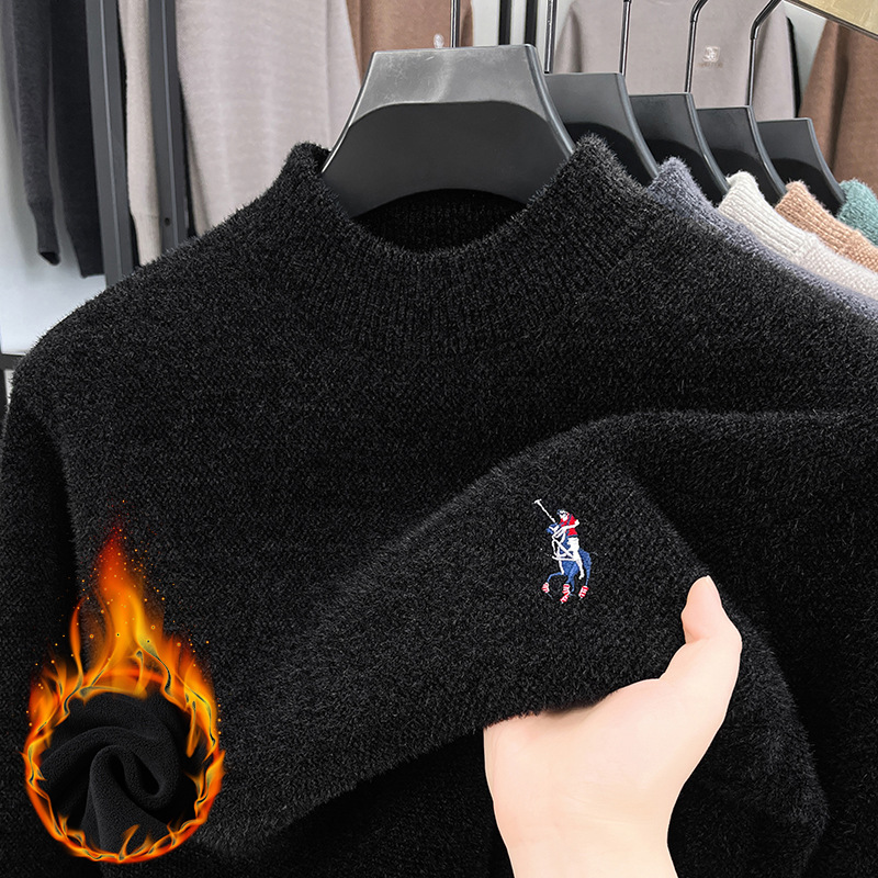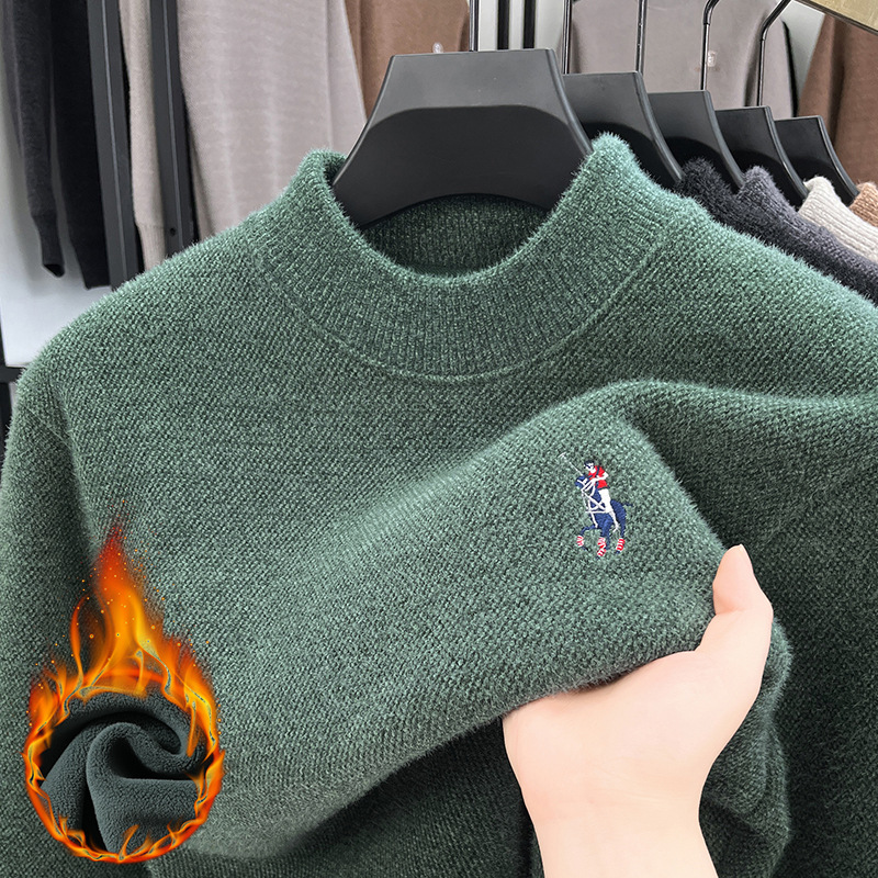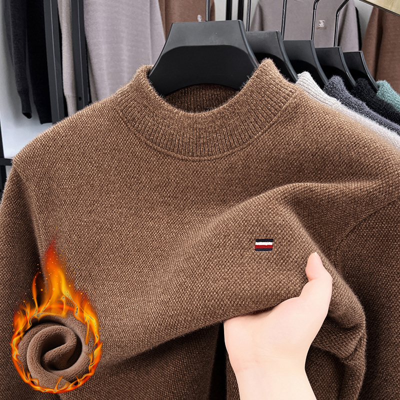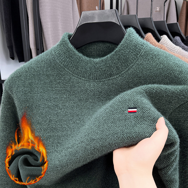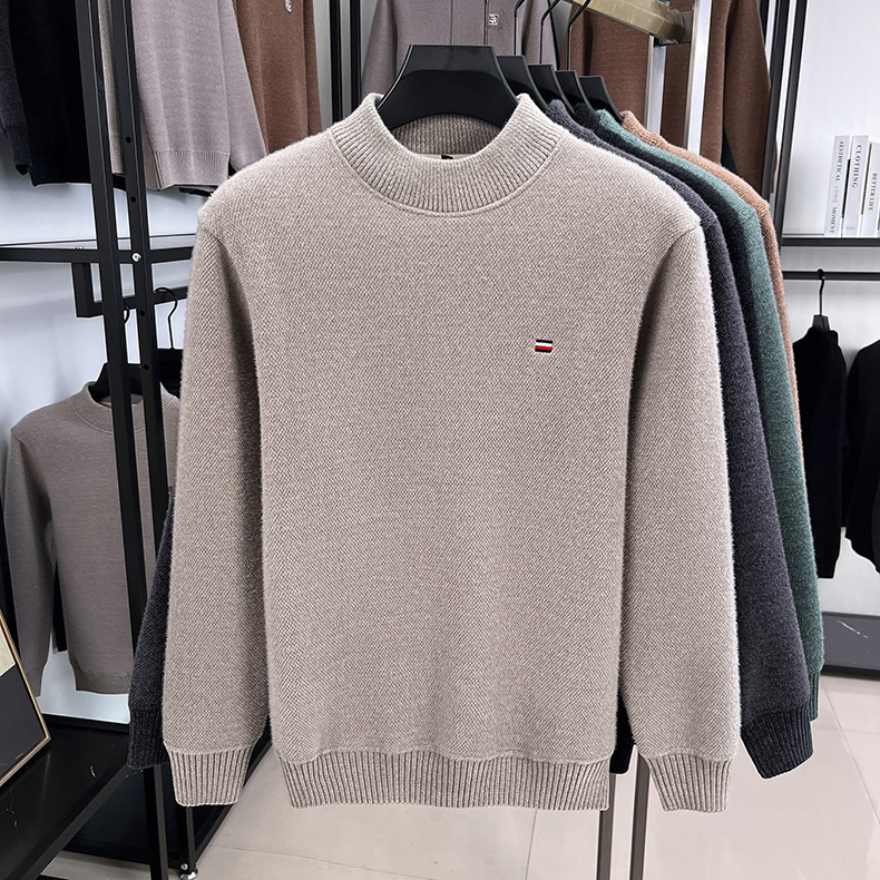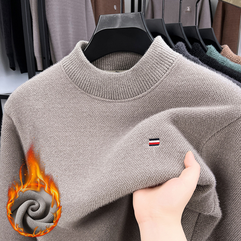 (원피스 벨벳) 하프 터틀넥 스웨터 남자 두꺼운 기모 따뜻한 톱 체닐 스웨터 풀오버베이스 셔츠 트렌디