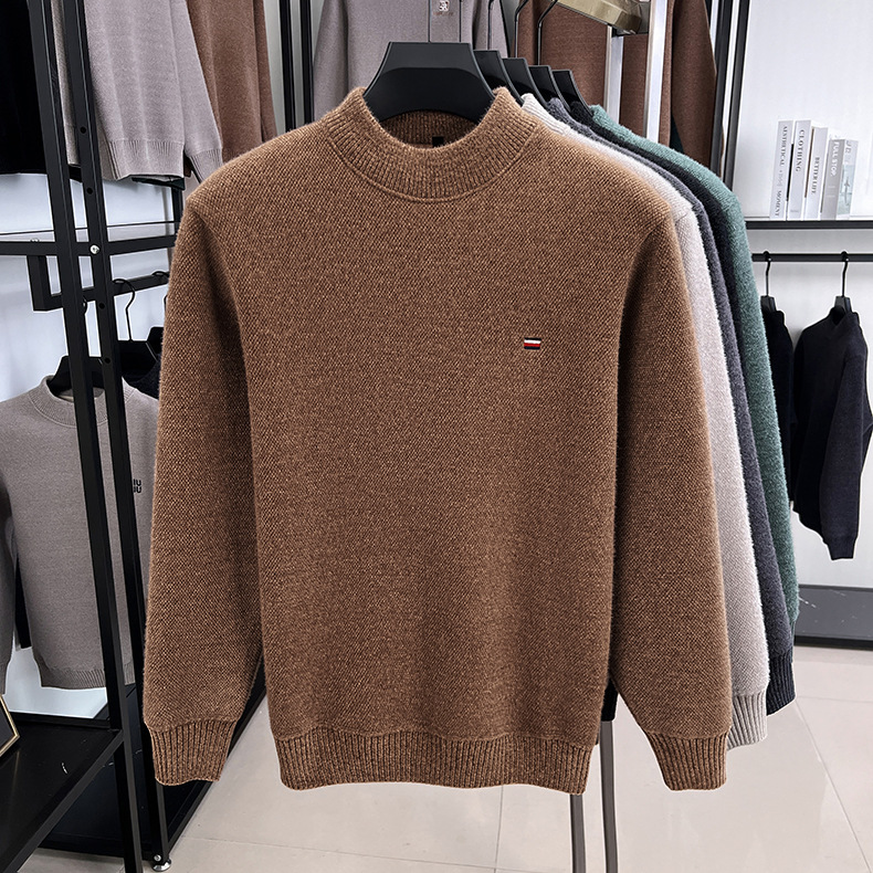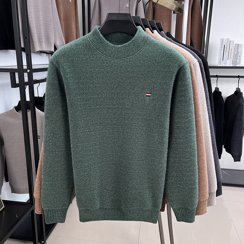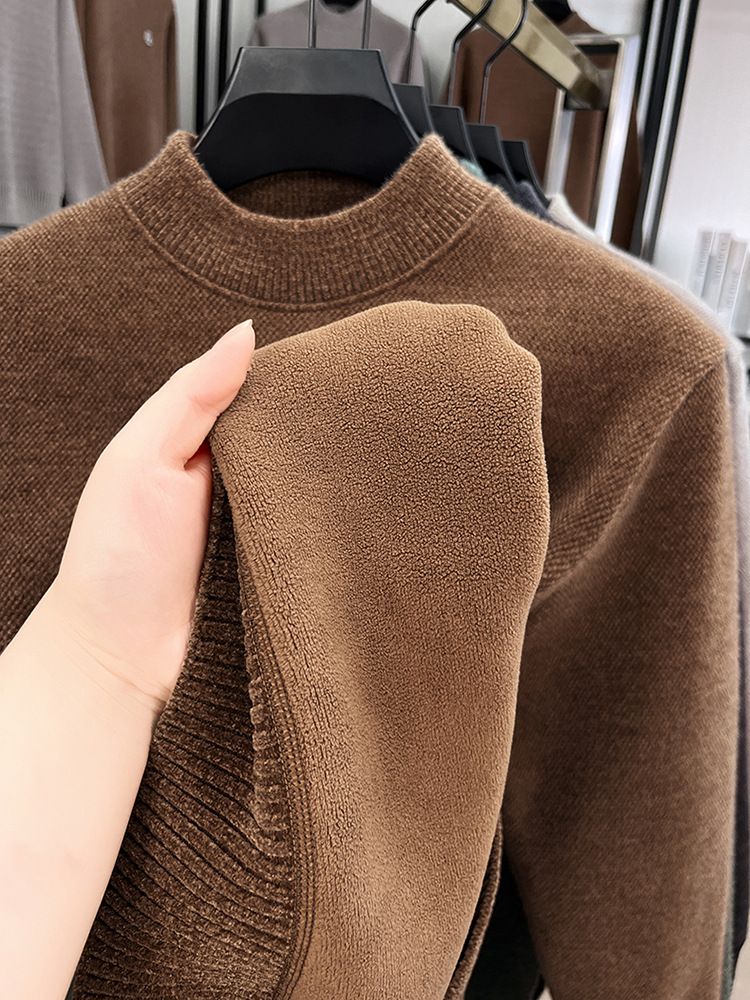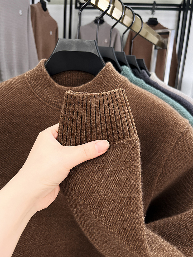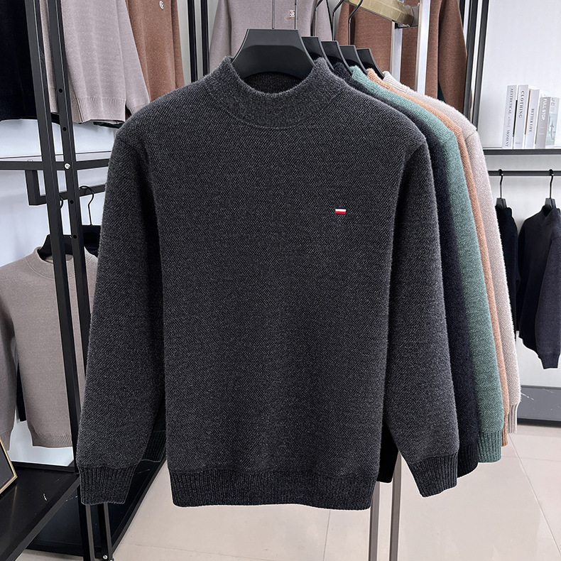 (원피스 벨벳) 하프 터틀넥 스웨터 남자 두꺼운 기모 따뜻한 톱 체닐 스웨터 풀오버베이스 셔츠 트렌디스토어 가기