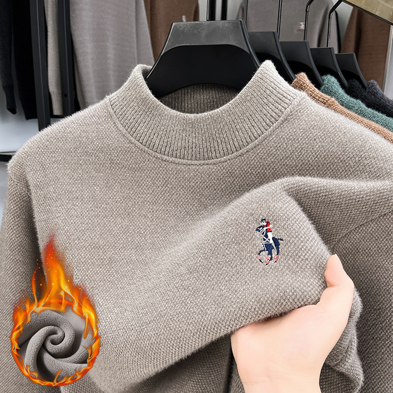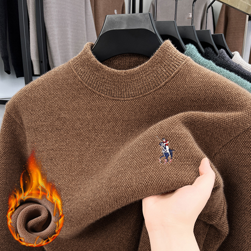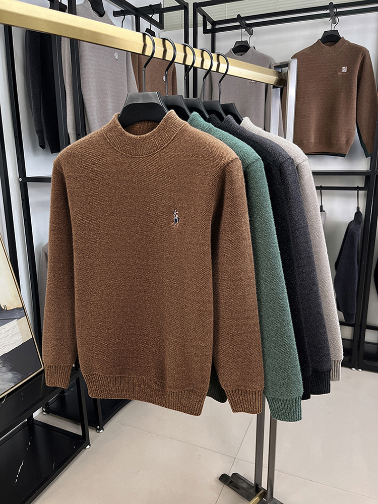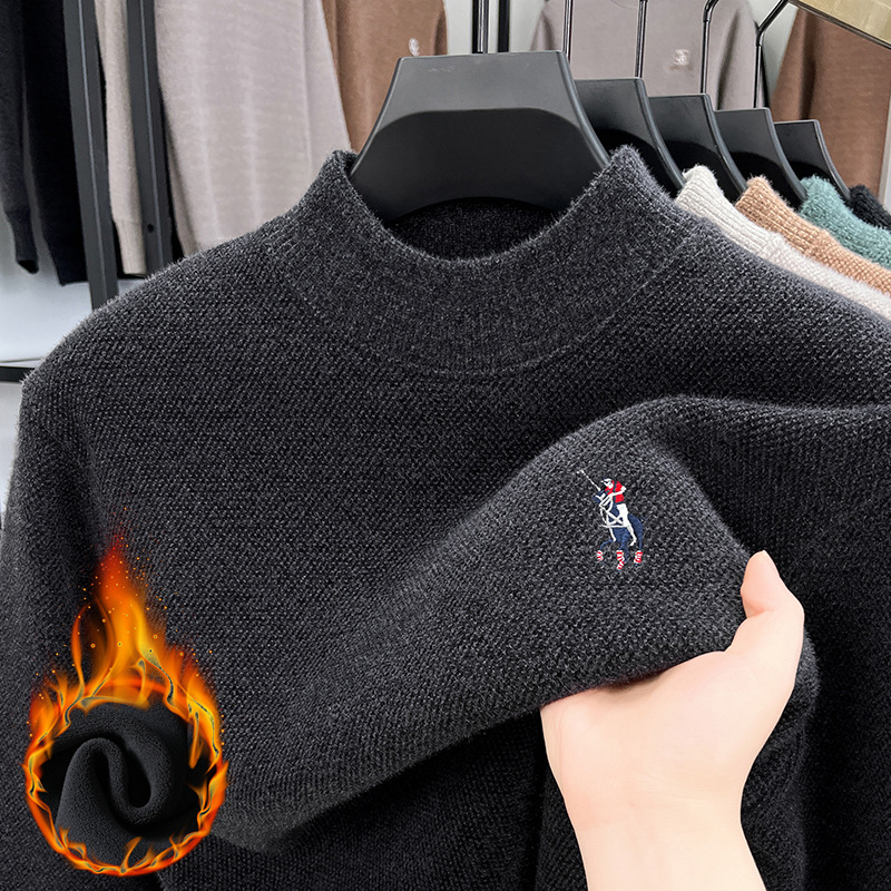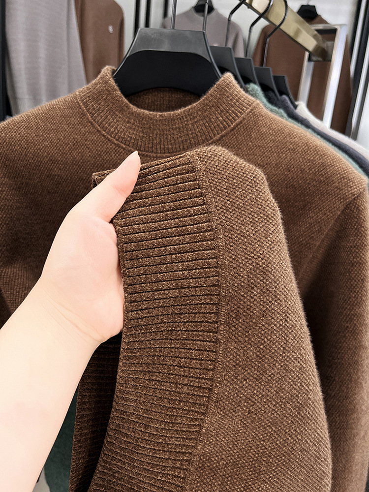 (원피스 벨벳) 하프 터틀넥 스웨터 남자 두꺼운 기모 따뜻한 톱 체닐 스웨터 풀오버베이스 셔츠 트렌디스토어 가기
