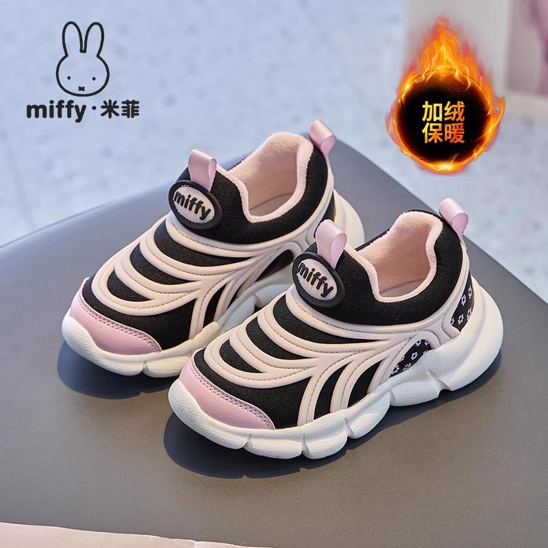 Miffy Miffy Caterpillar 어린이 신발 소녀 신발 2024 겨울 새로운 캐주얼 벨벳 따뜻한 소녀 운동화