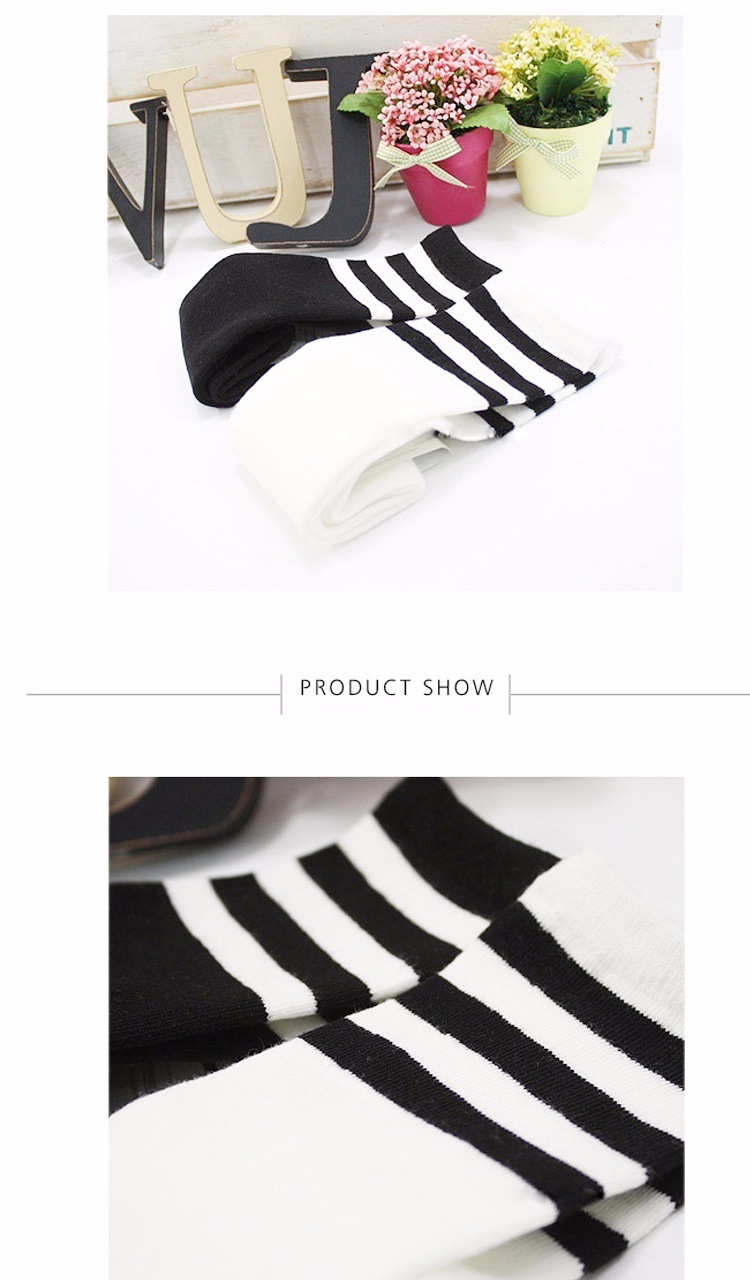 • 검은색 줄무늬가 있는 흰색 종아리 양말