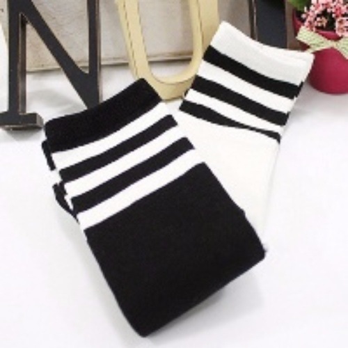 • 흰색 줄무늬가 있는 검정색 종아리 중간 양말