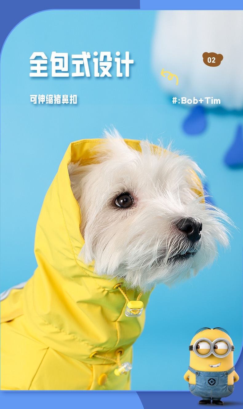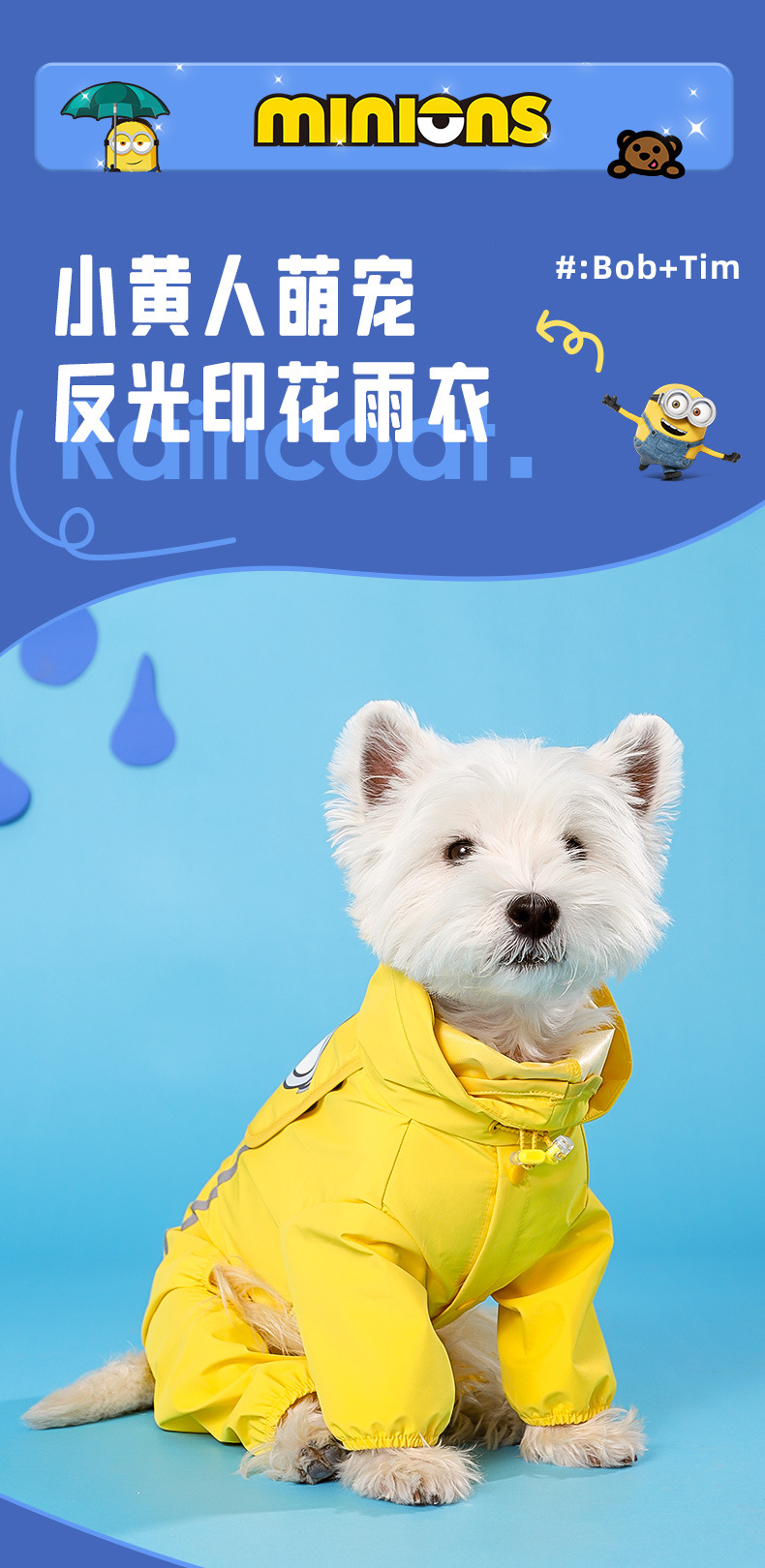 미니언 | 귀여운 애완 동물 반사 프린트 비옷 방수 애완 동물 강아지 옷 고양이 개 옷스토어 가기