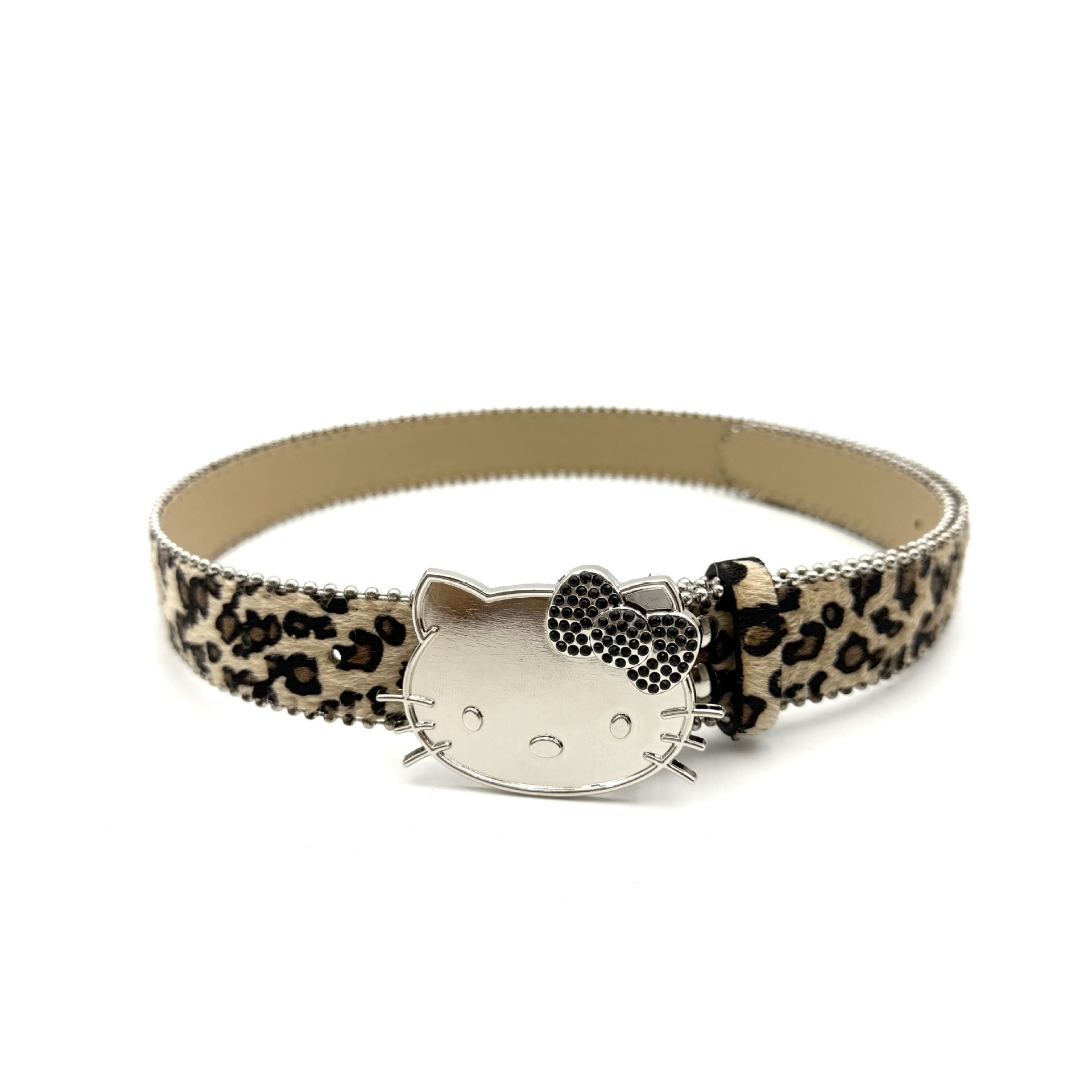 새로운 레오파드 무늬 말 헤어 시리즈 벨트 KT 고양이 헤드 블랙 다이아몬드 버클 벨트 여성용 Y2K 청바지 스커트 액세서리 올 매치스토어 가기
