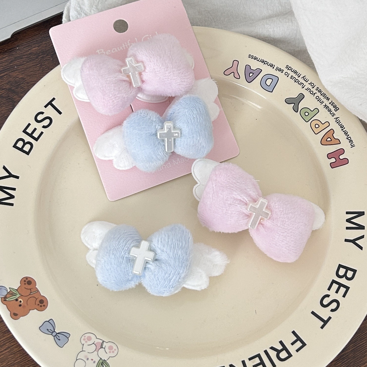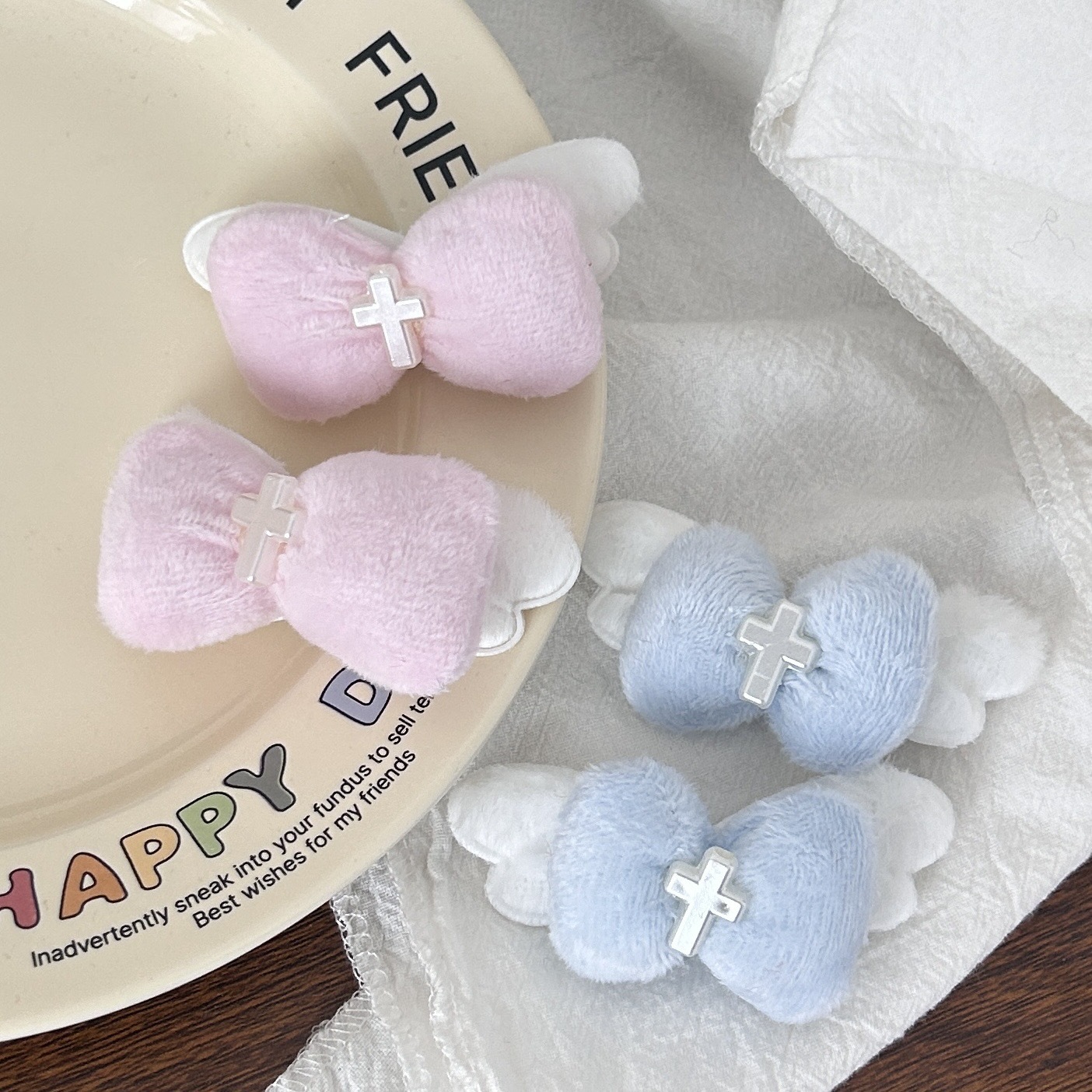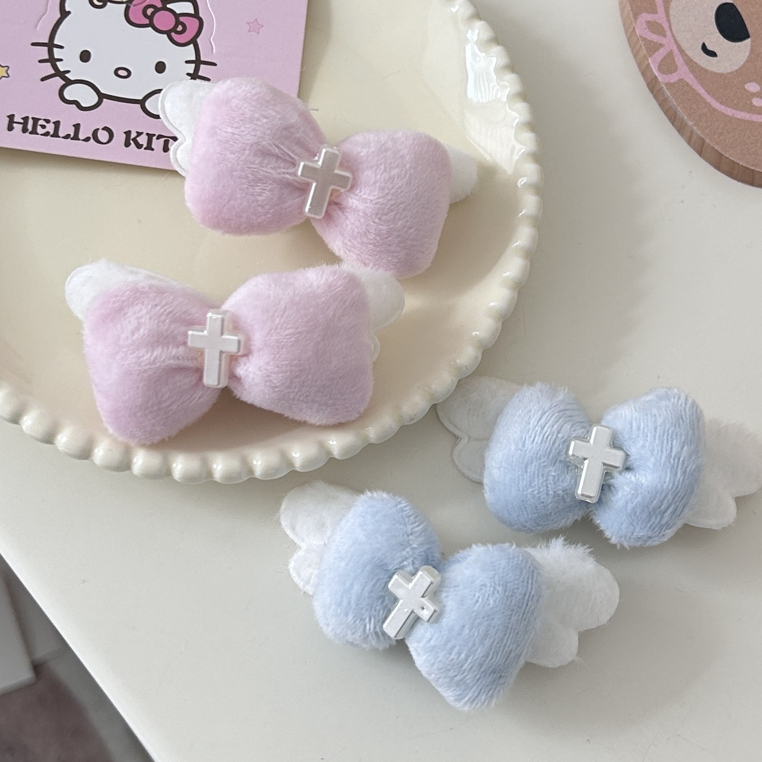 달콤한 소녀 천사 날개 활 크로스 헤어핀 뜨거운 소녀 귀여운 Yk2 헤드폰 한국 핑크 소녀 헤드웨어스토어 가기