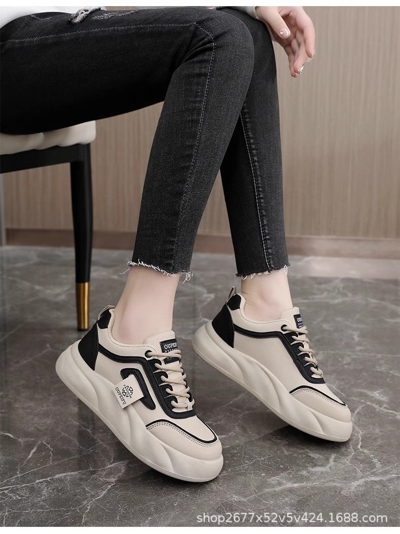봄 2024 새로운 한국식 통기성 화이트 슈즈 로우 탑 캐주얼 보드 슈즈 두꺼운 밑창 올 매치 플랫폼 슈즈스토어 가기